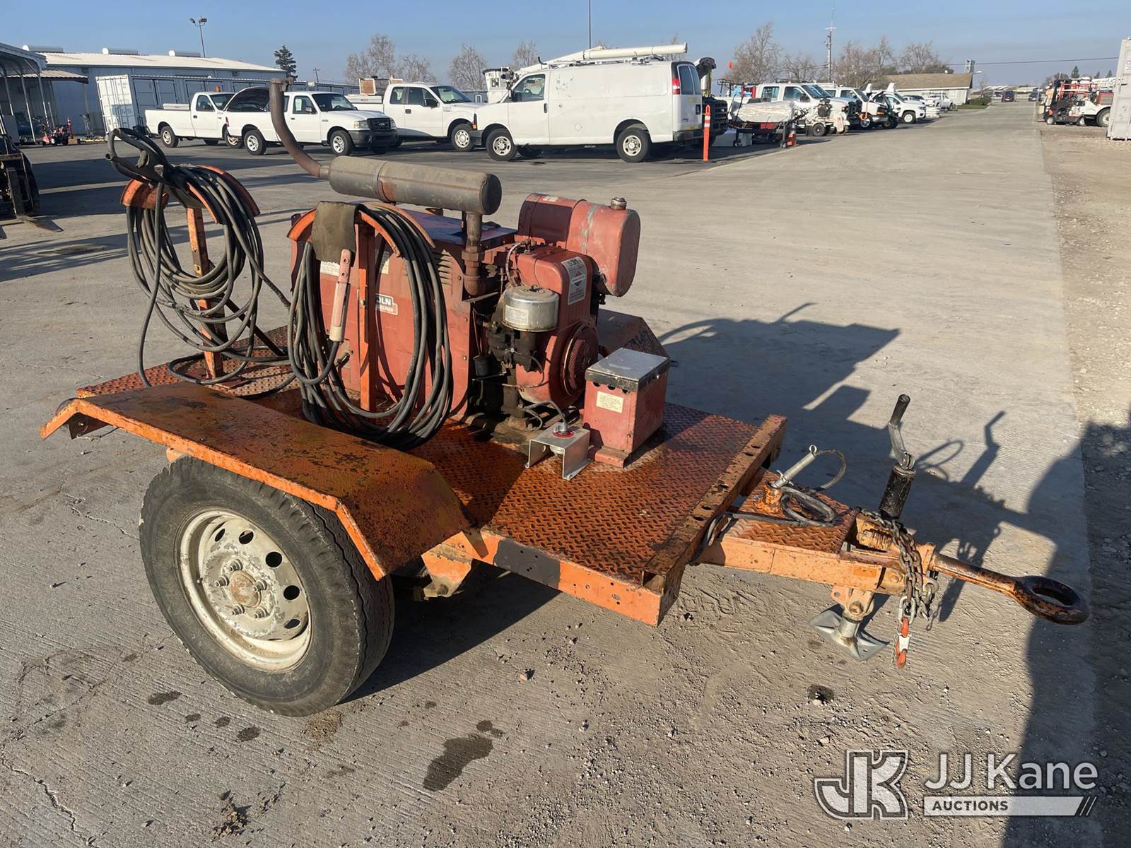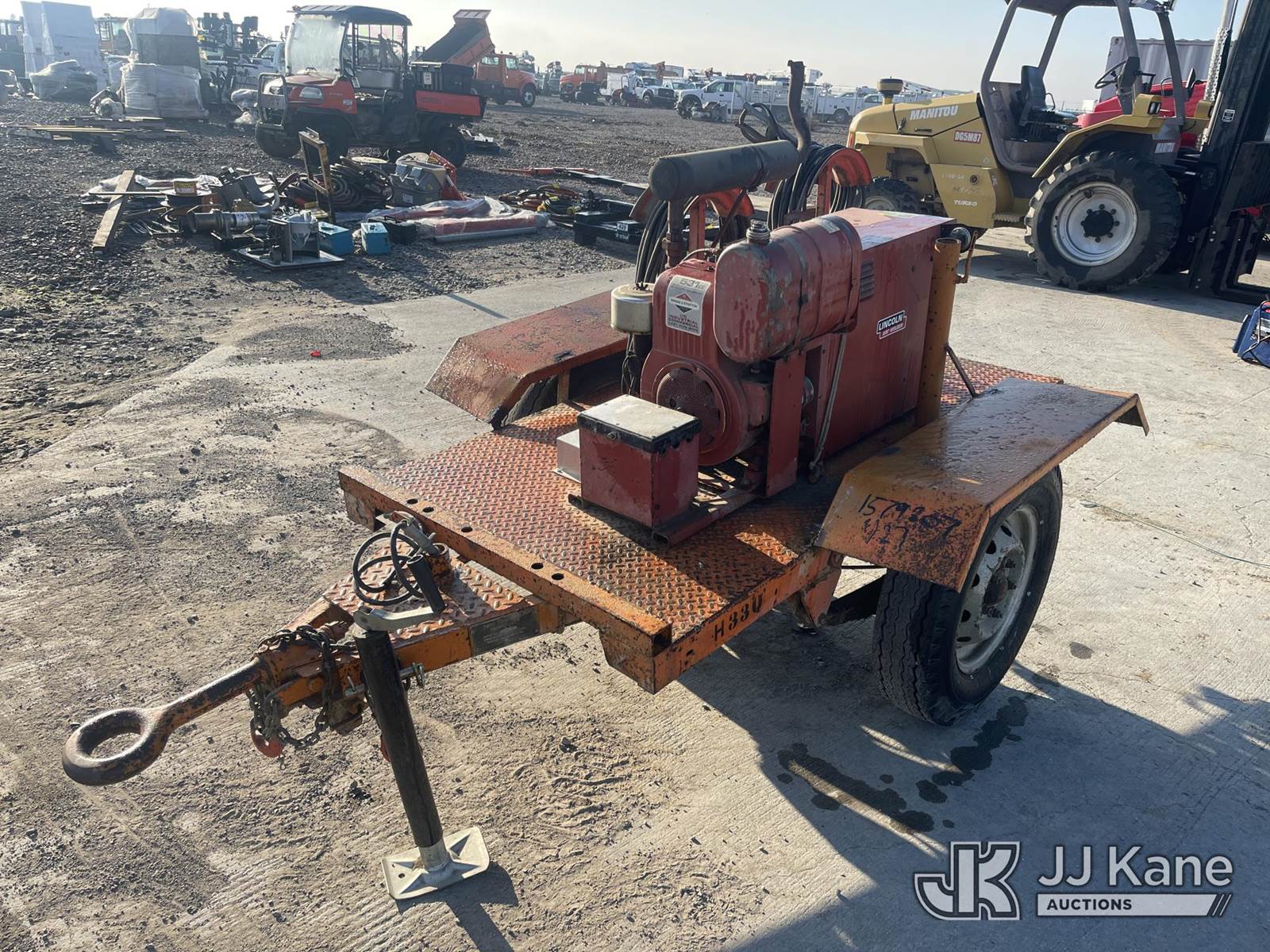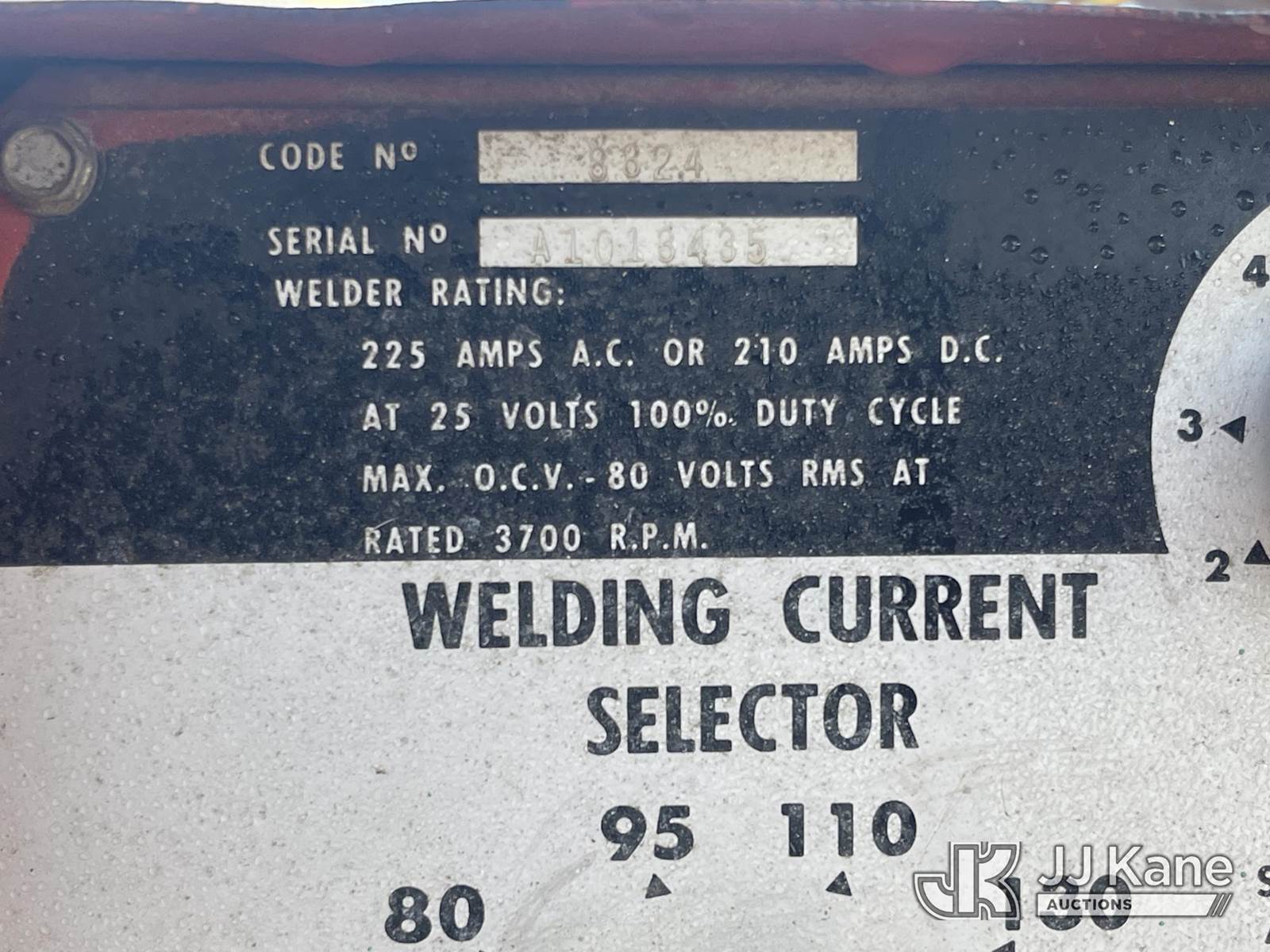 ---- Welder/Generator, Briggs & Straton Gas, with pintle hitch, Lincoln Arc Welder, (Not Running, Condition Unknown) (Cranks But Does Not Start) (Needs New Battery) (Application For Special Equipment) (Reads 2,114 hours) This is a Titled Item NOTE: This unit is being sold AS IS/WHERE IS via Timed Auction and is located in Dixon, CA. Inspection & preview days for this unit are the 2 business days prior to the first day of items closing for this auction, item is located at 8668 Sparling Ln Dixon, CA 95620 and hours of operations are 8a-4p. For pre-sale questions, please contact JJ Kane Staff at (707) 678-8060 (dixon@jjkane.com). Dealer License Number 45696. (Buyer is responsible for removal. Assistance by consignor or JJ Kane Auctions is not assured.)