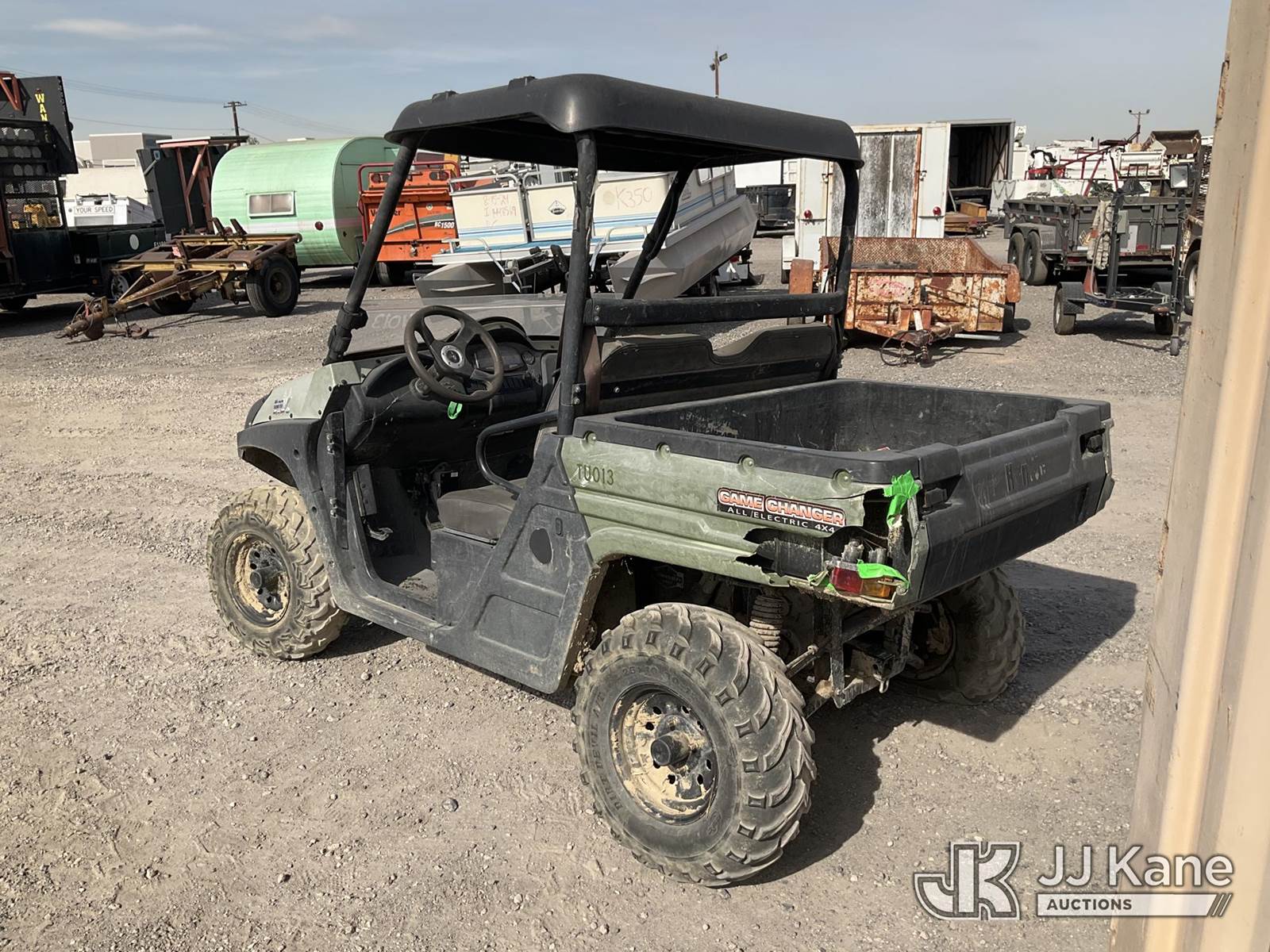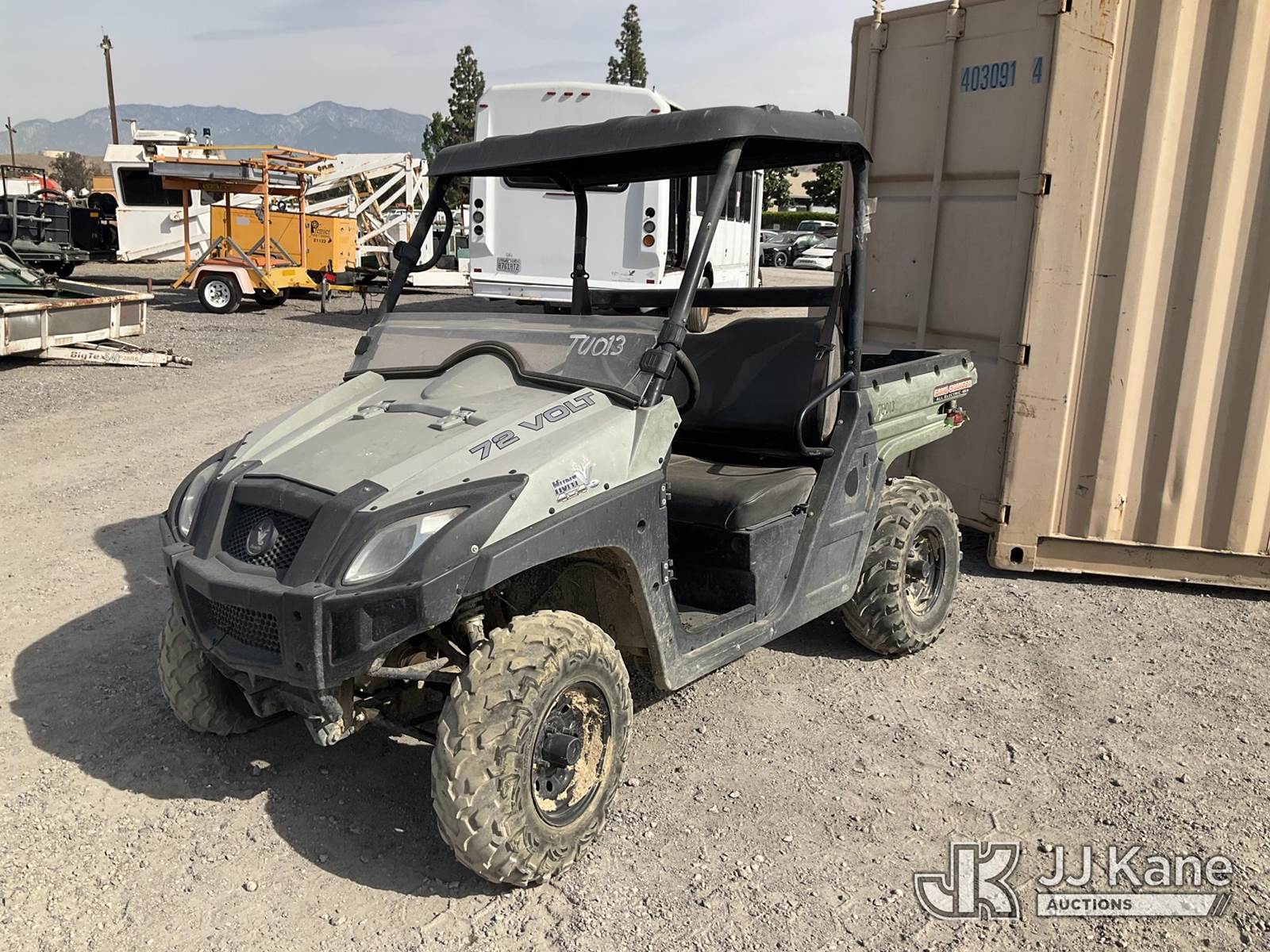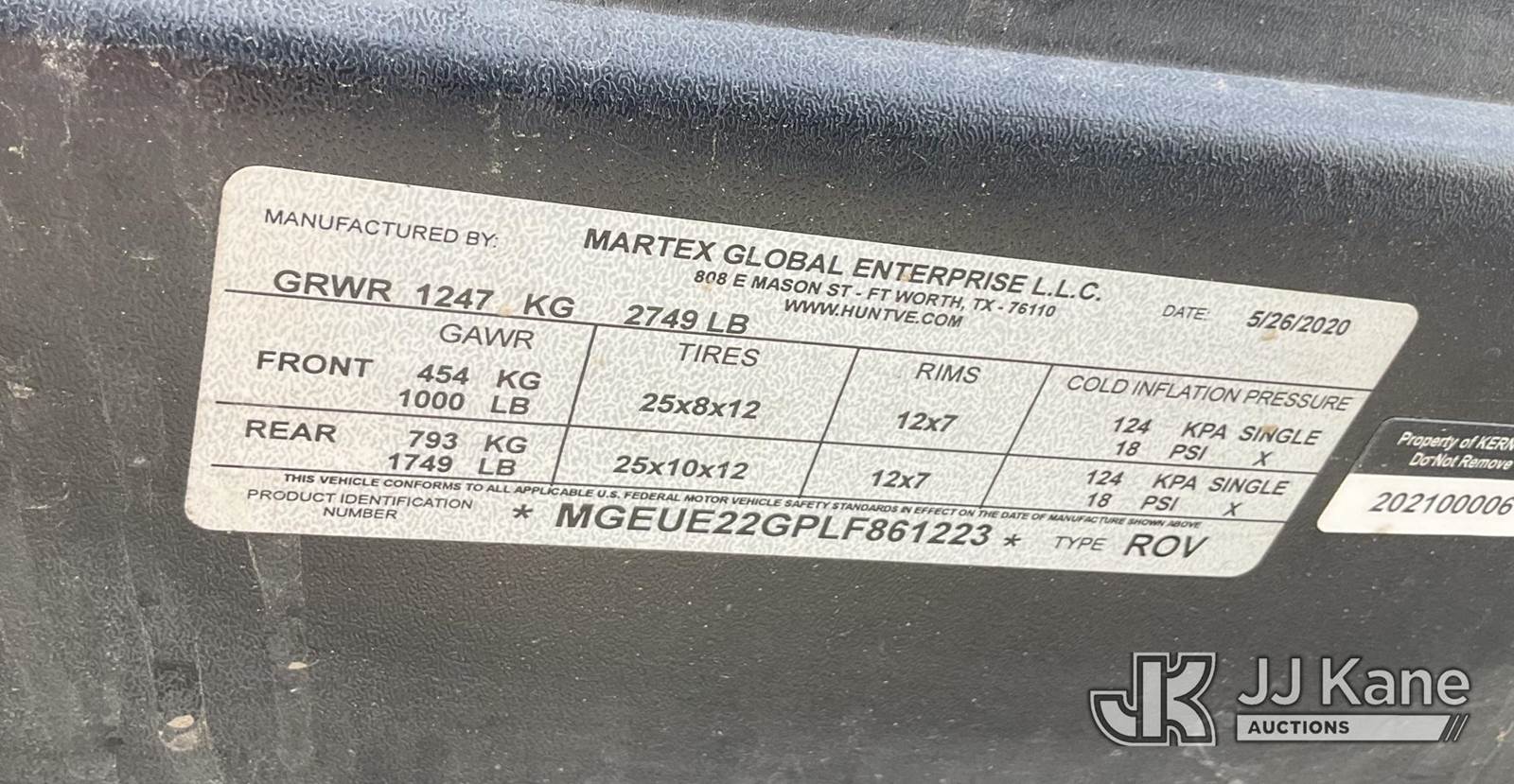 -- 4 Wheel All-Terrain Vehicle, s/n MGEUE22GPLF861223, Battery electric, Hunt V 4X4 72V All Electric ATV (Not Running, Operation Unknown, Has Damage To Left Taillight, Bad Tires) NOTE: This unit is being sold AS IS/WHERE IS via Timed Auction and is located in Jurupa Valley, CA. Inspection & preview days for this unit are the 2 business days prior to the first day of items closing for this auction, item is located at 4510 Muth Way Jurupa Valley, CA 92509 and hours of operations are 8a-4p. For pre-sale questions, please contact please contact Office Staff @ (310) 353-7140. Dealer License Number 45696. (Buyer is responsible for removal. Assistance by consignor or JJ Kane Auctions is not assured.)