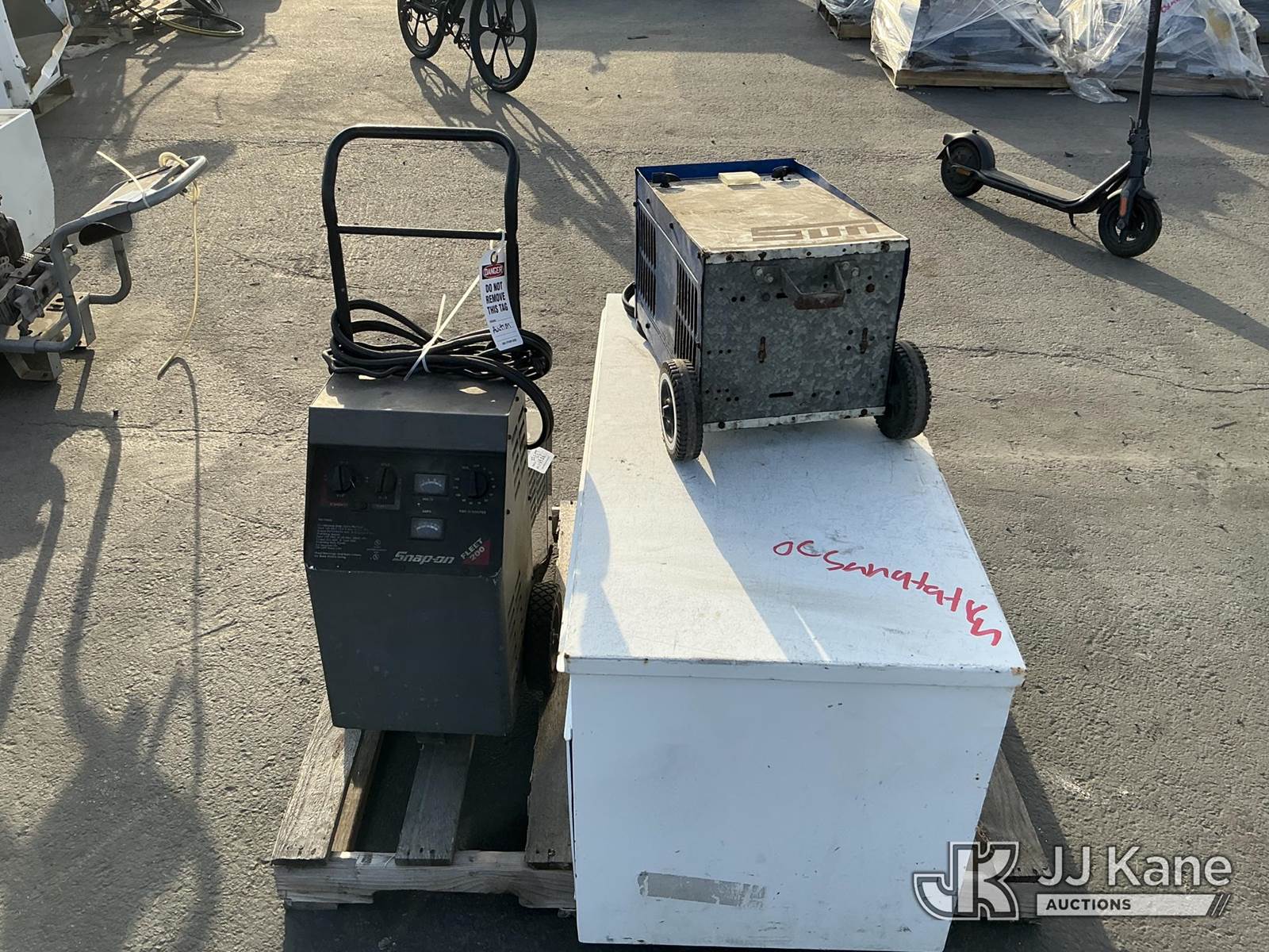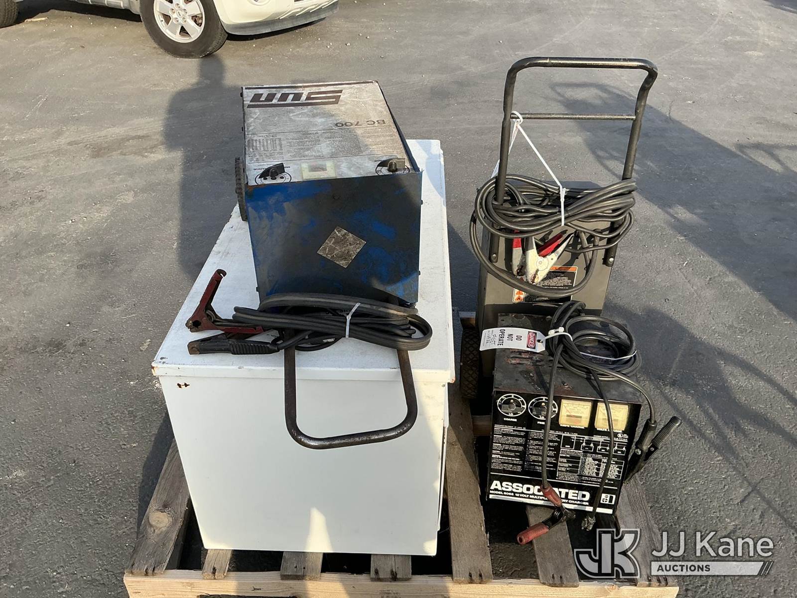 (1 Pallet) Battery Chargers & Storage Box (Used ) NOTE: This unit is being sold AS IS/WHERE IS via Timed Auction and is located in Jurupa Valley, CA. Inspection & preview days for this unit are the 2 business days prior to the first day of items closing for this auction, item is located at 4510 Muth Way Jurupa Valley, CA 92509 and hours of operations are 8a-4p. For pre-sale questions, please contact please contact Office Staff @ (310) 353-7140. Dealer License Number 45696. (Buyer is responsible for removal. Assistance by consignor or JJ Kane Auctions is not assured.)
