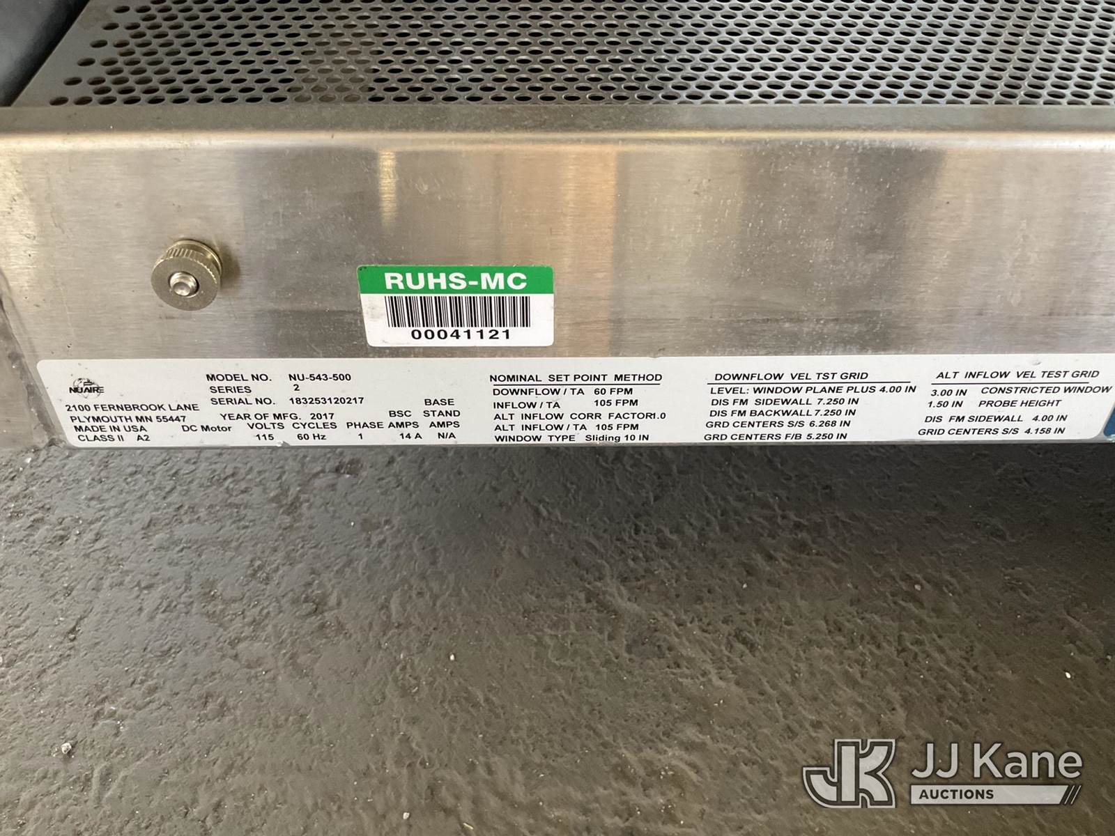 (1 Pallet) Nuaire Class 2, Type A2 Biological Safety Cabinet (Used) NOTE: This unit is being sold AS IS/WHERE IS via Timed Auction and is located in Jurupa Valley, CA. Inspection & preview days for this unit are the 2 business days prior to the first day of items closing for this auction, item is located at 4510 Muth Way Jurupa Valley, CA 92509 and hours of operations are 8a-4p. For pre-sale questions, please contact please contact Office Staff @ (310) 353-7140. Dealer License Number 45696. (Buyer is responsible for removal. Assistance by consignor or JJ Kane Auctions is not assured.)