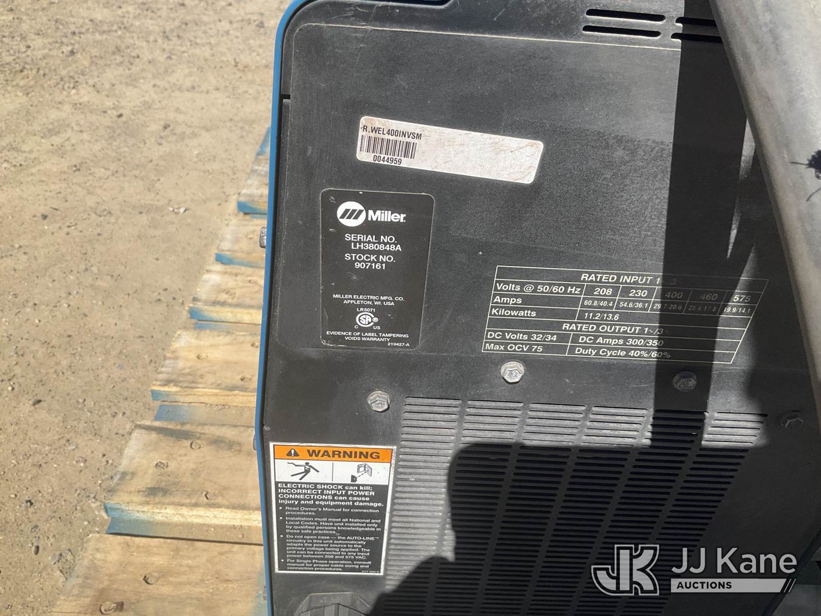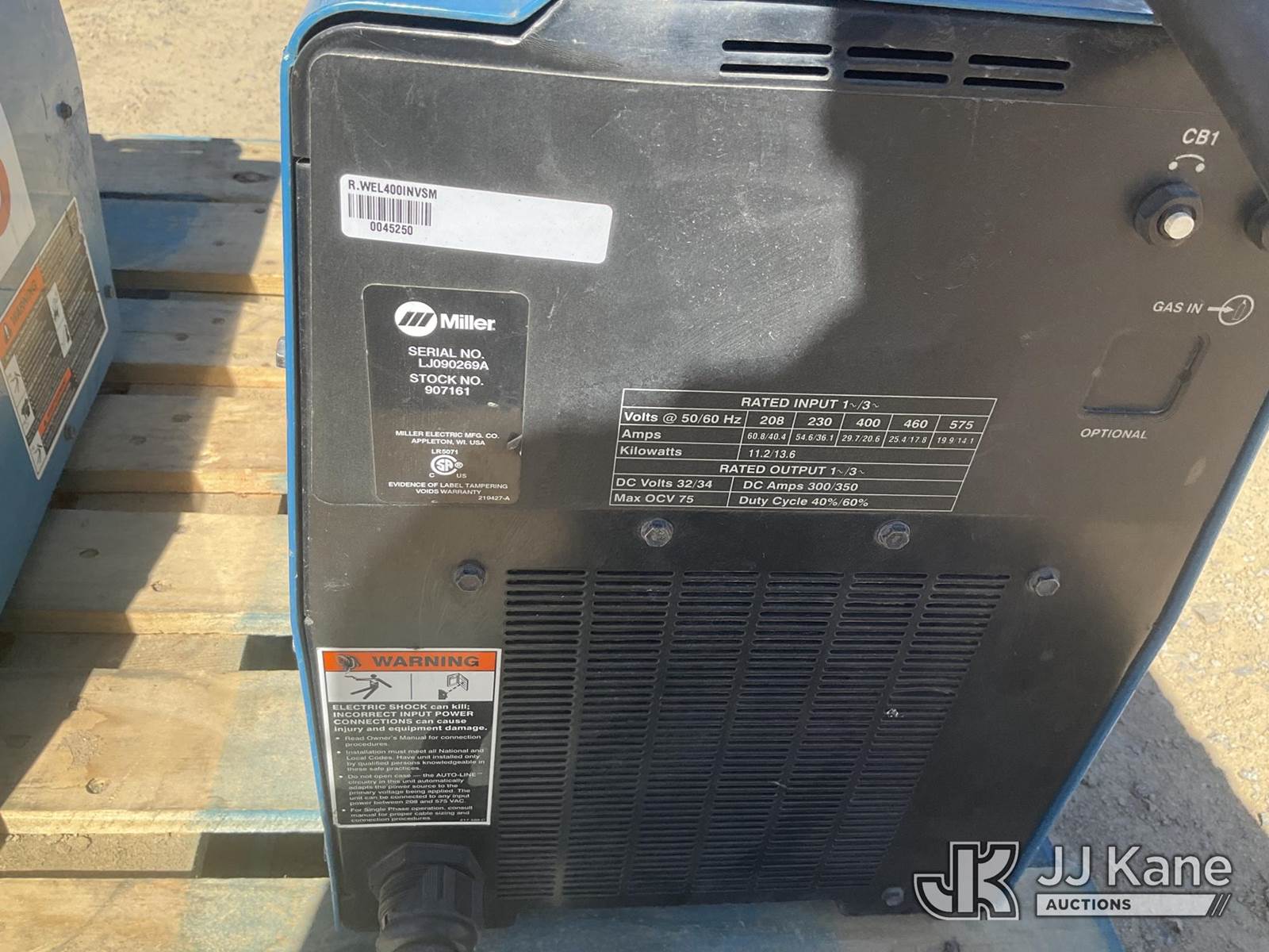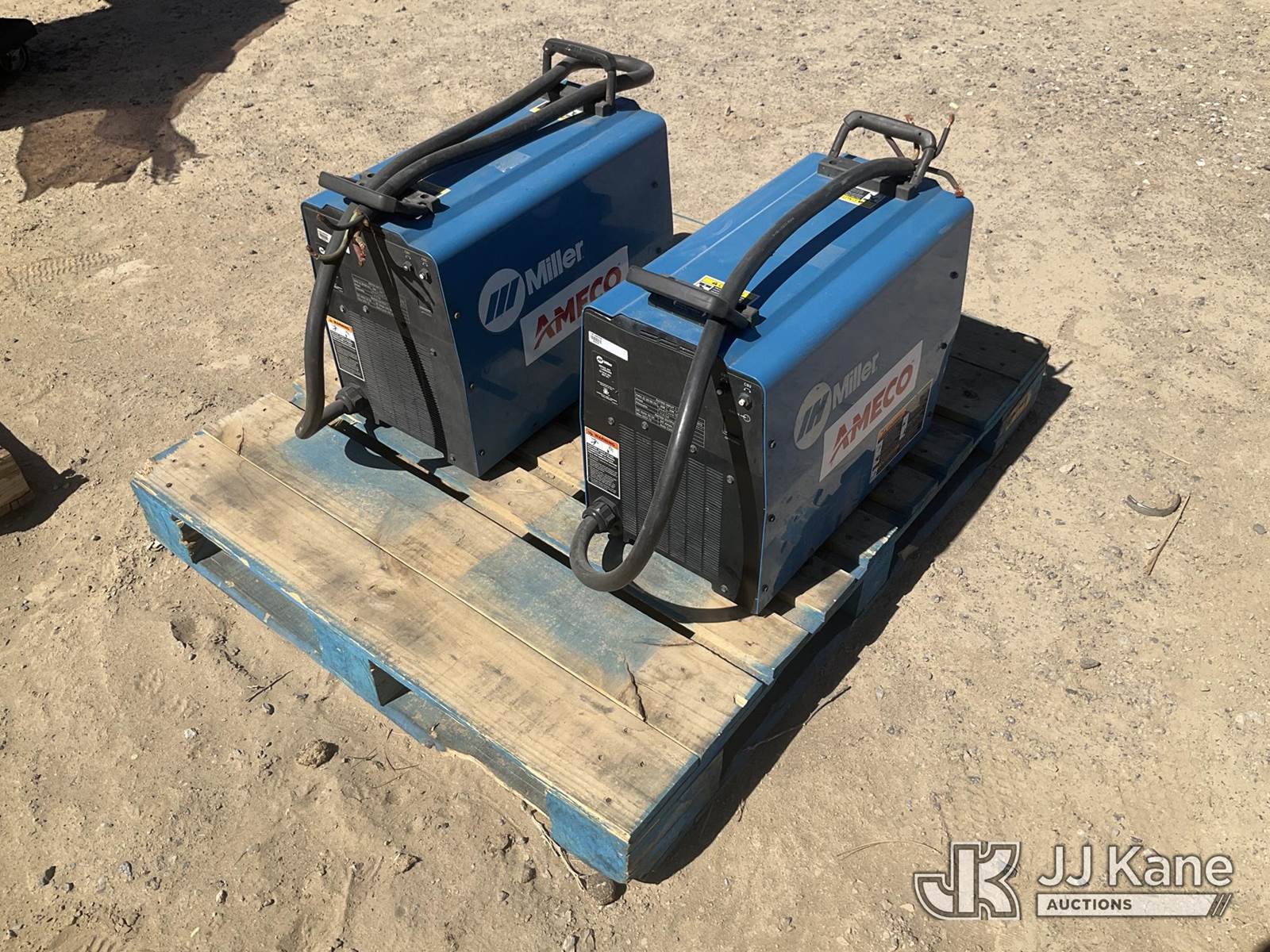 1 Pallet of 2 Miller Welders (Condition Unknown) (Seller States: Operational) NOTE: This unit is being sold AS IS/WHERE IS via Timed Auction and is located in Sparks, NV. Inspection & preview days for this unit are the 2 business days prior to the first day of items closing for this auction, item is located at 601 Britain Dr Sparks, NV 89437 and hours of operations are 8a-4p. Titles executed exactly as bidder registered. Ensure your name and/or business name and address in JJ Kane and/or ProxiBid is correct before bidding. For pre-sale questions, please contact Office Staff @ (801) 519-0123 and provide sale date and lot number. Sparks Dealer License Number DLR000052908 / OHV000052909. (Buyer is responsible for removal. Assistance by consignor or JJ Kane Auctions is not assured.)