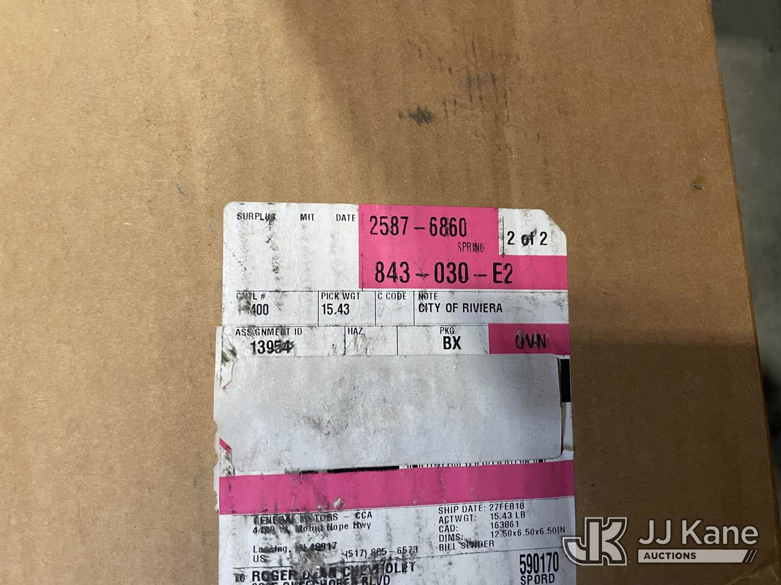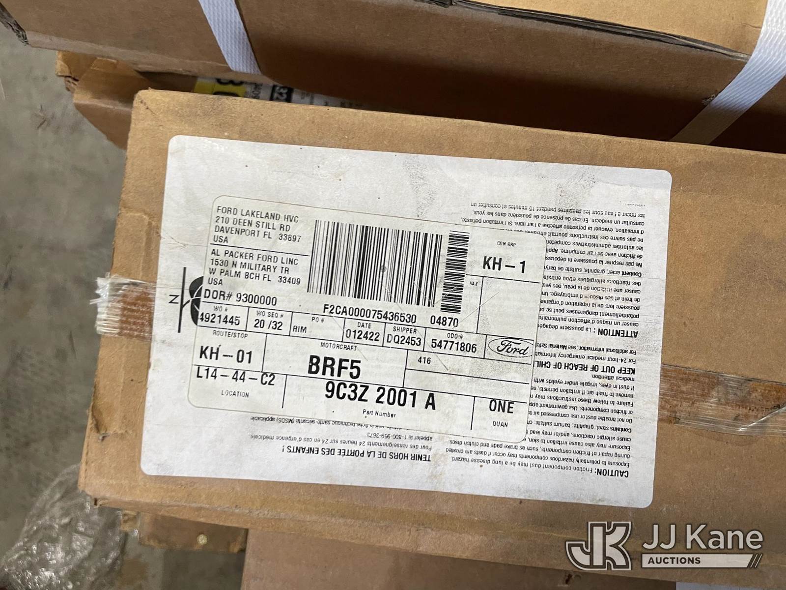 (1) Pallet of Misc. Auto Parts: Calipers, Springs, Break Boaster, Unused NOTE: This unit is being sold AS IS/WHERE IS via Timed Auction and is located in Riviera Beach, FL. For pre-sale questions or to schedule an inspection, please call Gregg Martini @ 561-519-5775. Removals require 24-hr Notice by Appointment Only, Buyer/Hauler must present copy of Paid-in-Full JJ Kane Release Form upon arrival. Purchaser acknowledges ALL lots must be removed within 10 business days of Auction, or a towing & storage fee may be incurred. (Buyer is responsible for removal. Assistance by consignor or JJ Kane Auctions is not assured.)