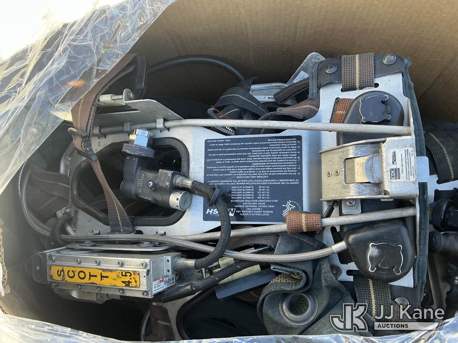 (1 Pallet) Scott Saftey Air-Tank Harnesses (Used) NOTE: This unit is being sold AS IS/WHERE IS via Timed Auction and is located in Jurupa Valley, CA. Inspection & preview days for this unit are the 2 business days prior to the first day of items closing for this auction, item is located at 4510 Muth Way Jurupa Valley, CA 92509 and hours of operations are 8a-4p. For pre-sale questions, please contact please contact Office Staff @ (310) 353-7140. Dealer License Number 45696. (Buyer is responsible for removal. Assistance by consignor or JJ Kane Auctions is not assured.)