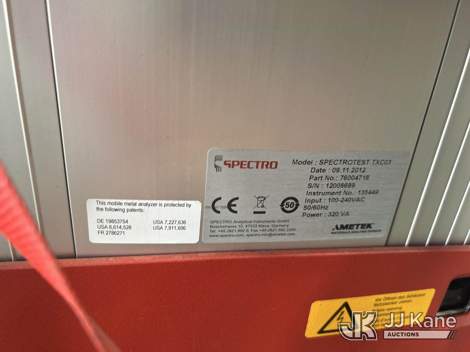 (1) Spectro Mobile Metal Analyzer (Used, Condition Unknown) NOTE: This unit is being sold AS IS/WHERE IS via Timed Auction and is located in Riviera Beach, FL. An inspection day for FPL auction items will be conducted on the Friday before the auction from 8a-3p at 2455 Port West Boulevard, Riviera Beach, FL 33407. Winning Buyer/Hauler must present copy of paid invoice upon arrival to pick up. For load out and pick up information, please reference the release form sent out after purchase. Any more information please call Andy Garcia @ 561-215-0085. (Buyer is responsible for removal. Assistance by consignor or JJ Kane Auctions is not assured.)