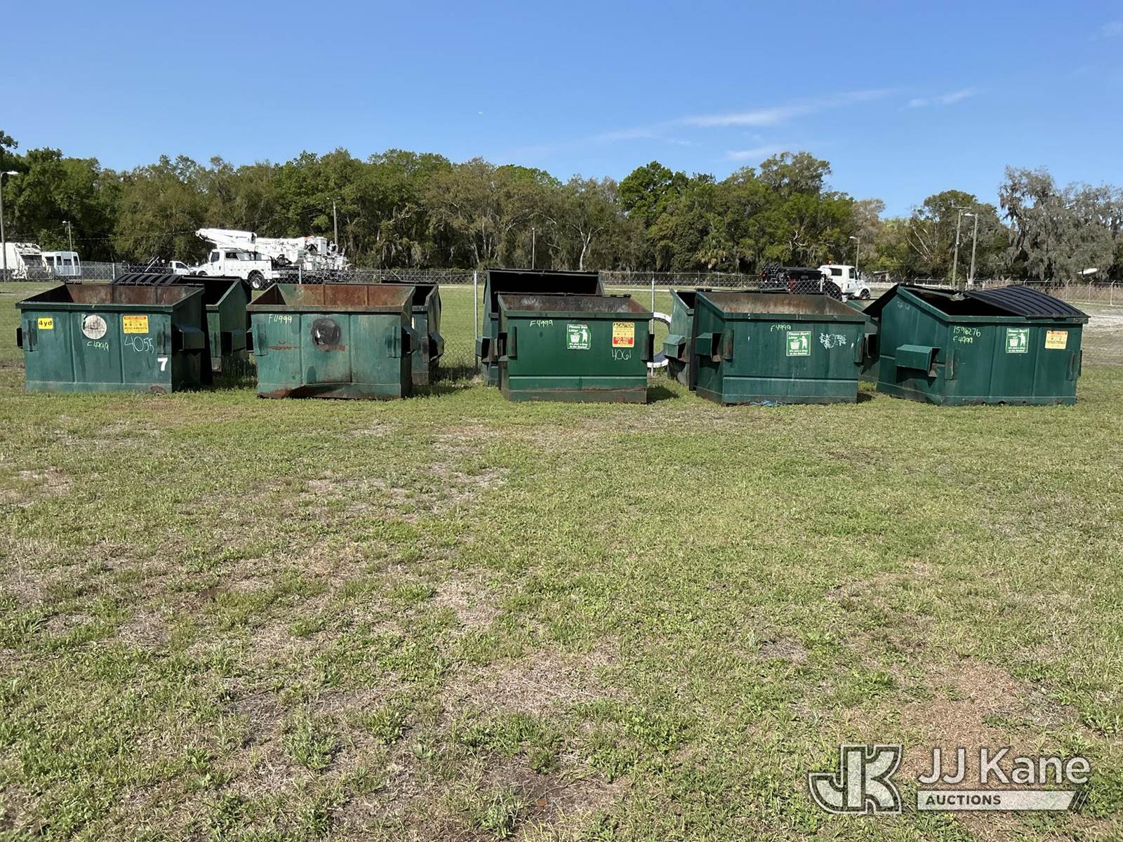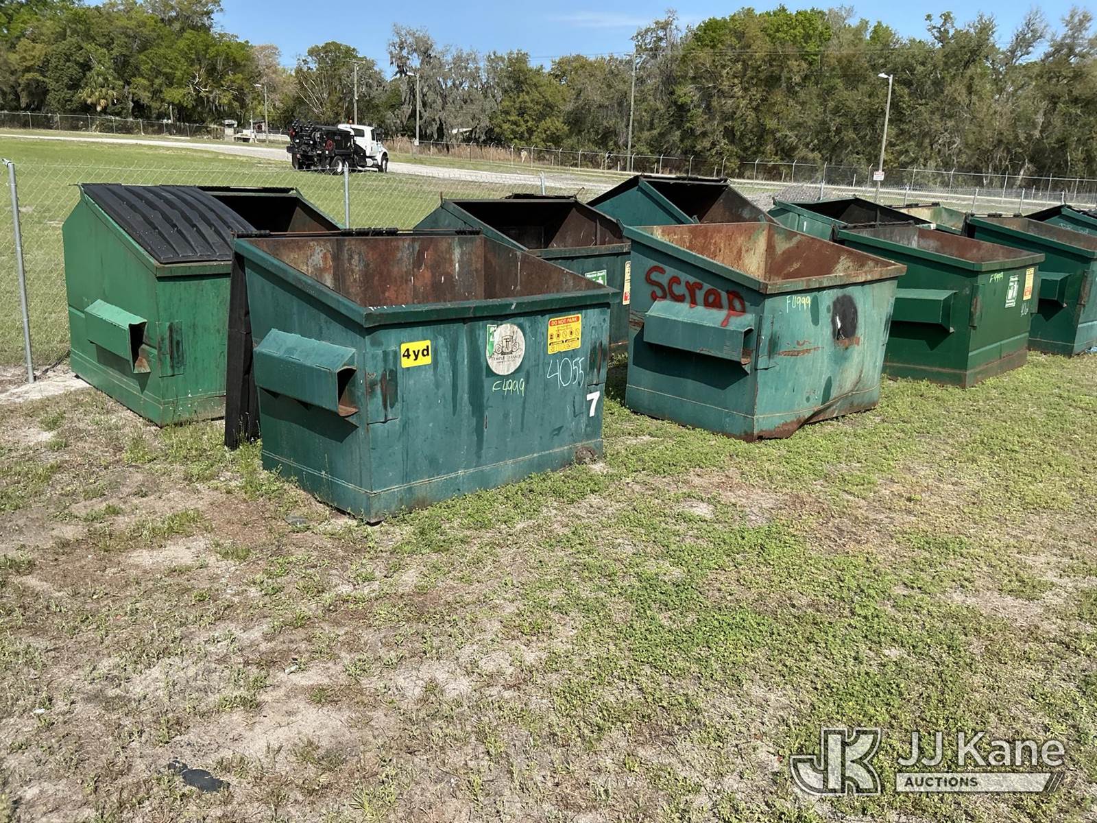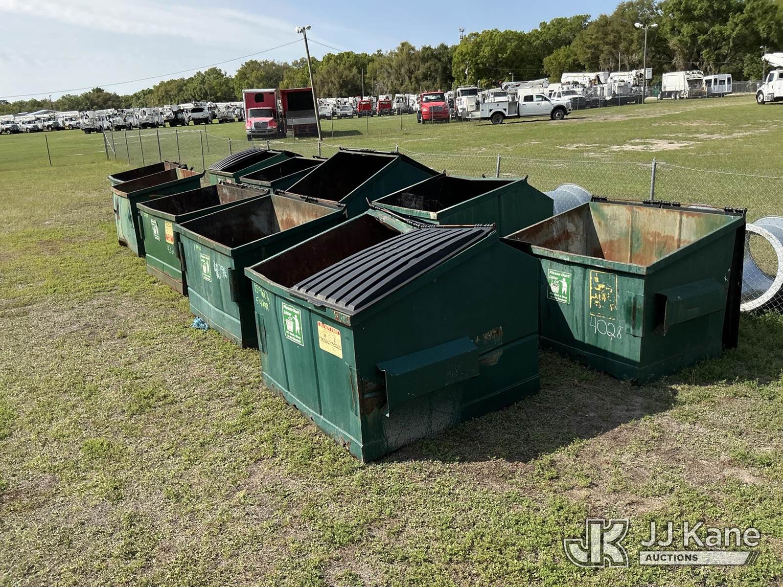 (10) Dumpster (Used Scrap Dumpsters ) NOTE: This unit is being sold AS IS/WHERE IS via Timed Auction and is located in Thonotosassa, FL. Inspection & preview days for this unit are the 2 business days prior to the first day of items closing for this auction, item is located at 11720 N US 301 Thonotosassa, Fl 33592 and hours of operations are 8a-4p. For pre-sale questions, please contact Office Staff @ (813) 986-2485. (Buyer is responsible for removal. Assistance by consignor or JJ Kane Auctions is not assured.)