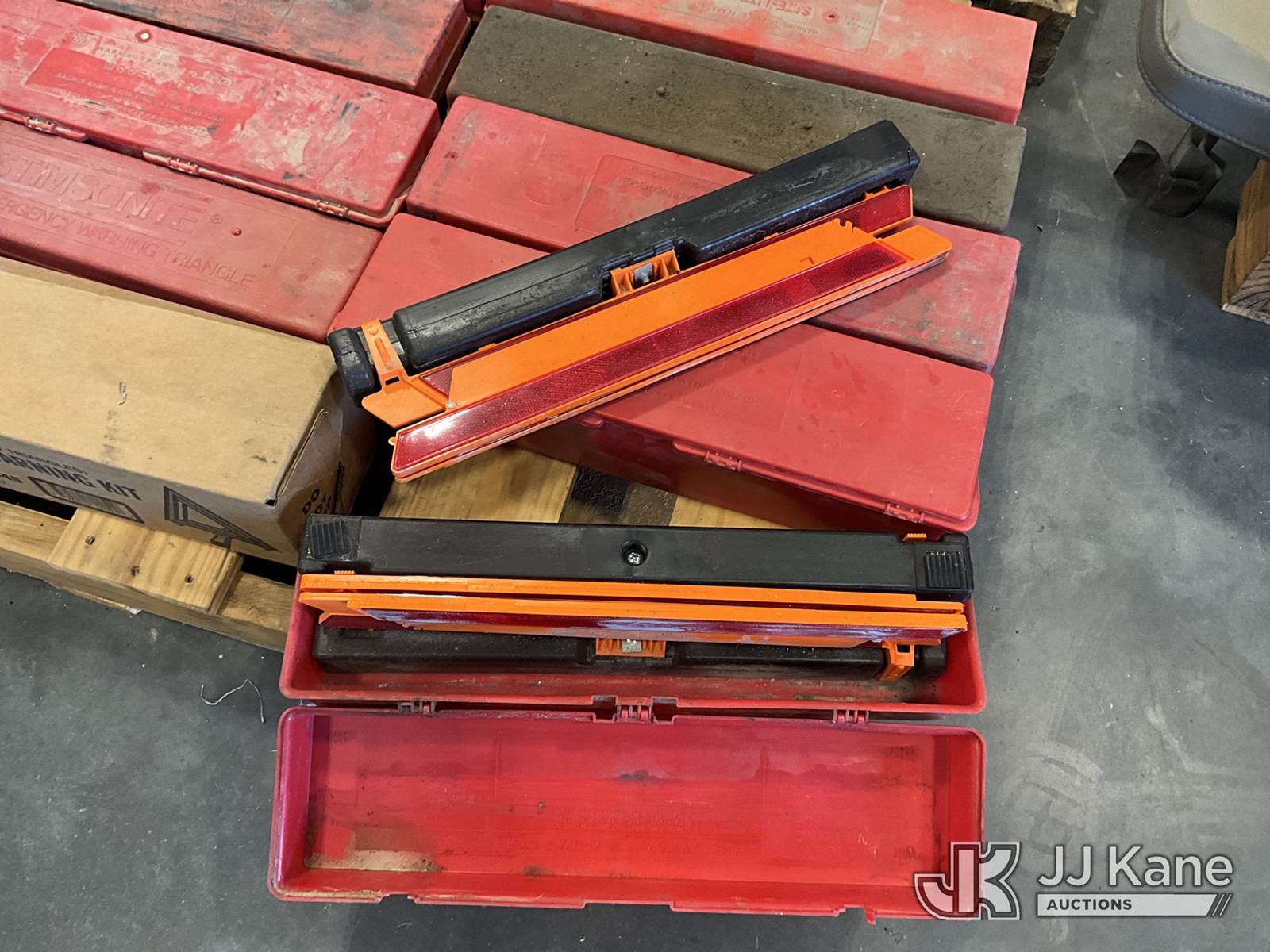 (10)Triangle Roadside Warning Kits NOTE: This unit is being sold AS IS/WHERE IS via Timed Auction and is located in Okmulgee, OK. For more information & removal arrangements please contact Ben Cox @ (572) 235-0552. (Buyer is responsible for removal. Assistance by consignor or JJ Kane Auctions is not assured.)