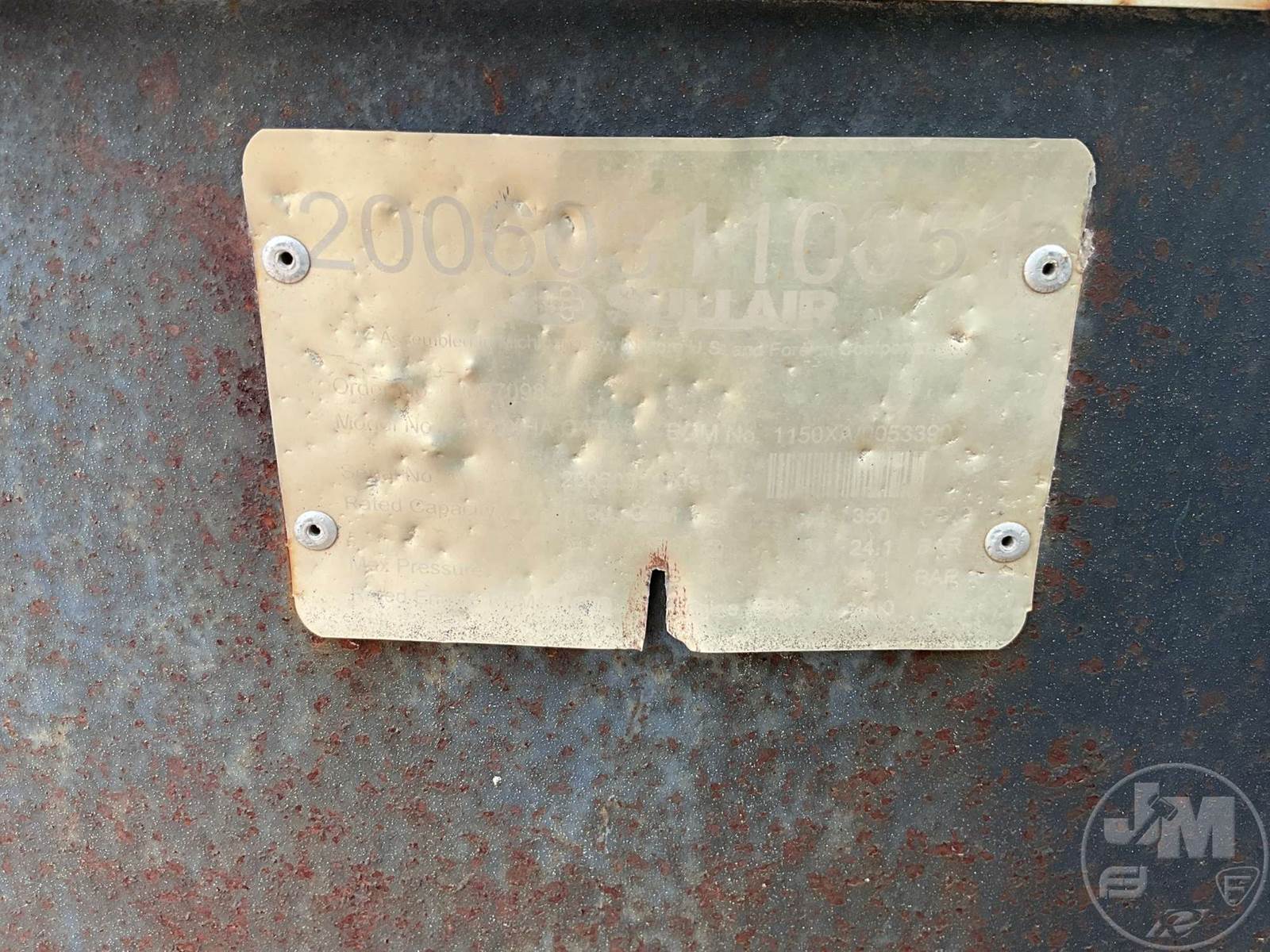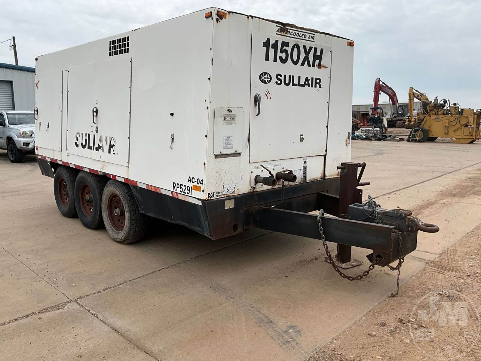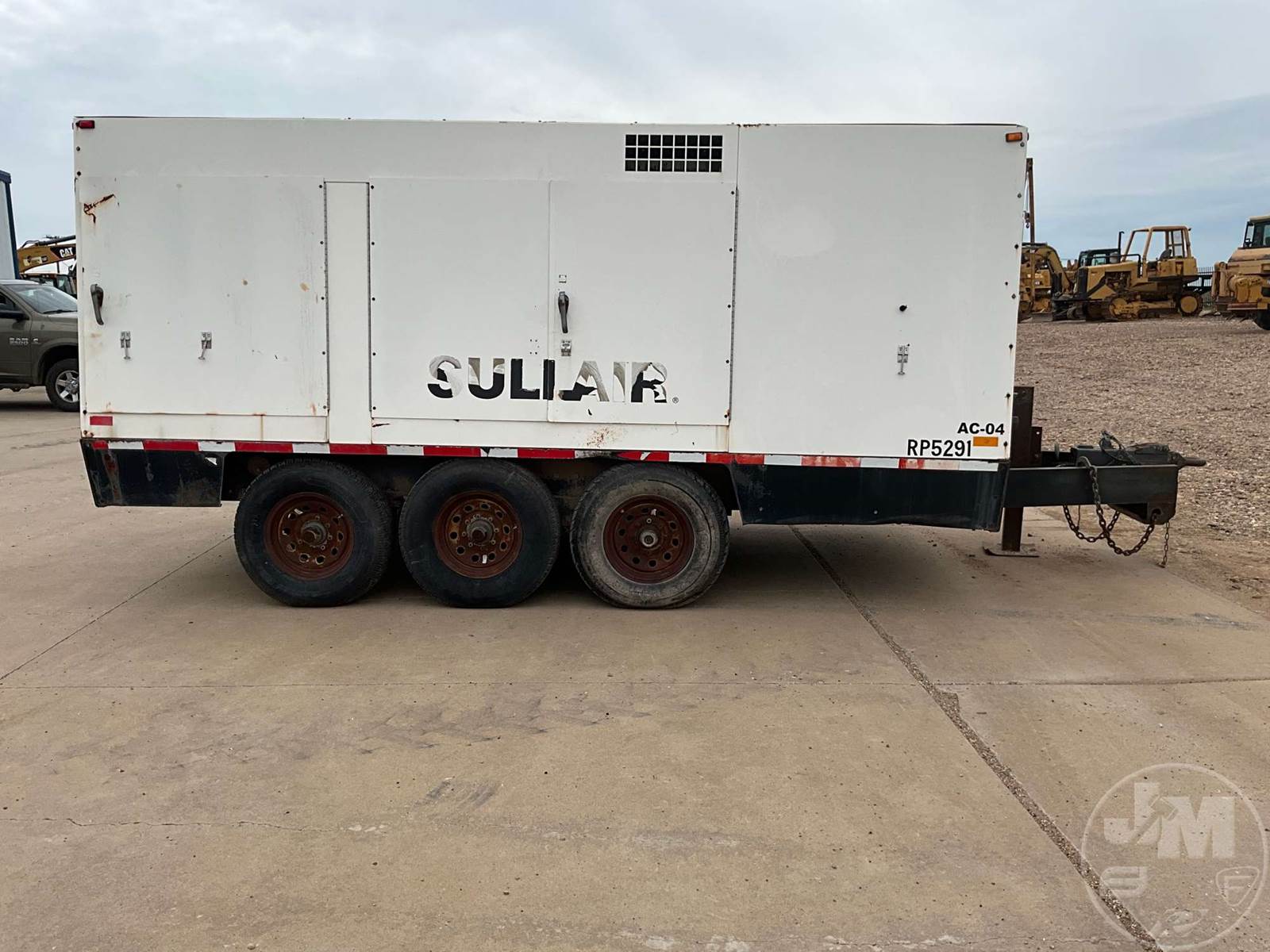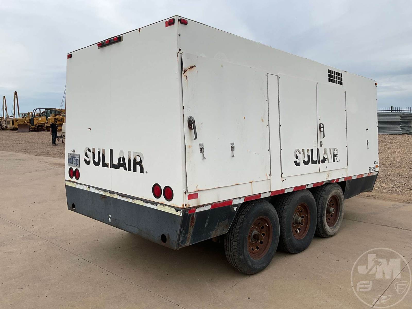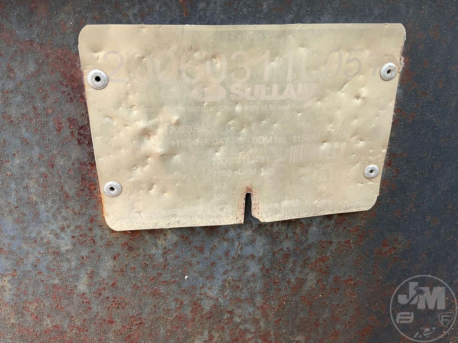 2006 SULLAIR PORTABLE AIR COMPRESSOR, CATERPILLAR, 6 CYL, DIESEL, MOUNTED ON, TRI-AXLE, TRAILER, PINTLE HITCH, 350 PSI, HOUR METER READS: 2922