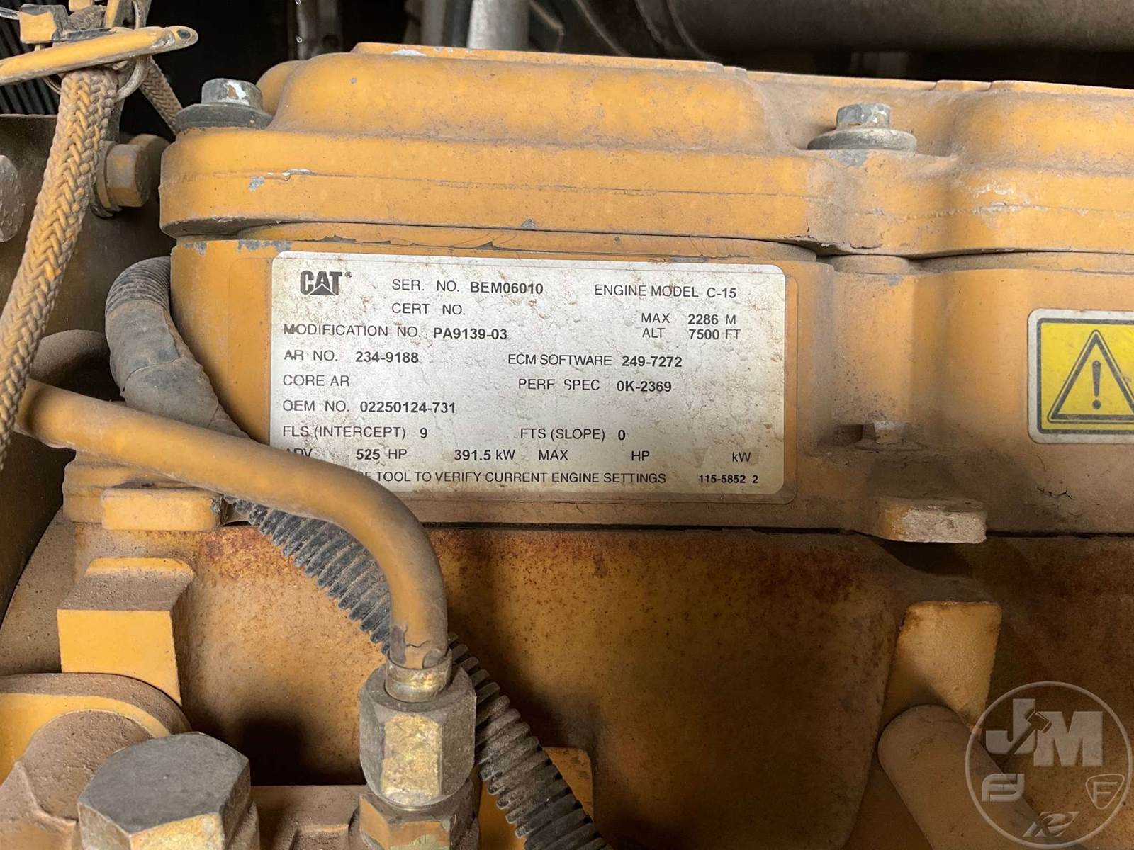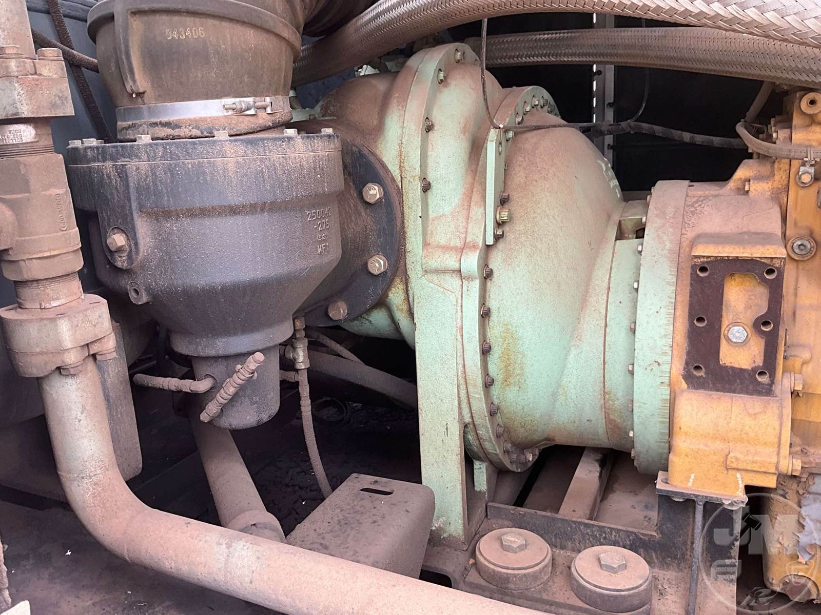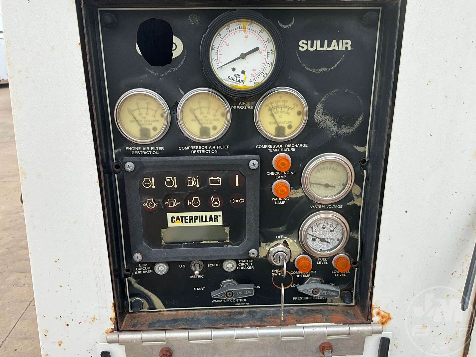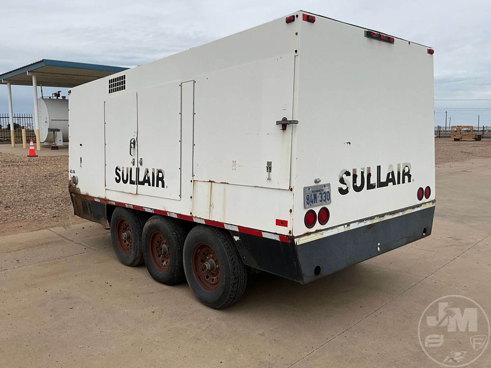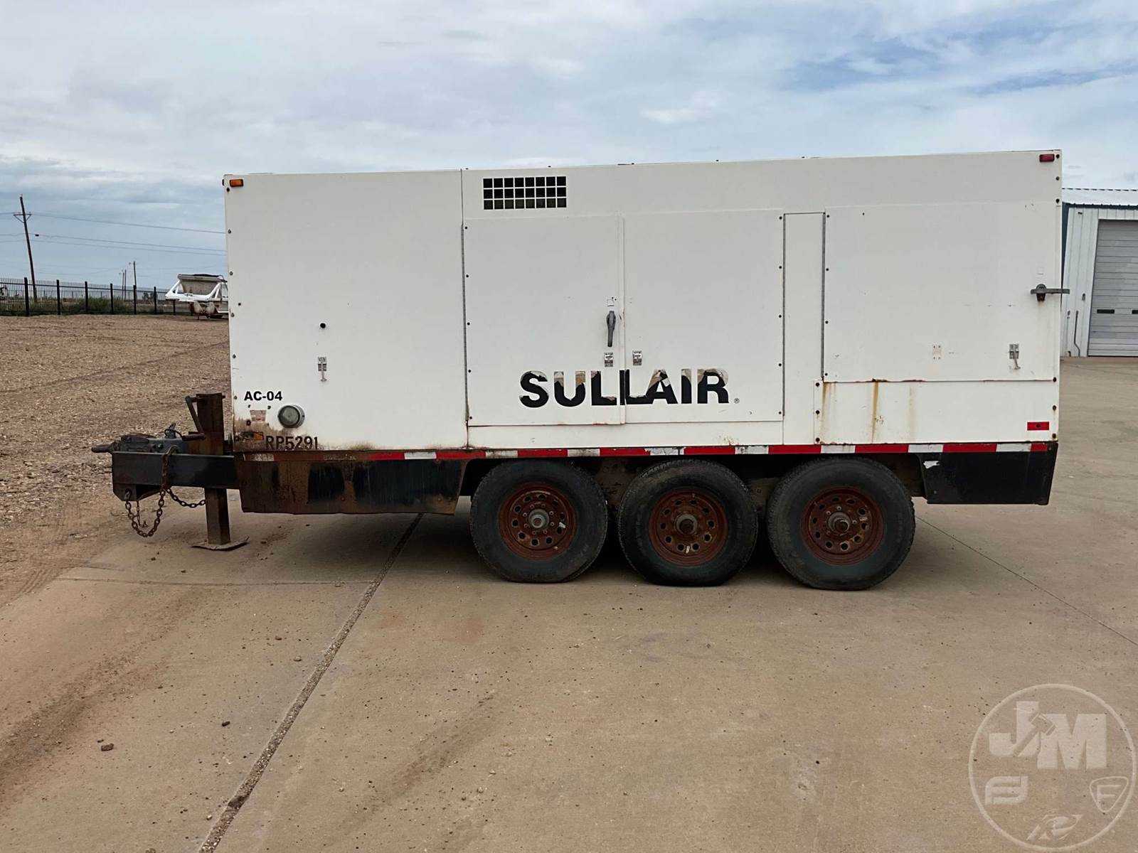 2006 SULLAIR PORTABLE AIR COMPRESSOR, CATERPILLAR, 6 CYL, DIESEL, MOUNTED ON, TRI-AXLE, TRAILER, PINTLE HITCH, 350 PSI, HOUR METER READS: 2922