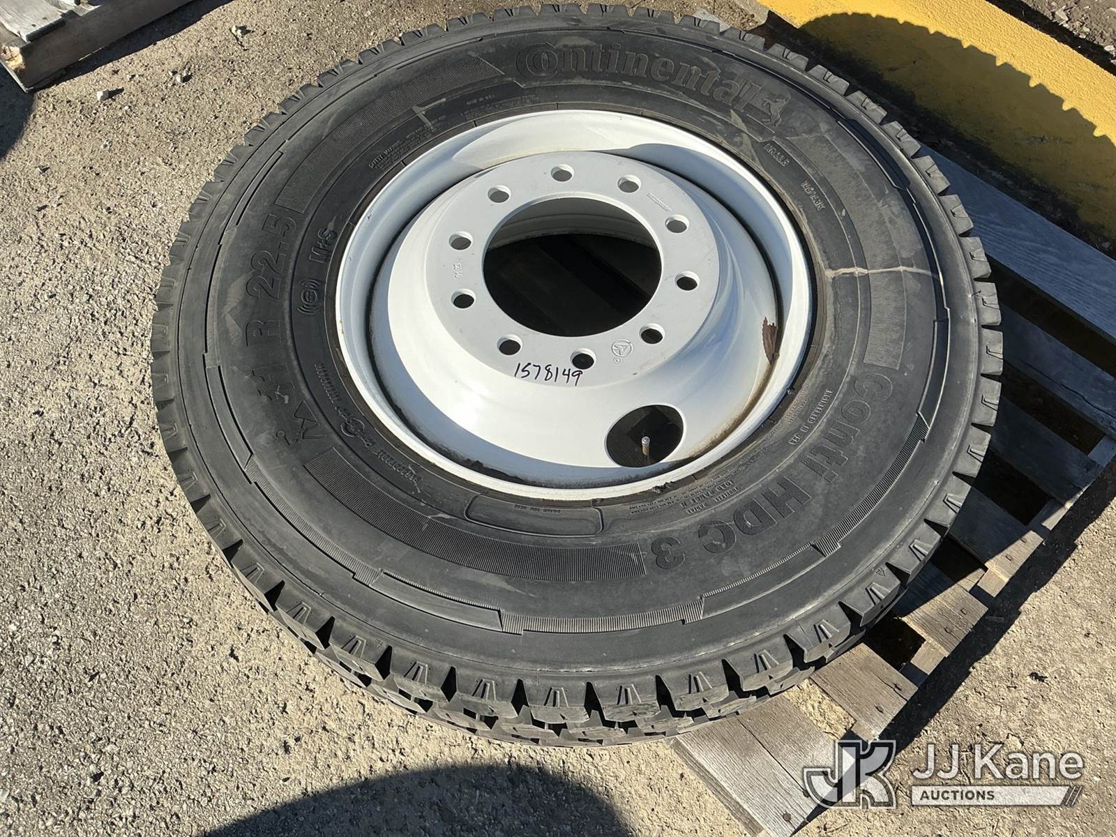 11R 22.5 Tire W/ Steel Rim (New) NOTE: This unit is being sold AS IS/WHERE IS via Timed Auction and is located in Kansas City, MO. For more information and removal arrangements please contact Ricky McPherson @ 816-610-2250. Load out by appointment only, Buyer/Hauler must present copy of paid invoice upon arrival. Purchaser acknowledges ALL lots must be removed within 5 business days of Auction. Items not removed in a timely matter will be transported by a third party to a storage facility. Buyer will be responsible for transport and storage fees. For load out and pick information, please reference the release form sent out after purchase. (Buyer is responsible for removal. Assistance by consignor or JJ Kane Auctions is not assured.)