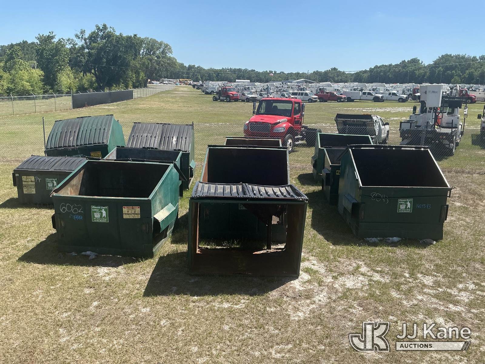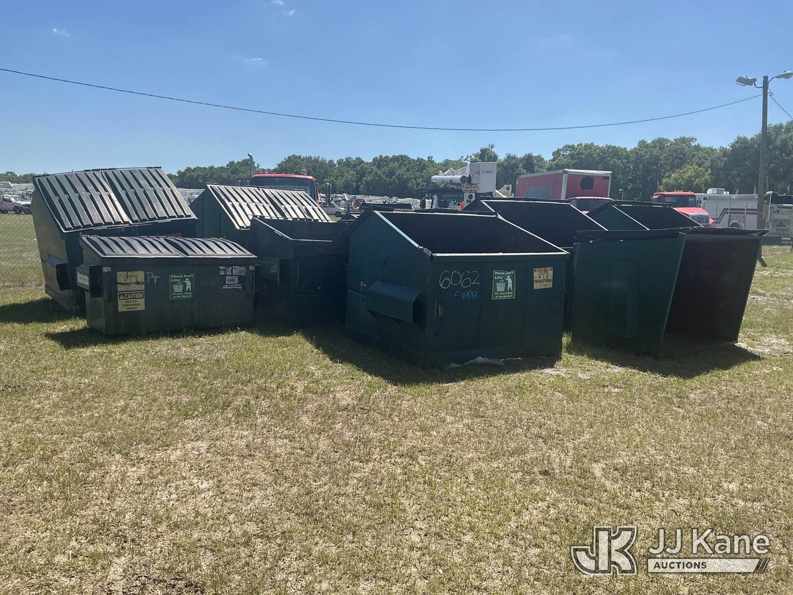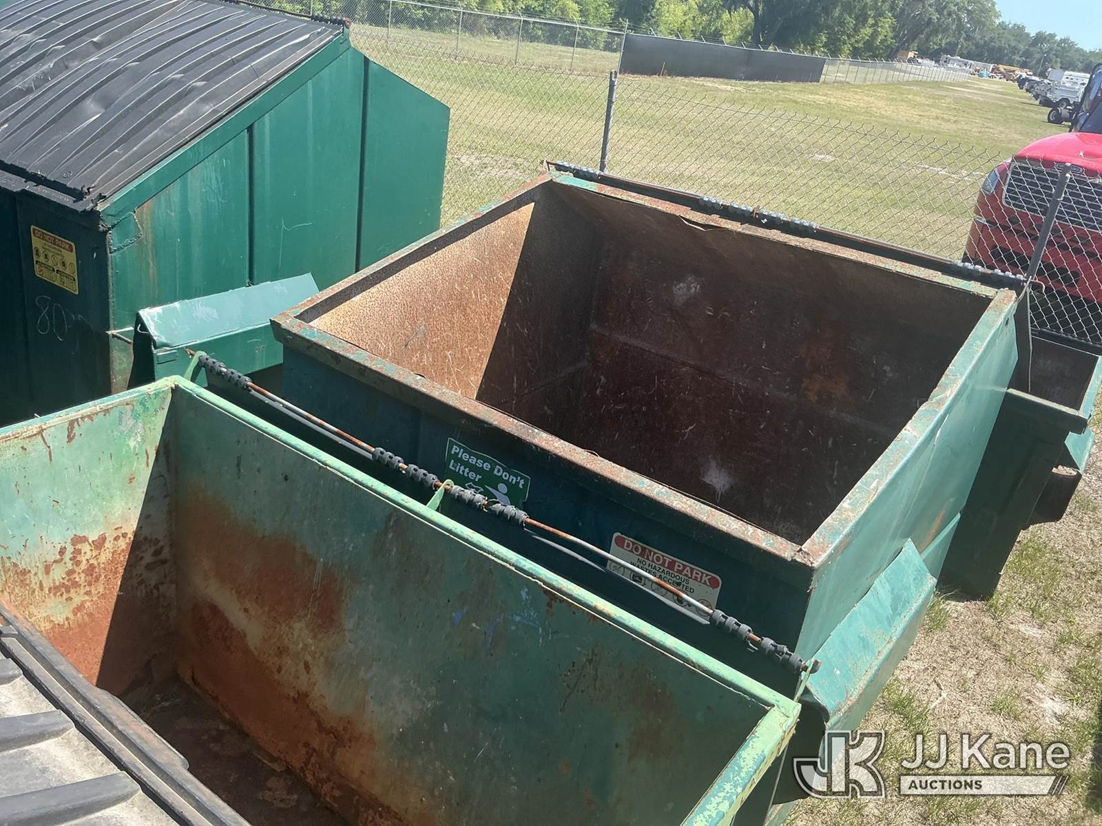(13) Dumpster (Scrap Steel ) NOTE: This unit is being sold AS IS/WHERE IS via Timed Auction and is located in Thonotosassa, FL. Inspection & preview days for this unit are the 2 business days prior to the first day of items closing for this auction, item is located at 11720 N US 301 Thonotosassa, Fl 33592 and hours of operations are 8a-4p. For pre-sale questions, please contact Office Staff @ (813) 986-2485. (Buyer is responsible for removal. Assistance by consignor or JJ Kane Auctions is not assured.)