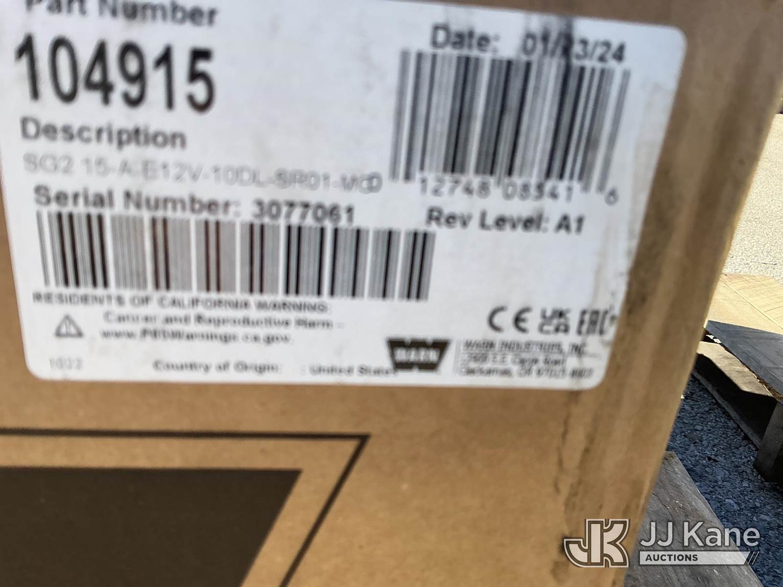 15,000 lb. Warn Winch, S/N: 3074061 (New) NOTE: This unit is being sold AS IS/WHERE IS via Timed Auction and is located in Kansas City, MO. For more information and removal arrangements please contact Ricky McPherson @ 816-610-2250. Load out by appointment only, Buyer/Hauler must present copy of paid invoice upon arrival. Purchaser acknowledges ALL lots must be removed within 5 business days of Auction. Items not removed in a timely matter will be transported by a third party to a storage facility. Buyer will be responsible for transport and storage fees. For load out and pick information, please reference the release form sent out after purchase. (Buyer is responsible for removal. Assistance by consignor or JJ Kane Auctions is not assured.)