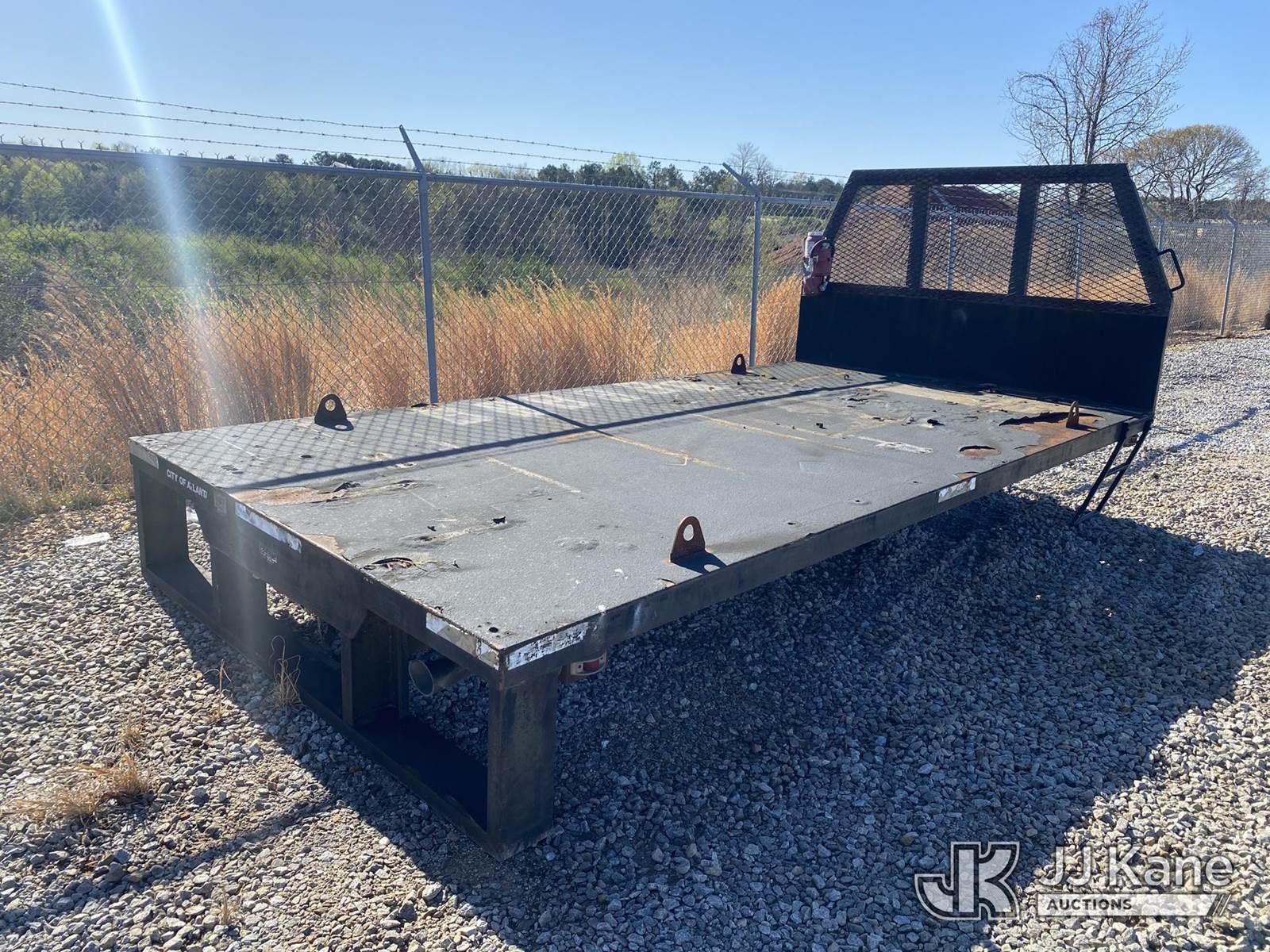 15x8 TRUCK STEEL FLAT BED W/HEAD RACK S/N: 06533 NOTE: This unit is being sold AS IS/WHERE IS via Timed Auction and is located in Villa Rica, GA. Inspection & preview days for this unit are the 2 business days prior to the first day of items closing for this auction, item is located at 100 Liberty Rd Villa Rica, GA 30180 and hours of operations are 8a-4p. For pre-sale questions, please contact Office Staff @ (470) 590-8453. (Buyer is responsible for removal. Assistance by consignor or JJ Kane Auctions is not assured.)