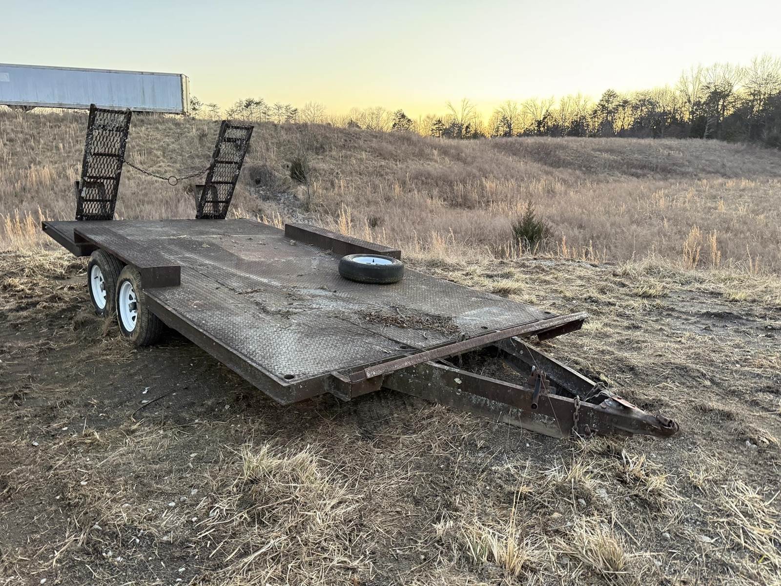 Seller's Notes:(2) 5 Lug Axles, Approx 98“ Width, Spring Ride Suspension, 58“x15“ Ramps, Drive Over Fenders, 100-96L Tires