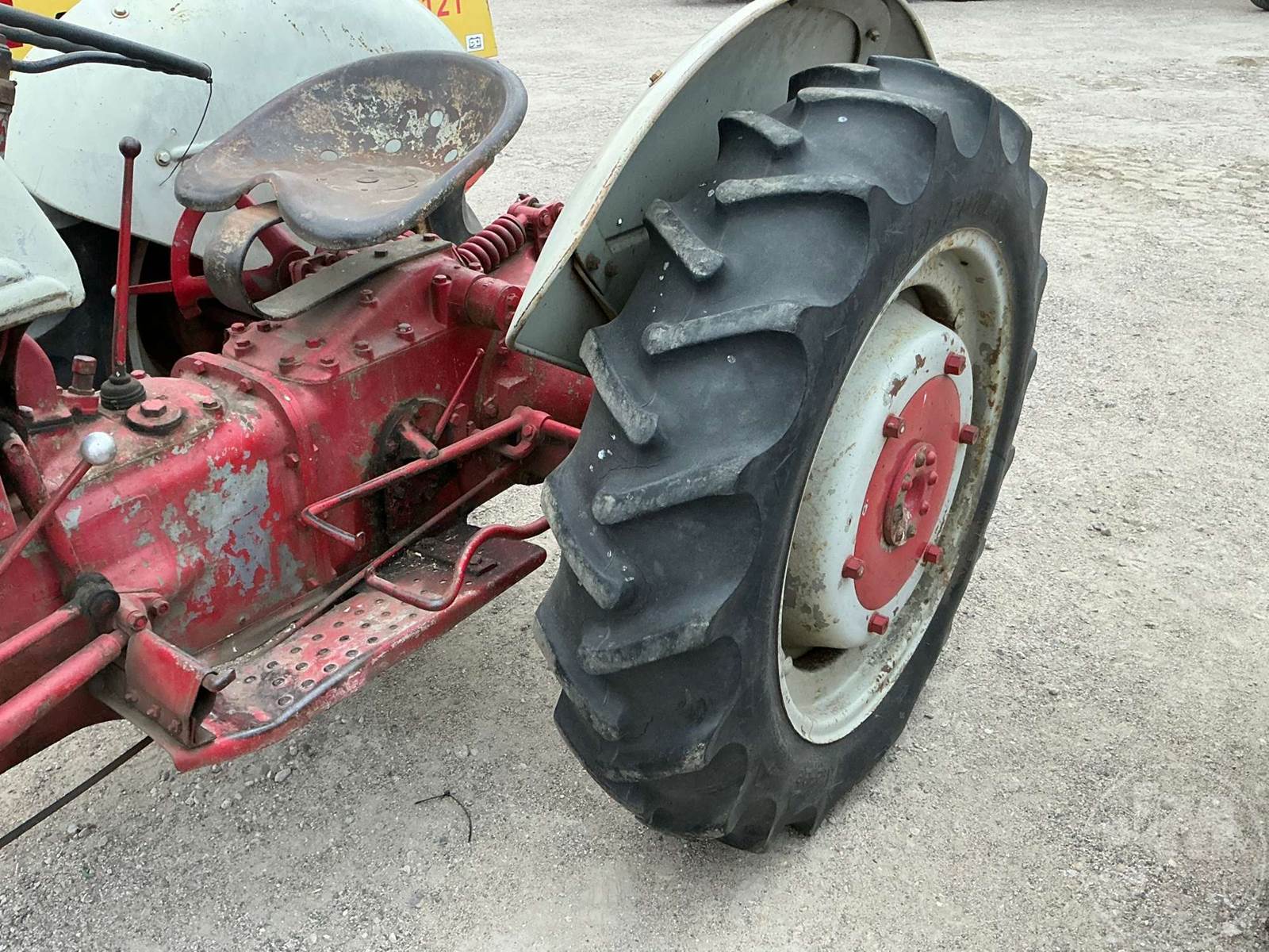 FORD TRACTOR, OPEN STATION, 4 CYL, GAS ENGINE, 3 PT HITCH, 540 RPM PTO, ***INOP***, 11.2-28 REAR TIRES, 4.00-19 FRONT TIRES
