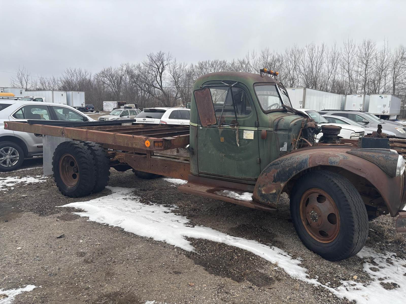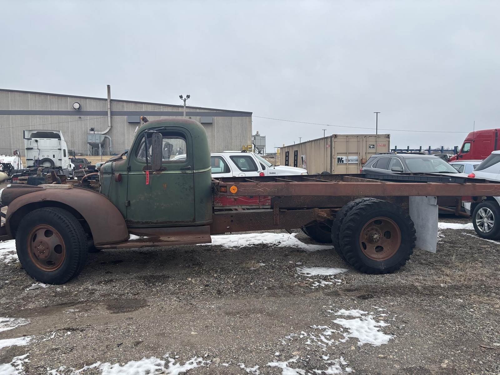 Inline 6 Cylinder Gasoline Engine, Manual Transmission, PTO, Approx 94" x 160" Hydraulic Flat Bed, Spring Ride, 8.25-20 Front Tires, 9-20 Rear TiresBill of Sale Only - Title Not Available