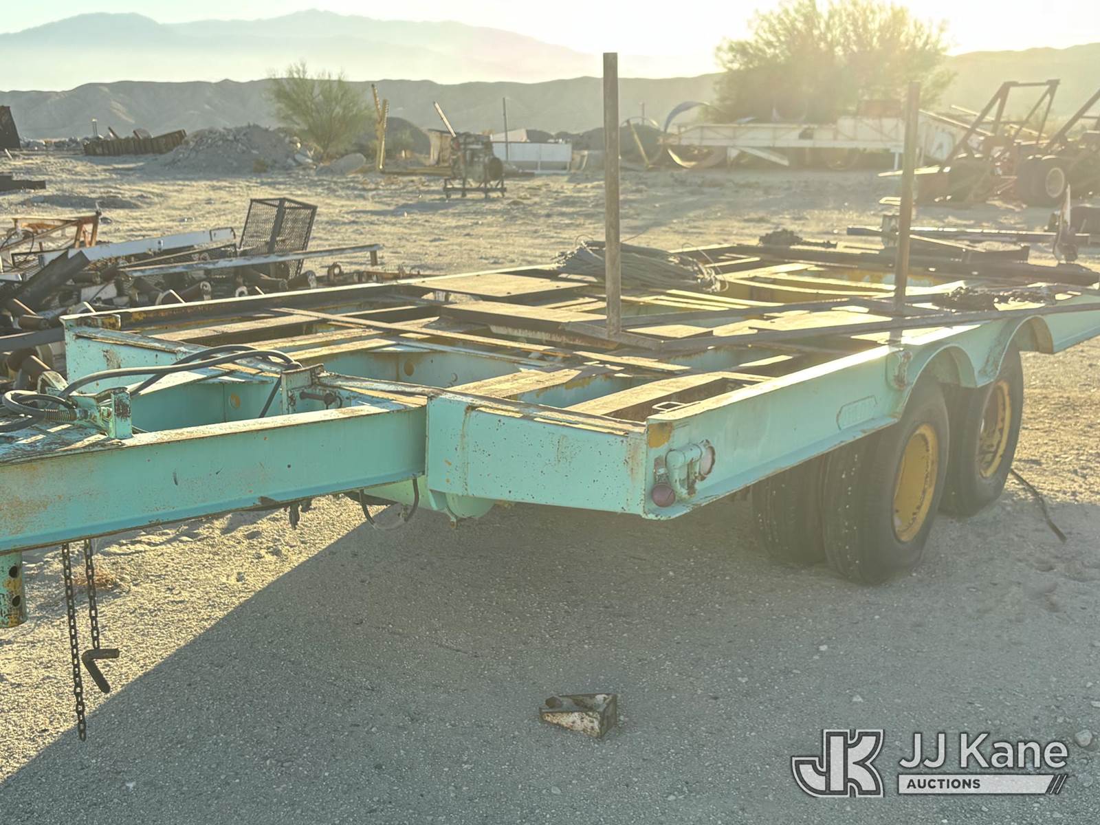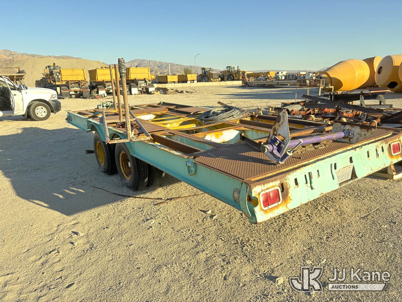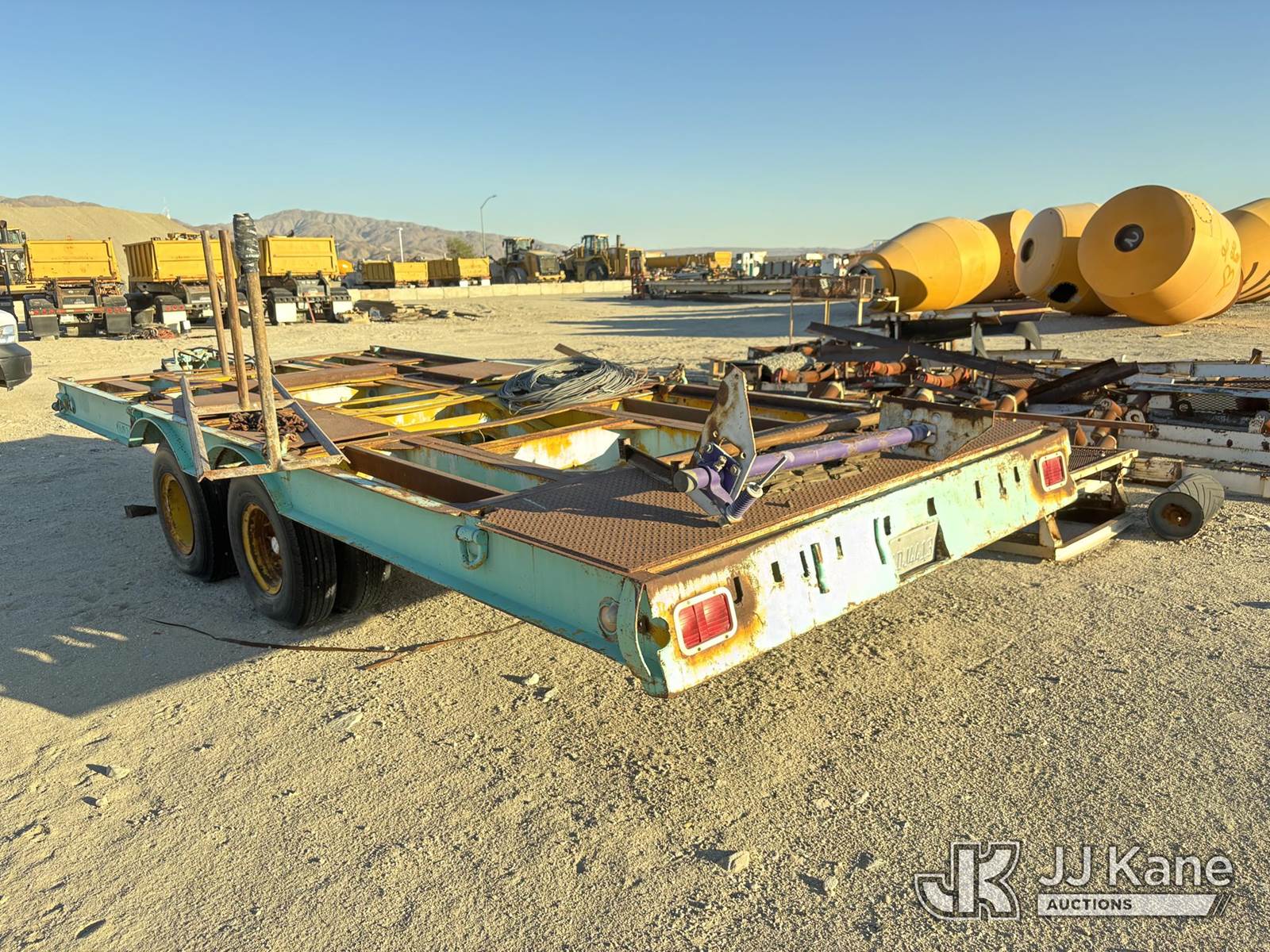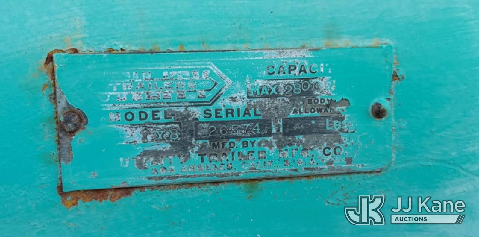 1955 Utility TLTB-TX8 Heavy-duty flatbed equipment trailer, TX8 Tandem-Axle Flatbed Trailer, ~24-26' x 8', steel frame & diamond-plate rear deck, pintle-style tongue, tie-downs, 8 tires (Decking: Center Deck Panels Missing - Tires: Aged; Some Cracking Visible; Plan On Replacement Before Road Service) This is a Titled Item NOTE: This unit is being sold AS IS/WHERE IS via Timed Auction and is located in Desert Hot Springs, CA. For more information & removal arrangements please contact John Roessler @ 760-275-3590. (Buyer is responsible for removal. Assistance by consignor or JJ Kane Auctions is not assured.)