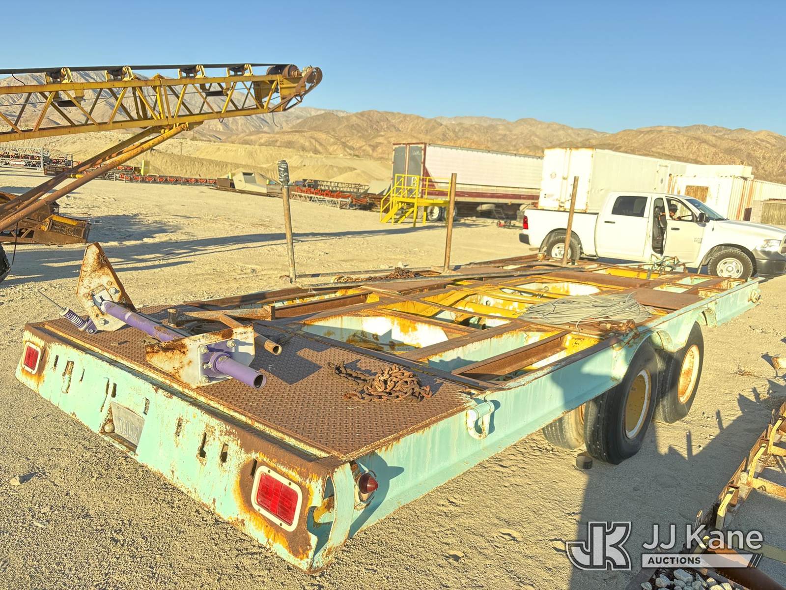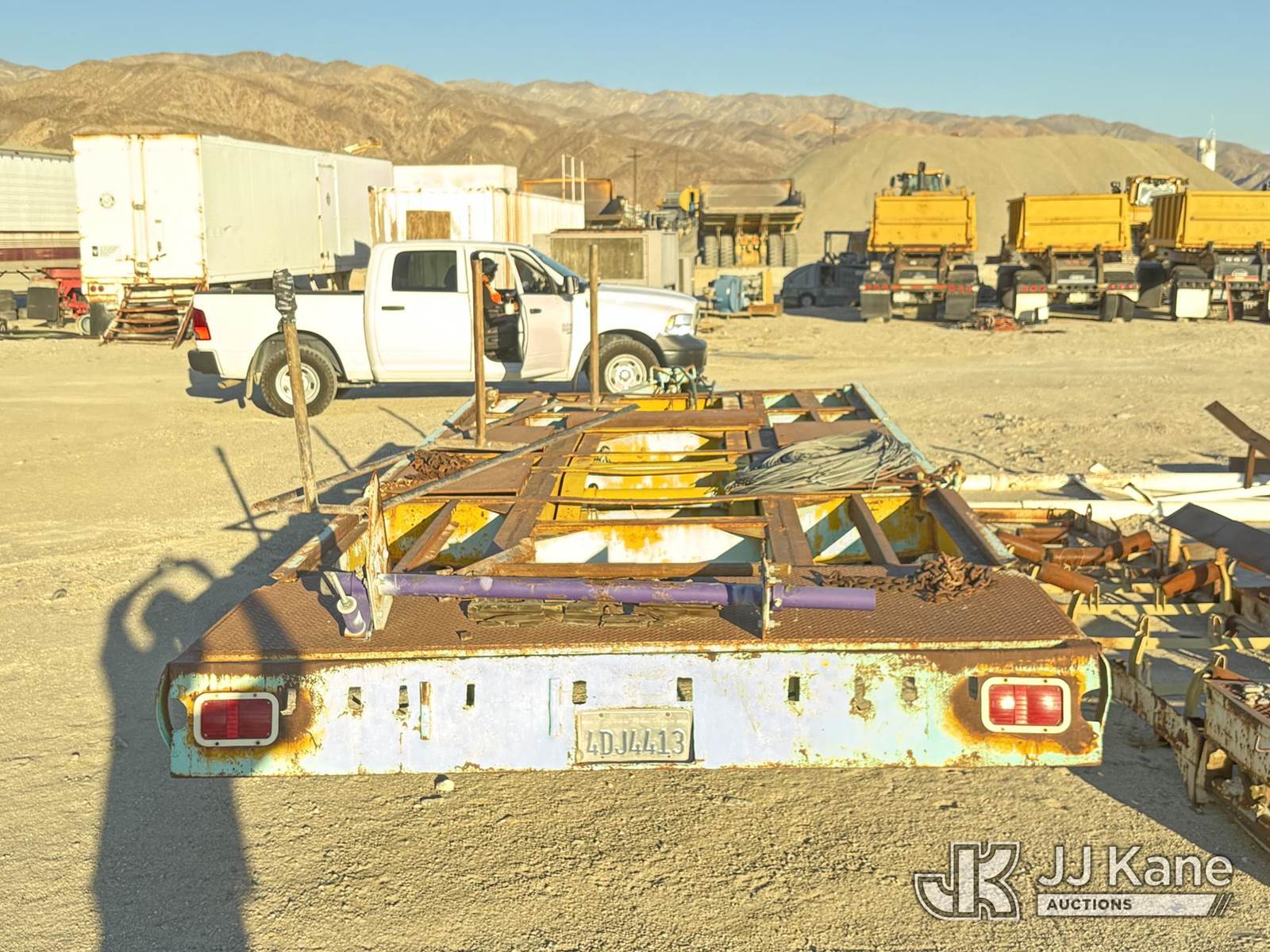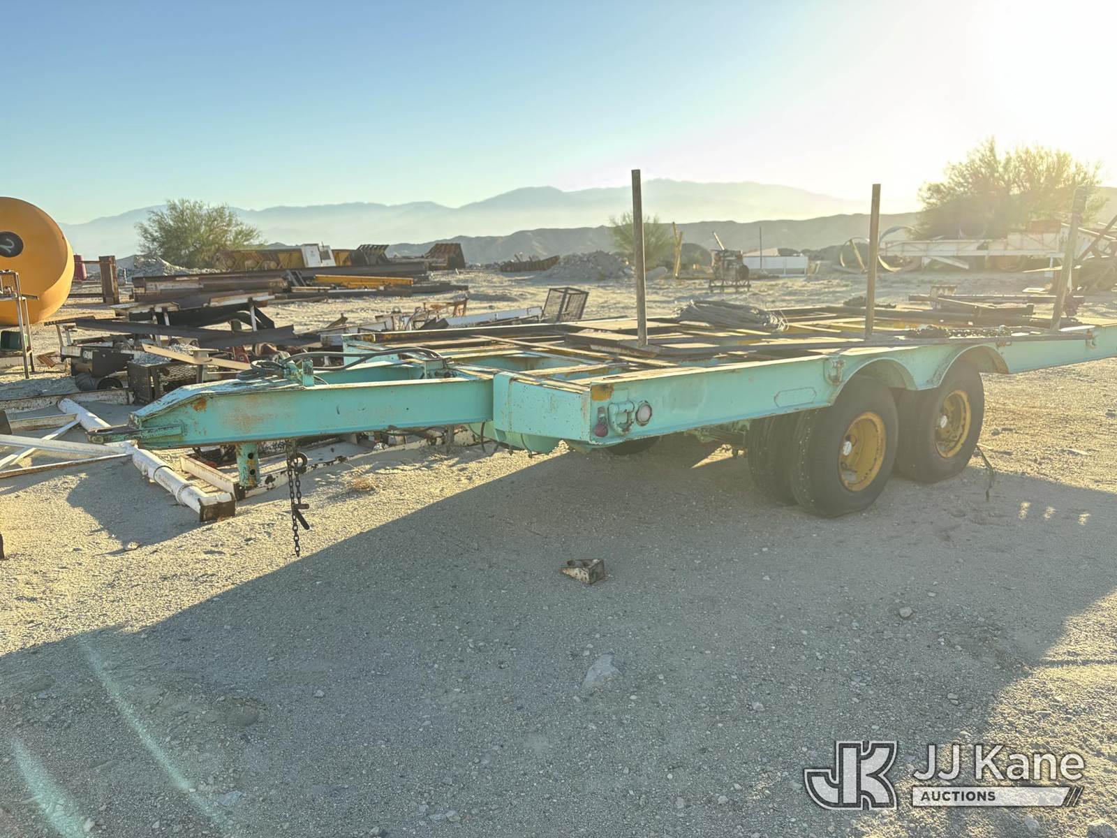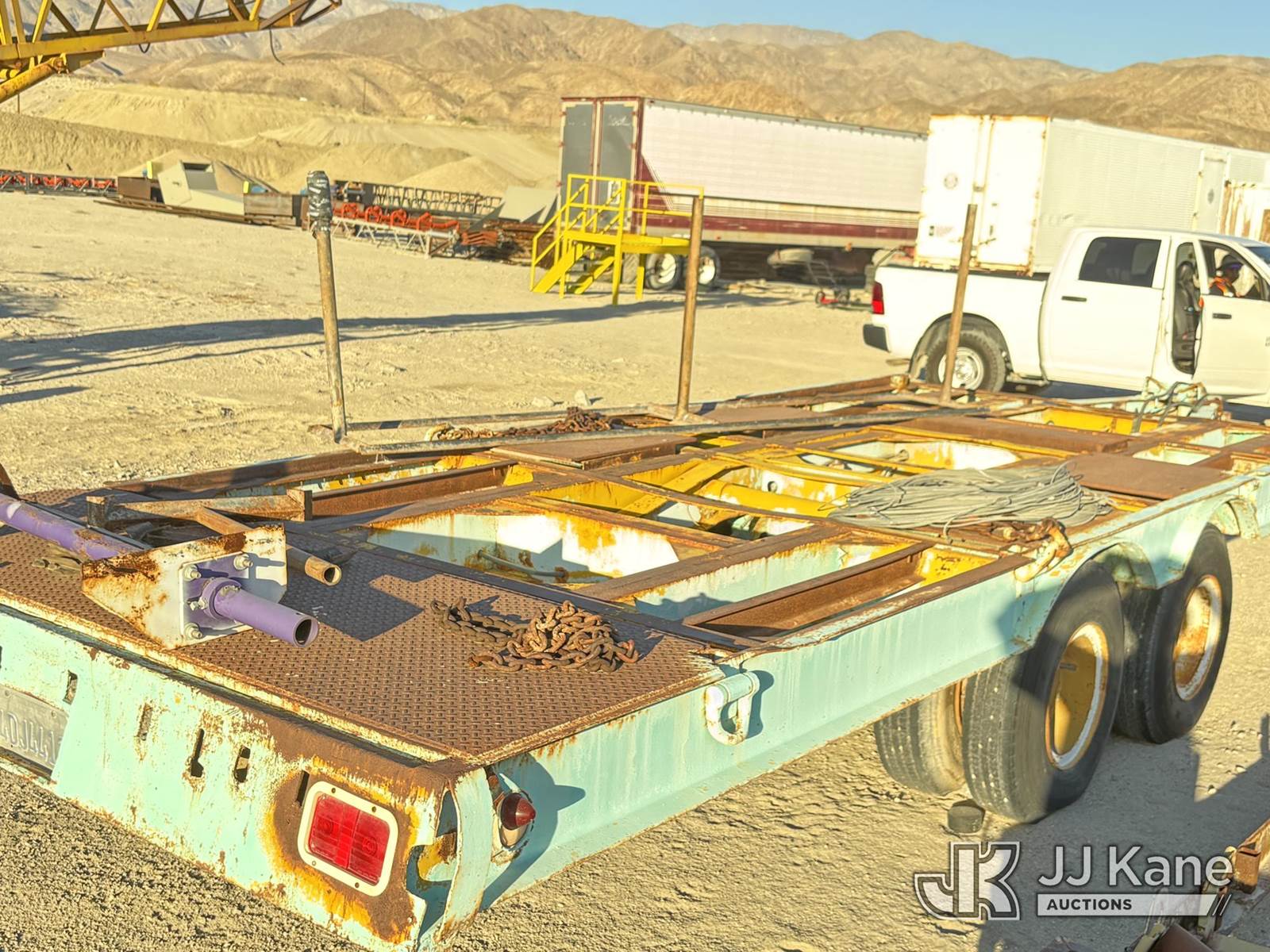 1955 Utility TLTB-TX8 Heavy-duty flatbed equipment trailer, TX8 Tandem-Axle Flatbed Trailer, ~24-26' x 8', steel frame & diamond-plate rear deck, pintle-style tongue, tie-downs, 8 tires (Decking: Center Deck Panels Missing - Tires: Aged; Some Cracking Visible; Plan On Replacement Before Road Service) This is a Titled Item NOTE: This unit is being sold AS IS/WHERE IS via Timed Auction and is located in Desert Hot Springs, CA. For more information & removal arrangements please contact John Roessler @ 760-275-3590. (Buyer is responsible for removal. Assistance by consignor or JJ Kane Auctions is not assured.)