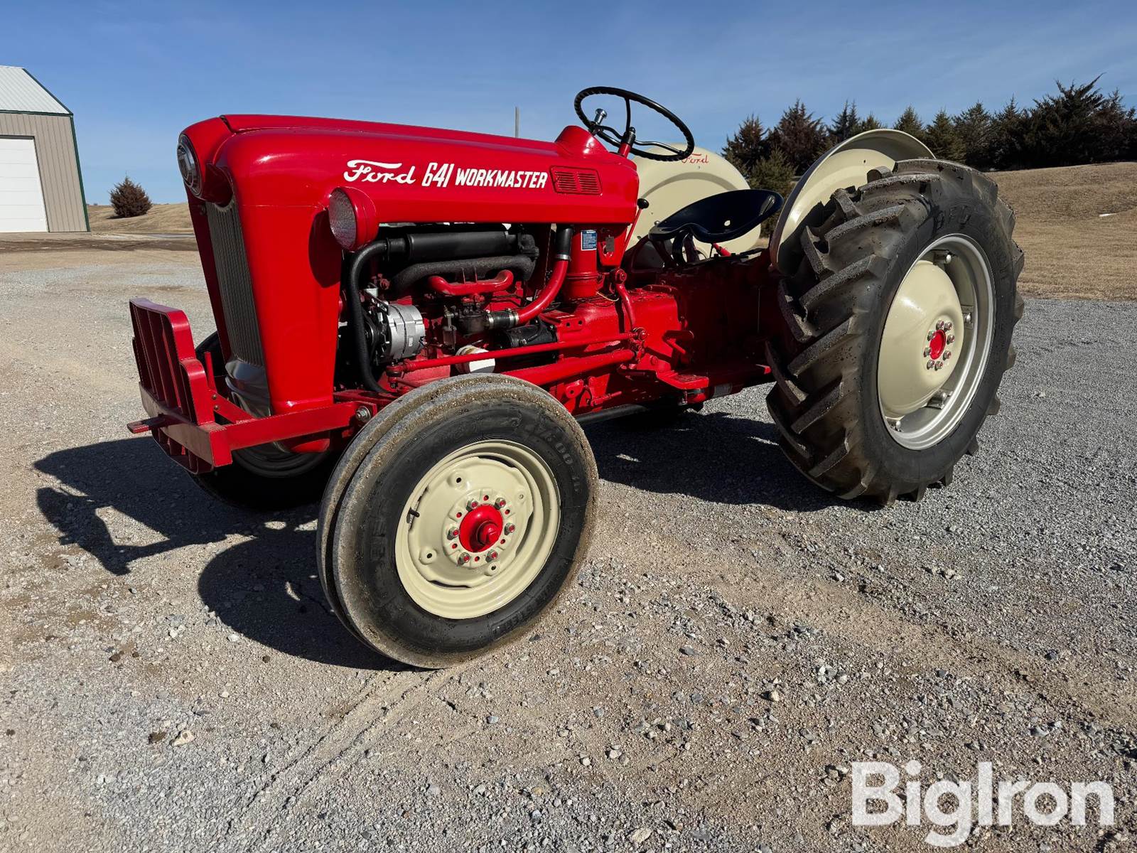 1958 Ford 641 Workmaster 2WD Tractor, 3,918 hrs showing, 48 hp, 2.2 liter, 134 cid 4 cyl gas engine, 4 speed manual trans, 540 PTO, 3 pt-no center link, drawbar, front grill guard with hitch, fenders, 5.50x16 front tires, 12.4-28 rear tires, SN: 36005