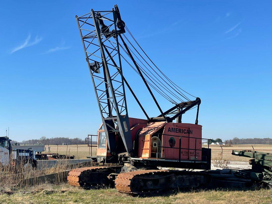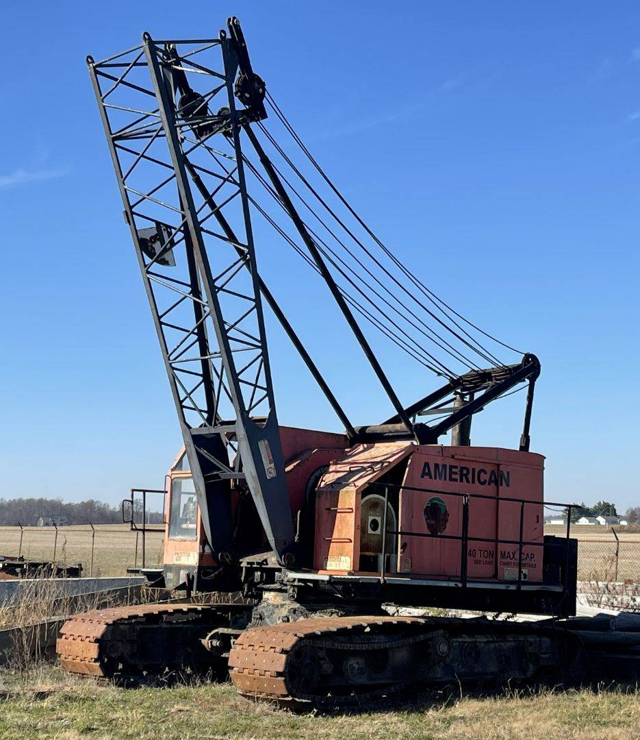 1960 American Model 599-C Crawler Crane, 40 Ton Lift Capacity, 80' LatticeBoom, Block & Hook, GM 4-71N Diesel Engine, 115 Horsepower, Was UsedPrimarily as a Lift Crane.