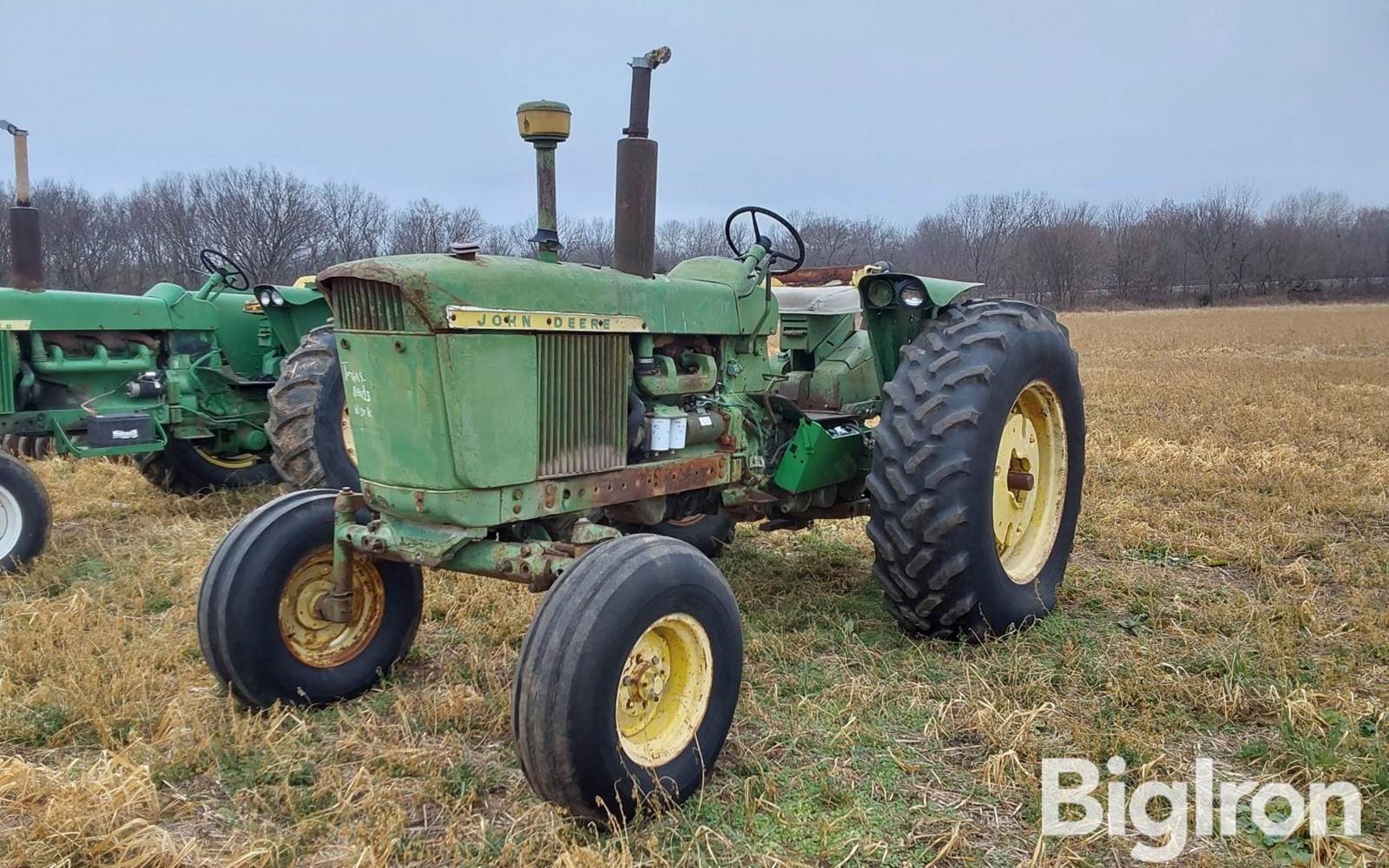 1964 John Deere 3020 2WD Diesel Tractor, 1,573 hrs showing, 71 hp, JD 4-cylinder diesel engine (Not Running), 8-speed power-shift transmission, 540/1000 PTO, CAT II 3-point hitch, (1) remote, Rear wheel weights, 10.00x16 front tires, 18.4x34 rear tires, NOT OPERATIONAL DAY OF LISTING, SN: 59094