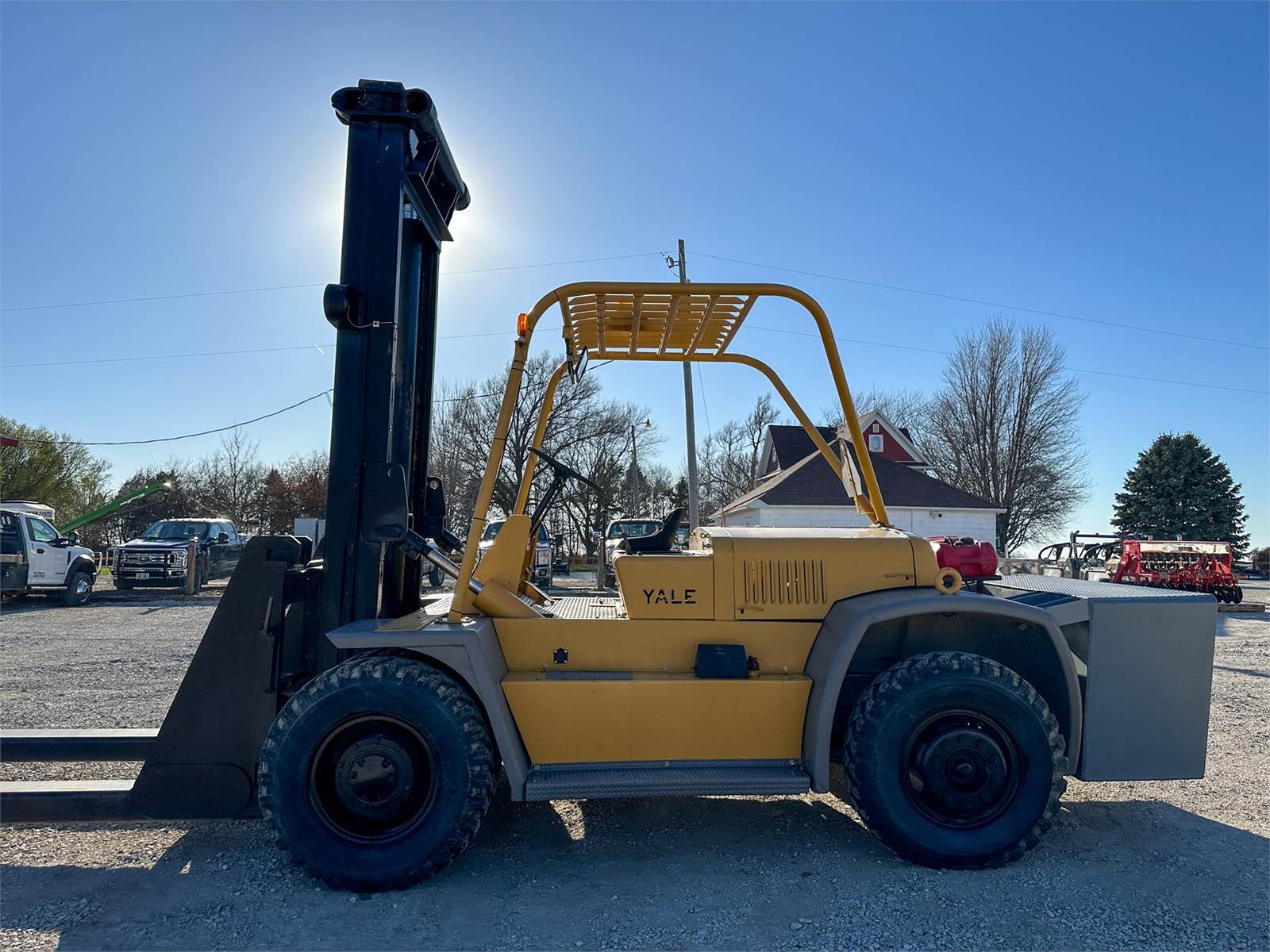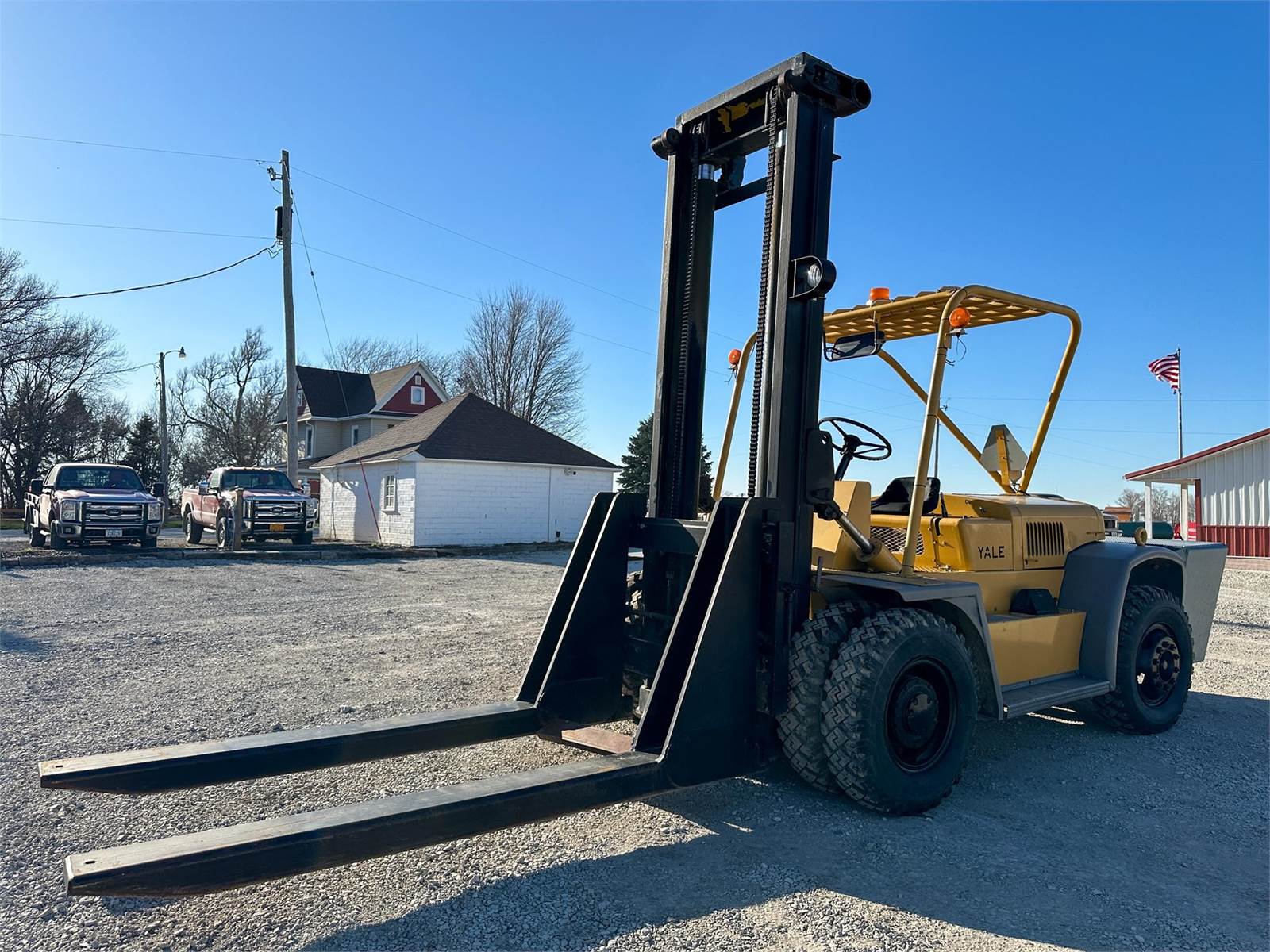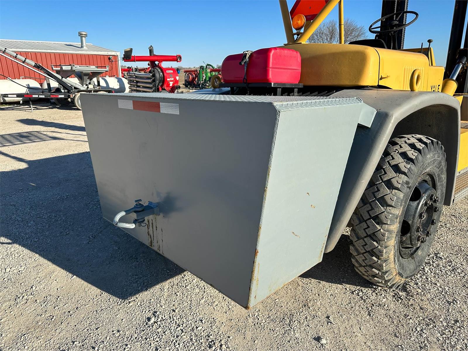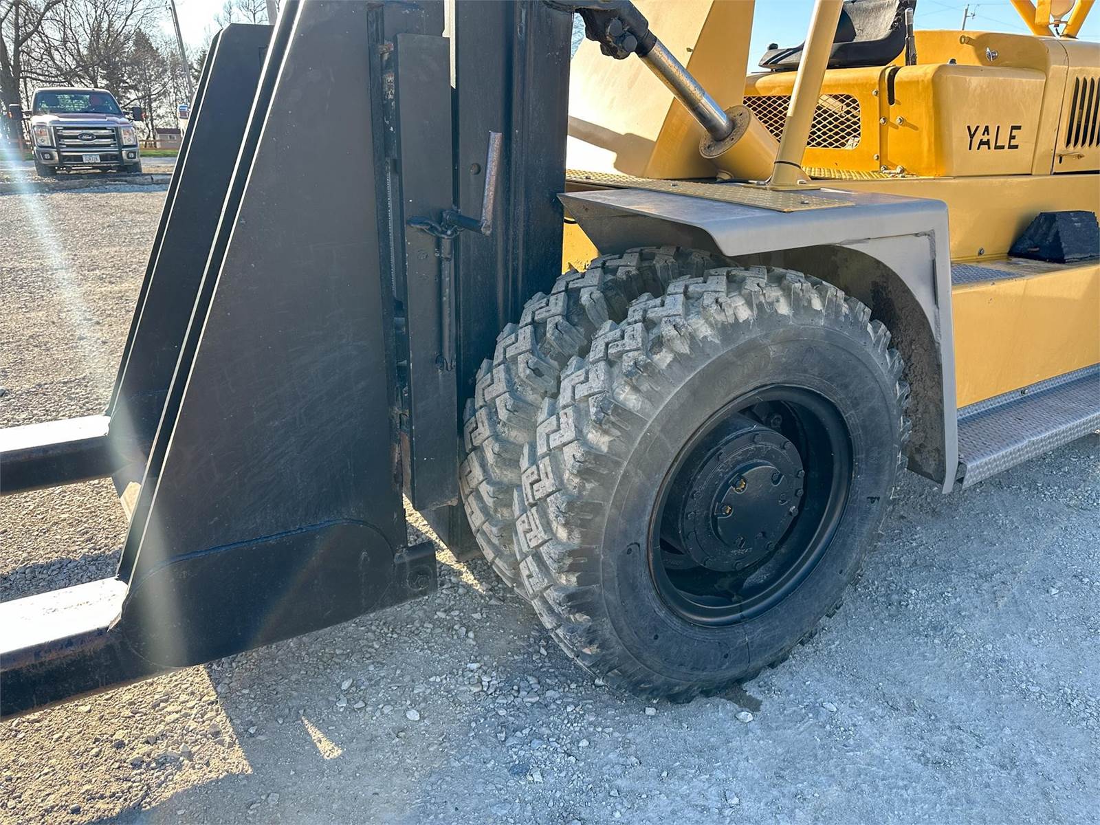 Enjoy $0 Down Financing with No Payments for 6 Months, Affordable Nationwide Delivery, and Unbeatable Prices! Used Yale Forklift with rugged front dual tires, heavy duty rear rock weight box for counterbalance, 20,000+ lb capacity, Chrysler engine, rear external fuel tank, repainted 2 years ago as part of maintenance interval.