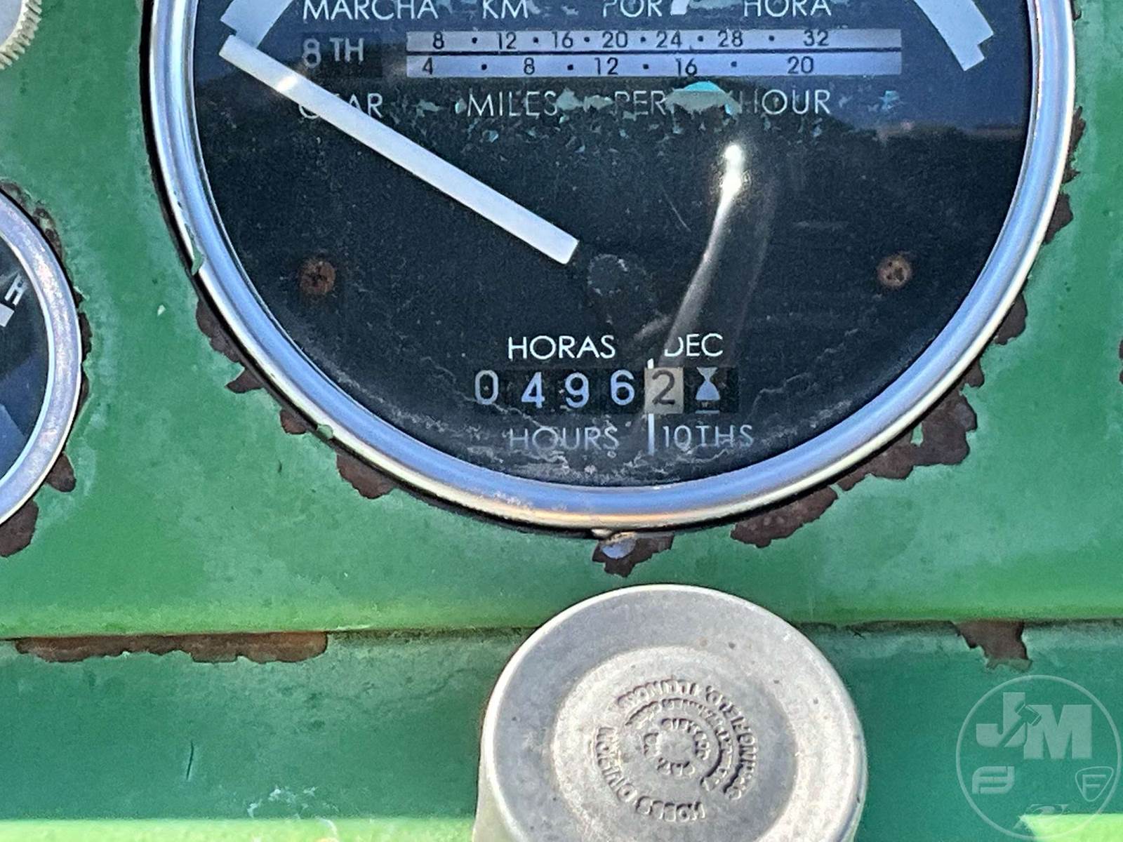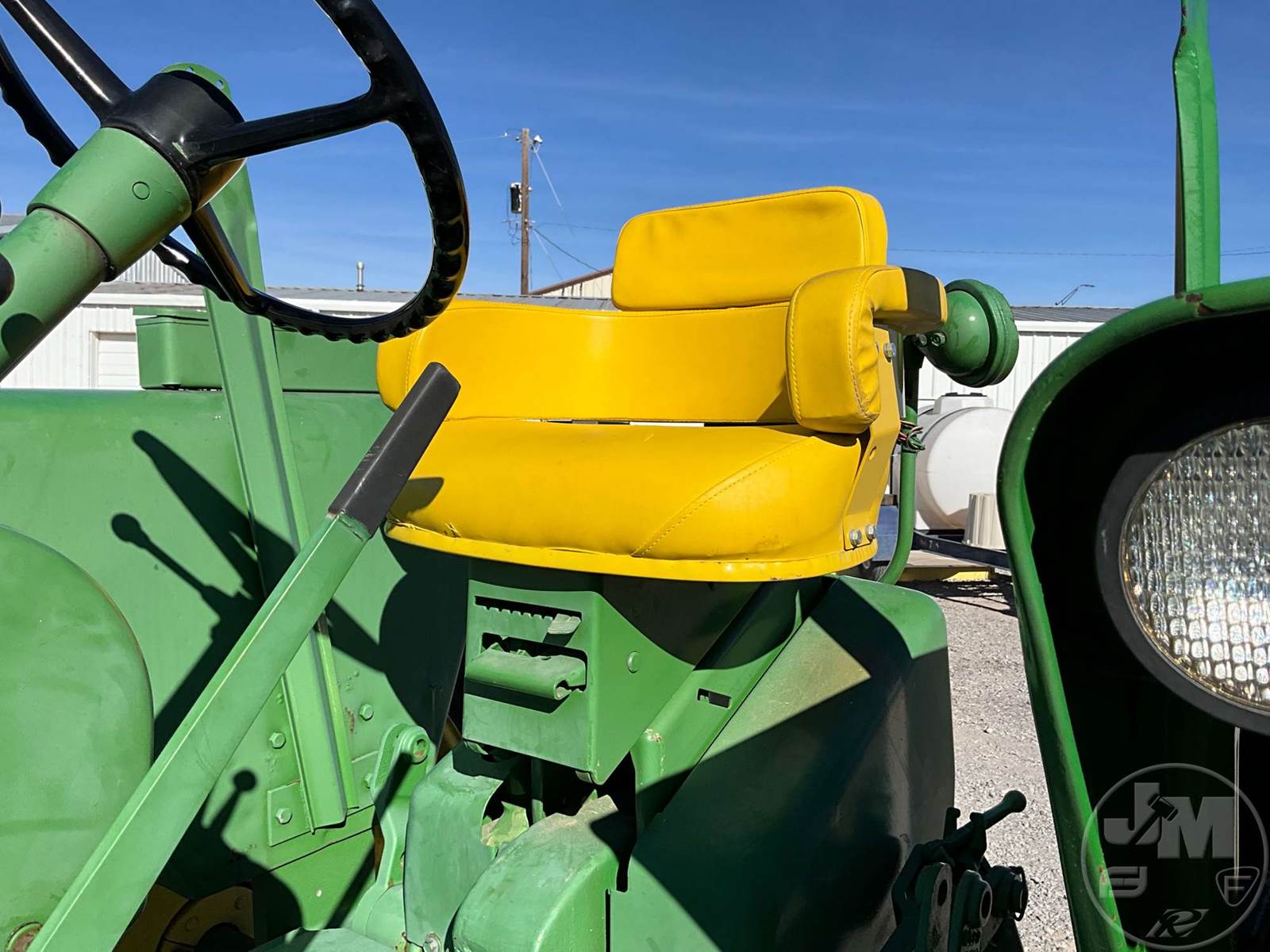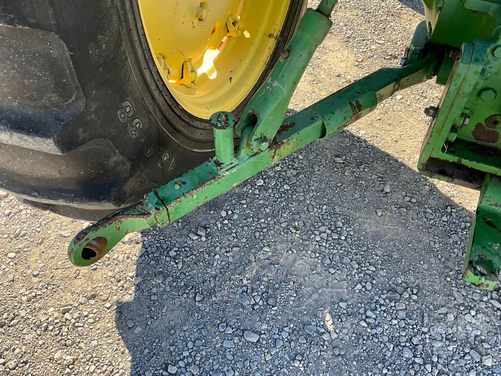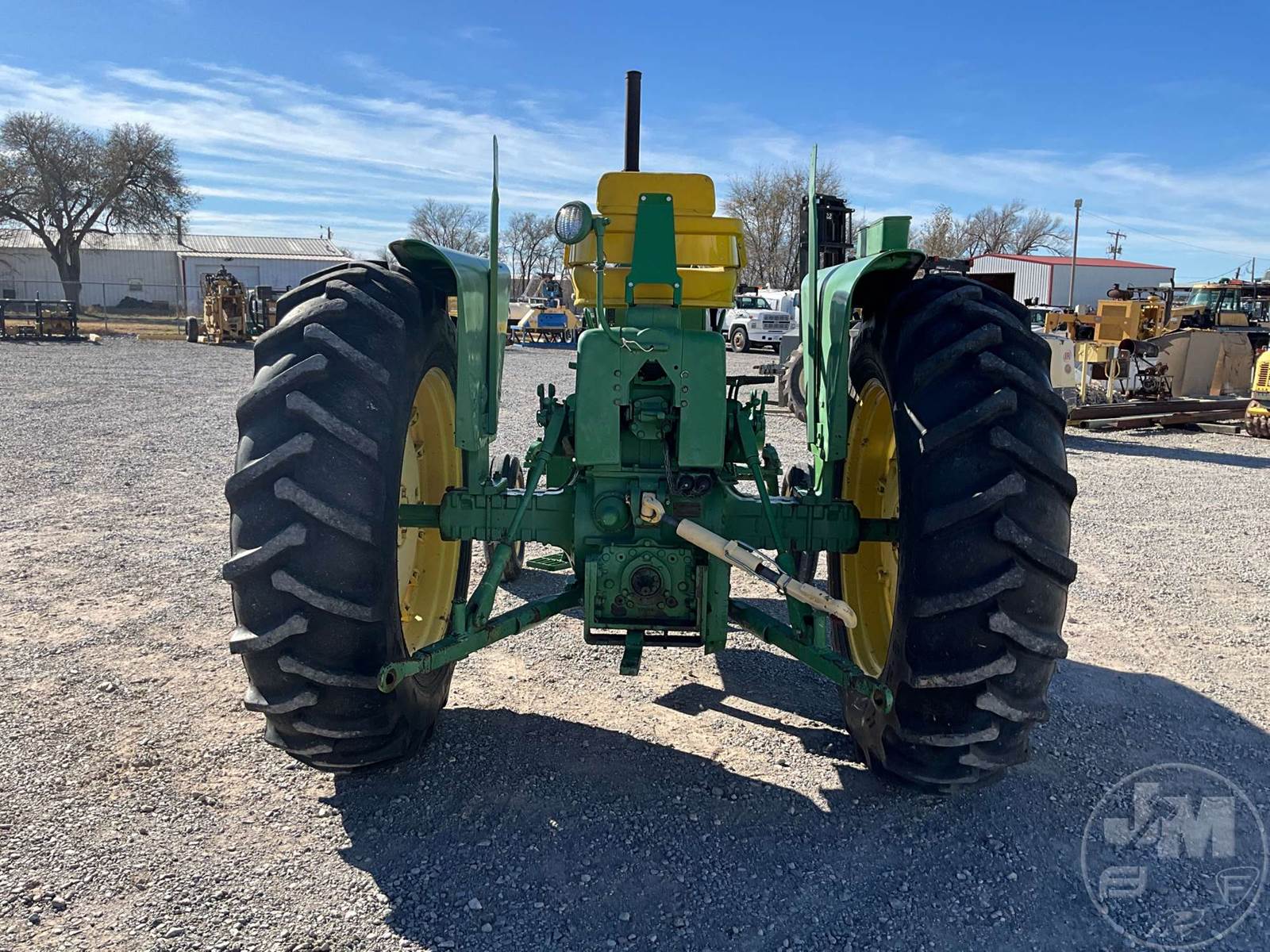 JOHN DEERE TRACTOR, OPEN STATION, 4 CYL, GAS ENGINE, 3 PT HITCH, DRAWBAR, 540 RPM PTO, REAR REMOTE, 16.9-38 REAR TIRES, 6.00-16 FRONT TIRES, HOUR METER READS: 496