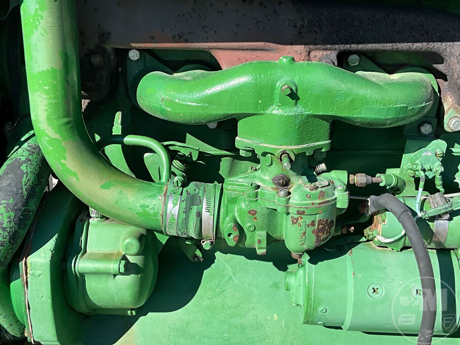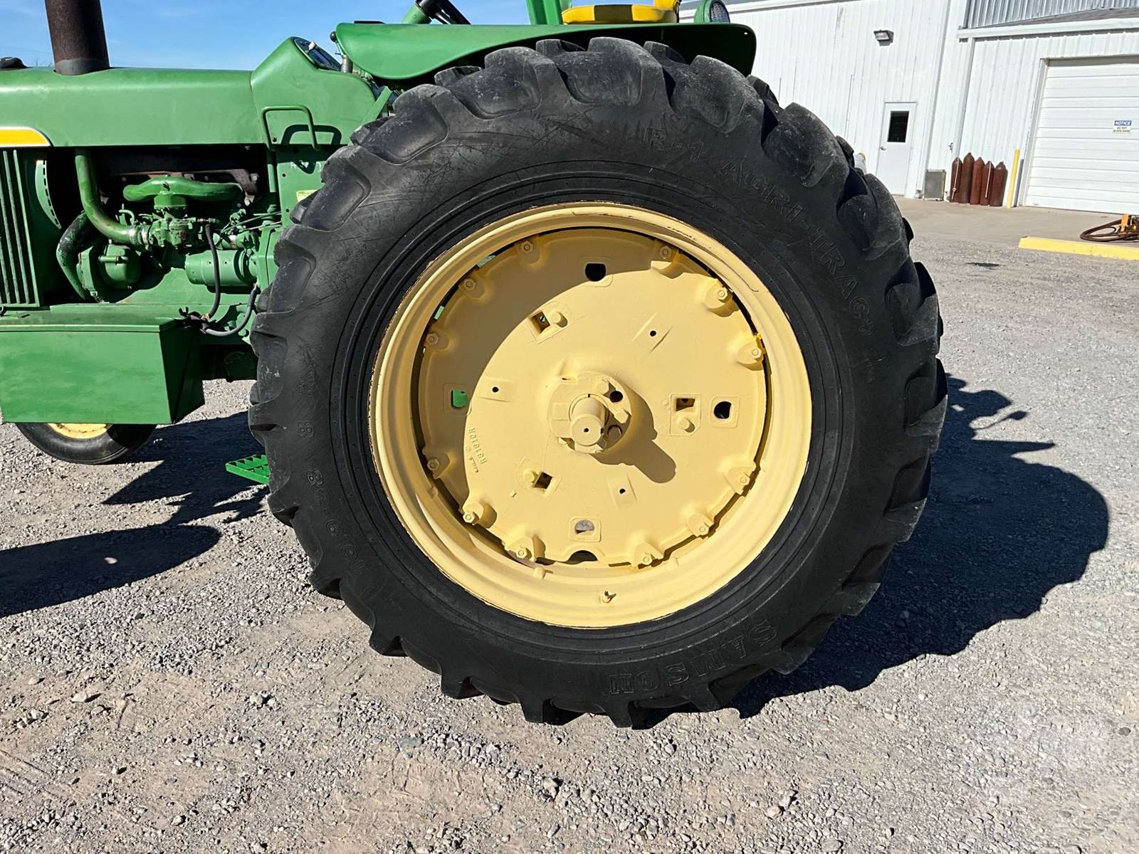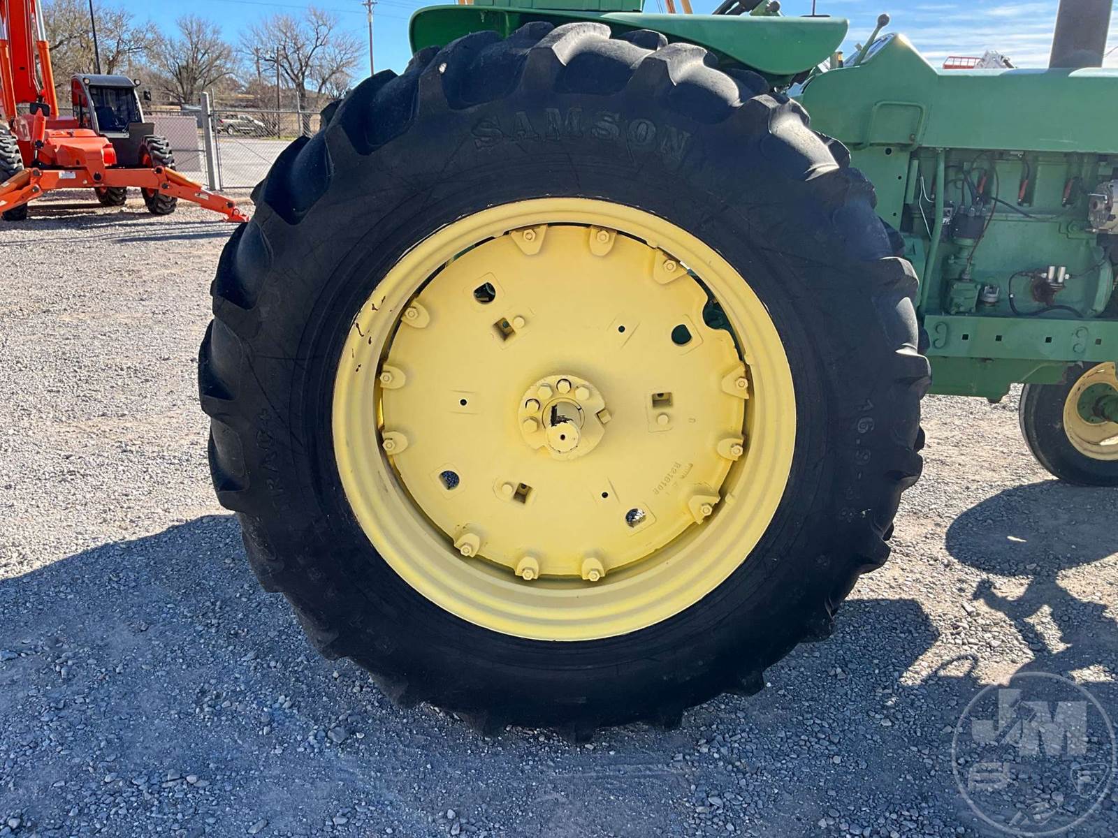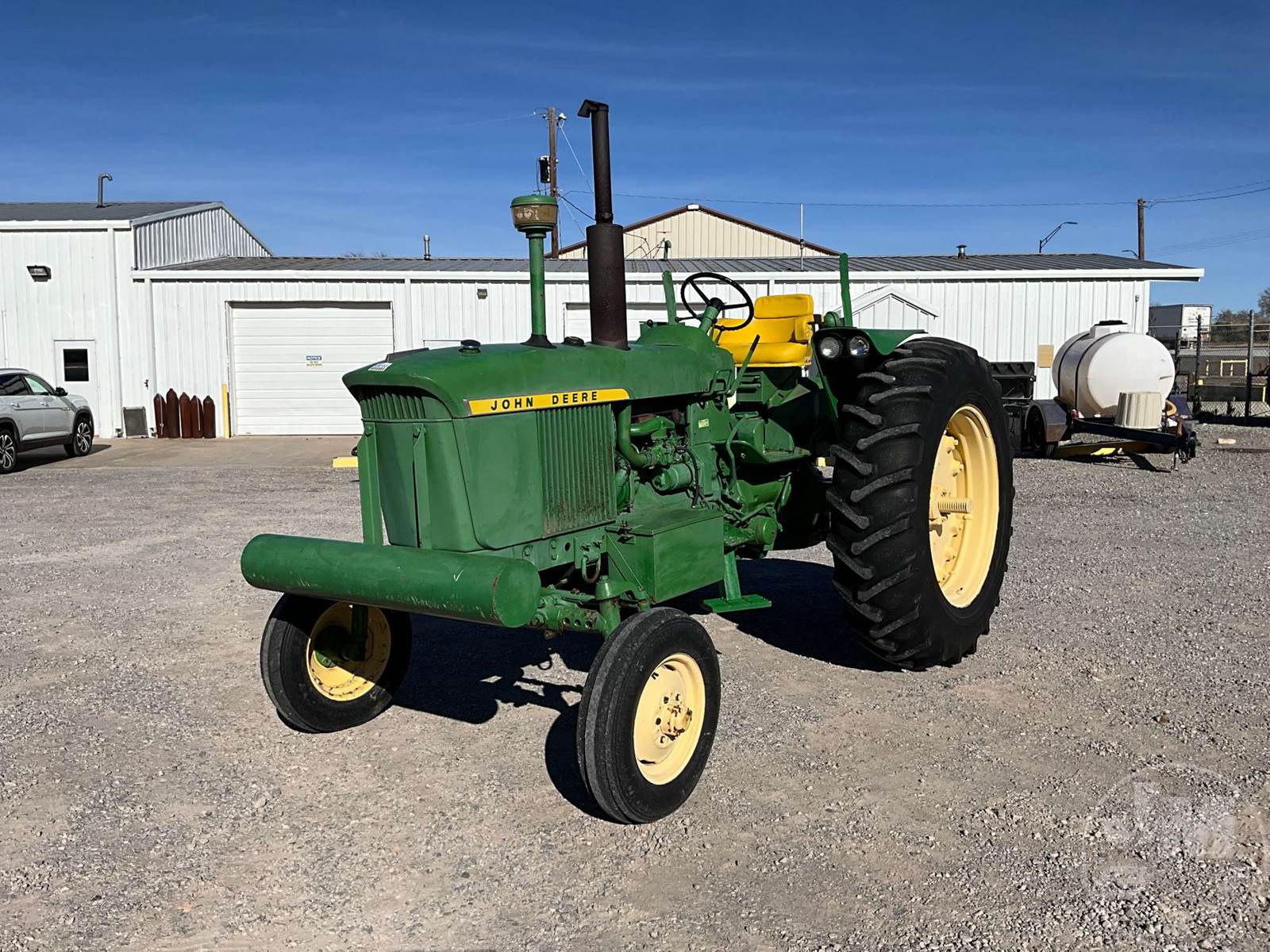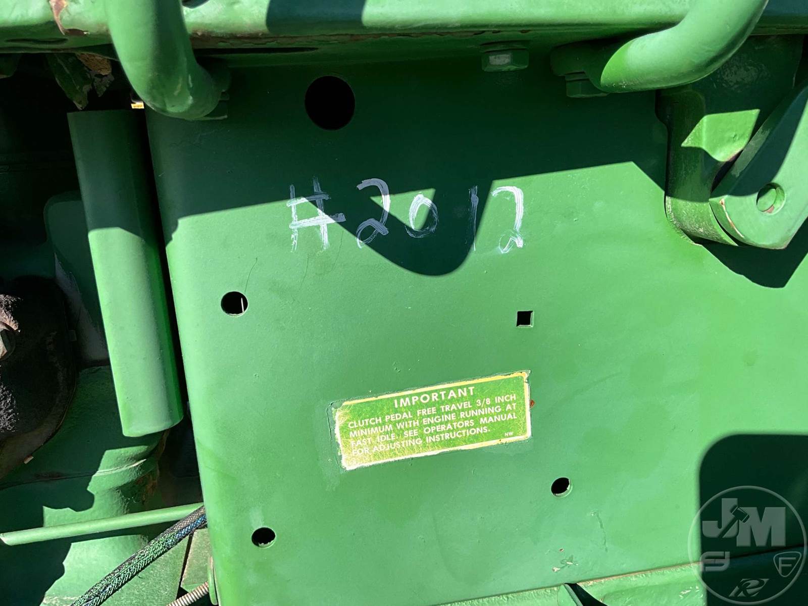 JOHN DEERE TRACTOR, OPEN STATION, 4 CYL, GAS ENGINE, 3 PT HITCH, DRAWBAR, 540 RPM PTO, REAR REMOTE, 16.9-38 REAR TIRES, 6.00-16 FRONT TIRES, HOUR METER READS: 496