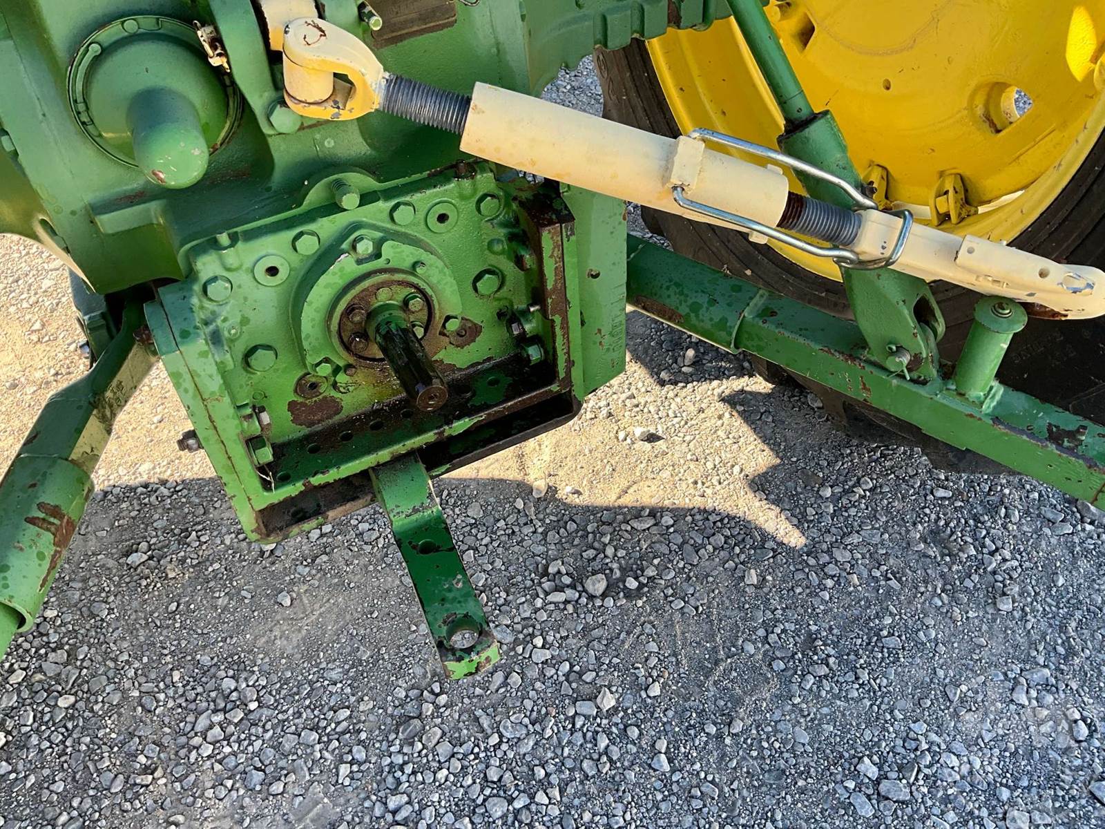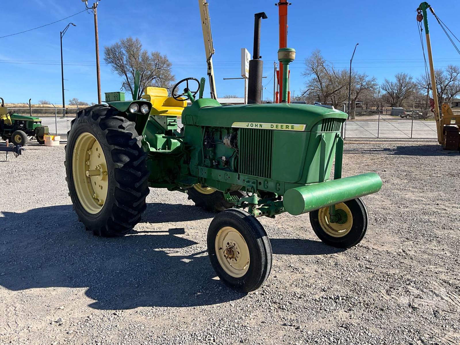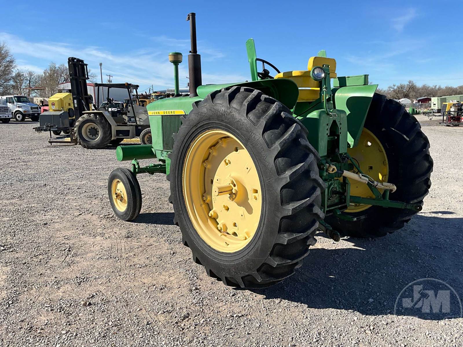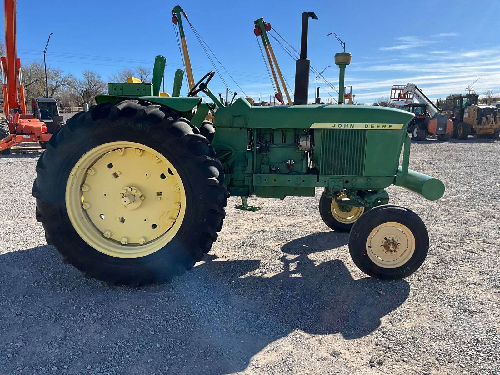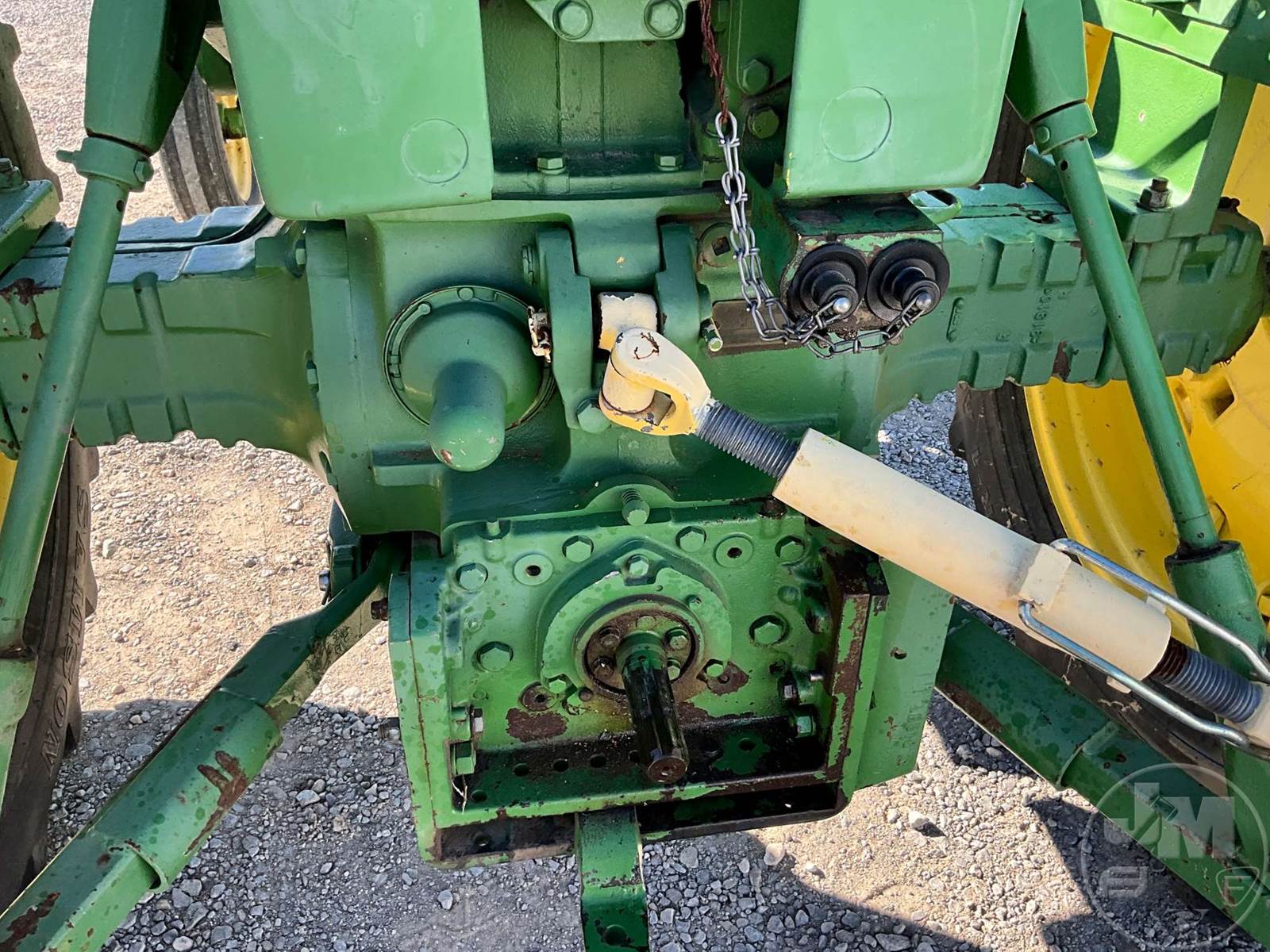 JOHN DEERE TRACTOR, OPEN STATION, 4 CYL, GAS ENGINE, 3 PT HITCH, DRAWBAR, 540 RPM PTO, REAR REMOTE, 16.9-38 REAR TIRES, 6.00-16 FRONT TIRES, HOUR METER READS: 496