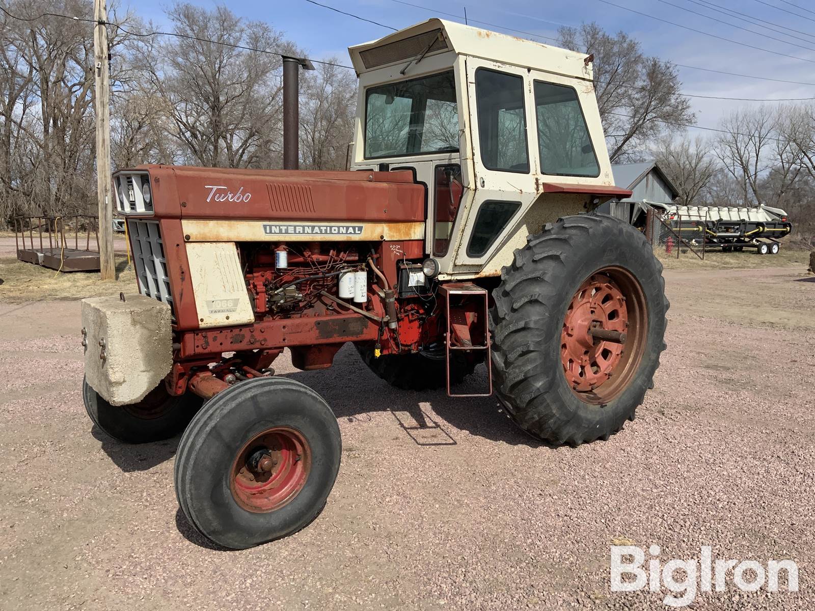 1971 International 1066 2WD Tractor, 5,977 hrs showing, 140 hp, 6-Cyl Turbo Diesel Engine, 16-Speed Two-Speed Power Shift Transmission with Hi-Lo, 540 & 1000 PTO, 3-Pt, 10.00-16 Front Tires, 18.4-38 Rear Tires, 2 Hydraulics, Block Heater, Concrete Front Weight, SN: 2610159U007771