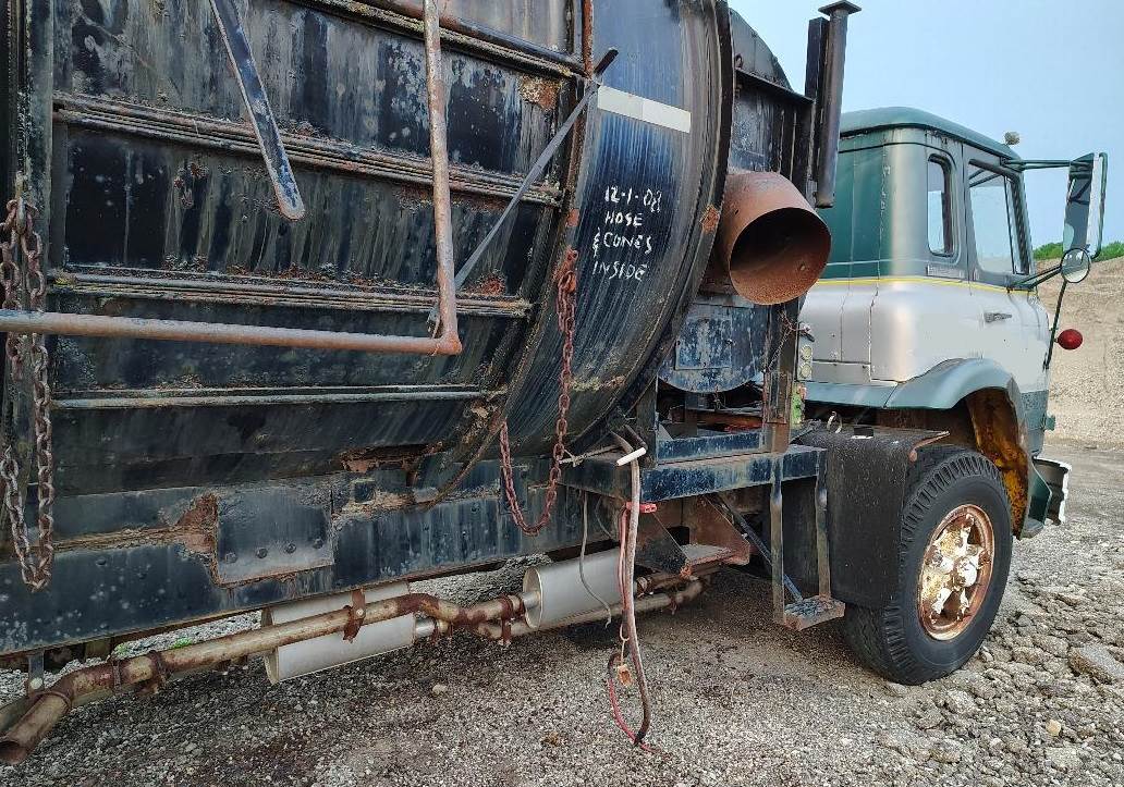1971 International Cabover Leaf Vacuum Truck, Single Axle, V8 Gasoline Engine, 234 HP, Automatic Transmission, GVWR 35,000#, 192 Inch Wheelbase, Vacuum Unit Is Powered By a Continental Real Seal 4 Cylinder Gasoline Engine, 43 HP