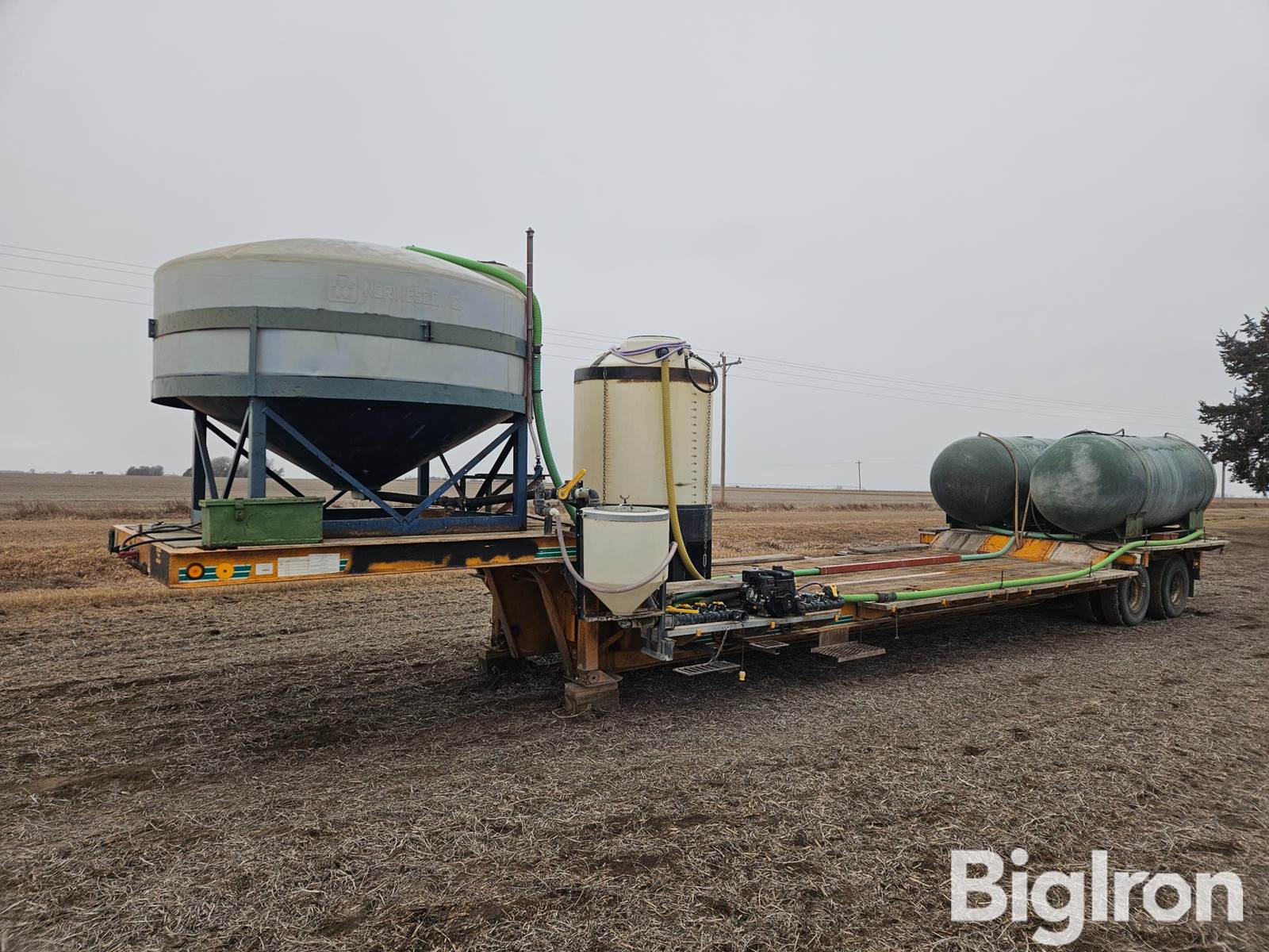 1974 Hyster T/A 42' Drop deck Nurse Trailer, Air Suspension, Air Brakes, King Pin Hitch, Jack, 11R17.5 Tires, (2) 1000-Gallon Fiberglass Water Tanks, (1) 1250-Gallon Poly Water Tank, (1) 500-Gallon Poly Tank Used As Mixing Tank, (1) 35 Gallon Induction Cone, Briggs & Stratton XR 5.5 HP Gas Engine And Pump, VIN: 17893
