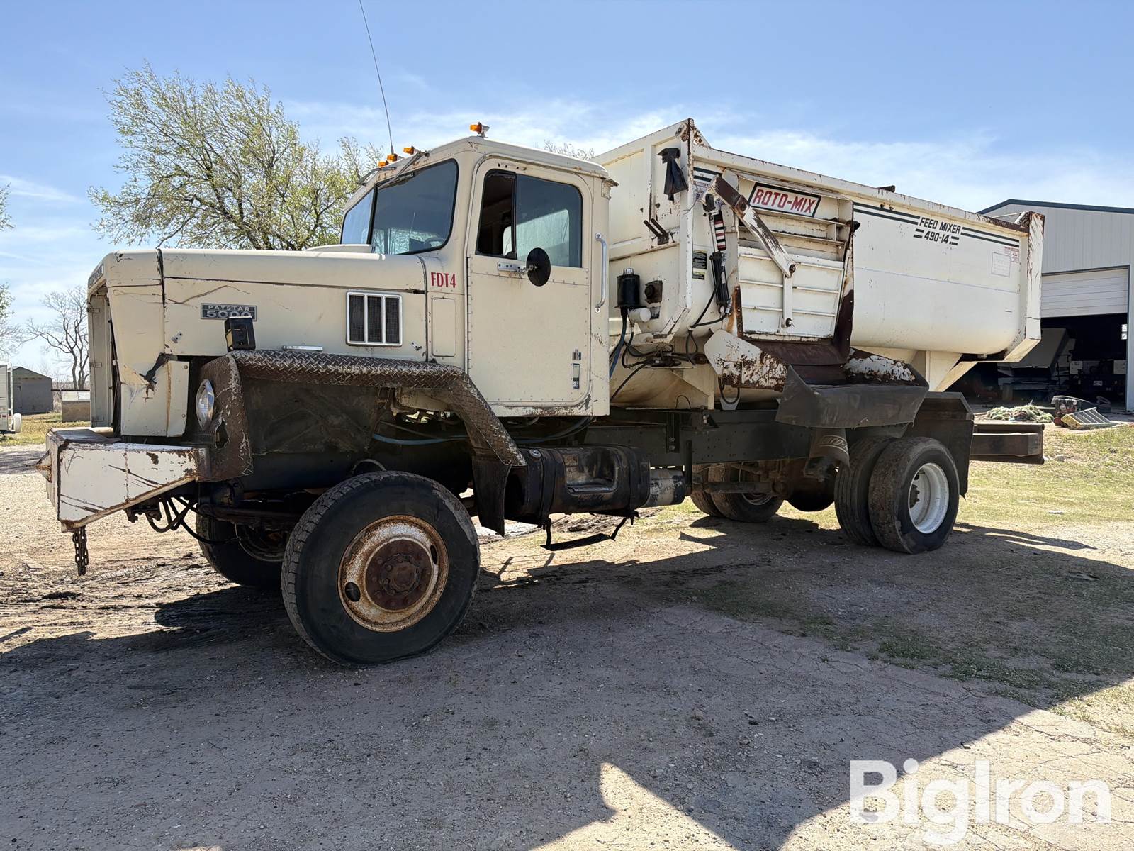 1974 International Paystar 5000 Feed Truck, 2,826 Hrs Showing, 89,733 miles showing, Title Will Be Marked Miles Exempt, Caterpillar 3208 10.4L, Diesel, Water Cooled Engine, 2 Fuel Tanks, 100 Gal Fuel Capacity, Automatic Transmission, 4Wd, 164" Wheel Base, 43,000 Gross Vehicle Wt. Rating (GVWR), 2 Axles, Spring Suspension, 295/75R22.5 Front Tires, 295/75R22.5 Rear Tires, Duals, Steel Wheels, Roto-Mix, 490-14, NOTE: Title Carries Rebuilt Brand, VIN: A8055DGB24535