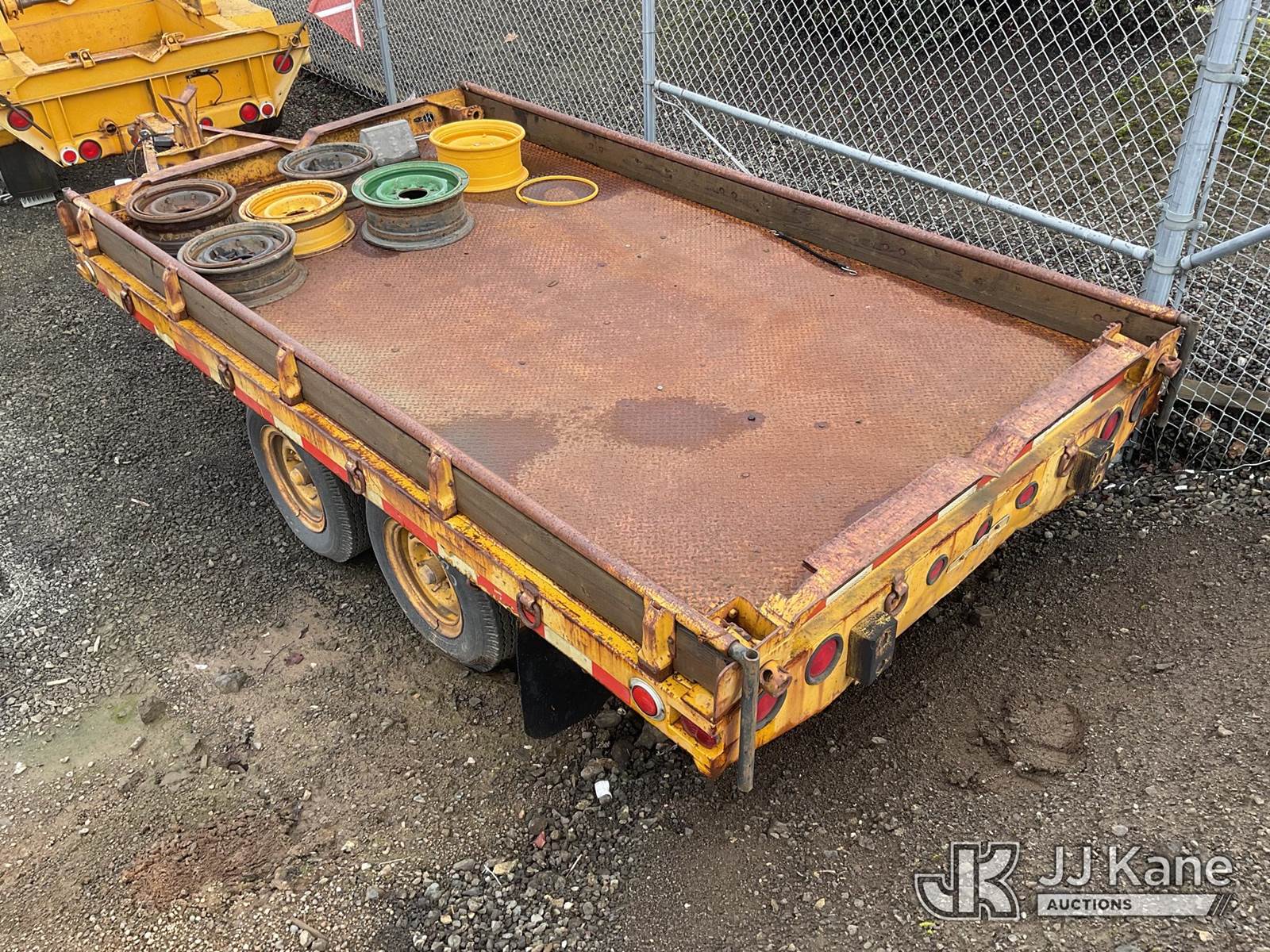 1975 Pioneer T/A Tagalong Flatbed Trailer, with 9ft overall length, 12ftx6ft 6in level deck, This is a Titled Item NOTE: This unit is being sold AS IS/WHERE IS via Timed Auction and is located in Roseburg, OR. For more information & removal arrangements please contact Joseph Hull @ (801) 386-2131. (Buyer is responsible for removal. Assistance by consignor or JJ Kane Auctions is not assured.)