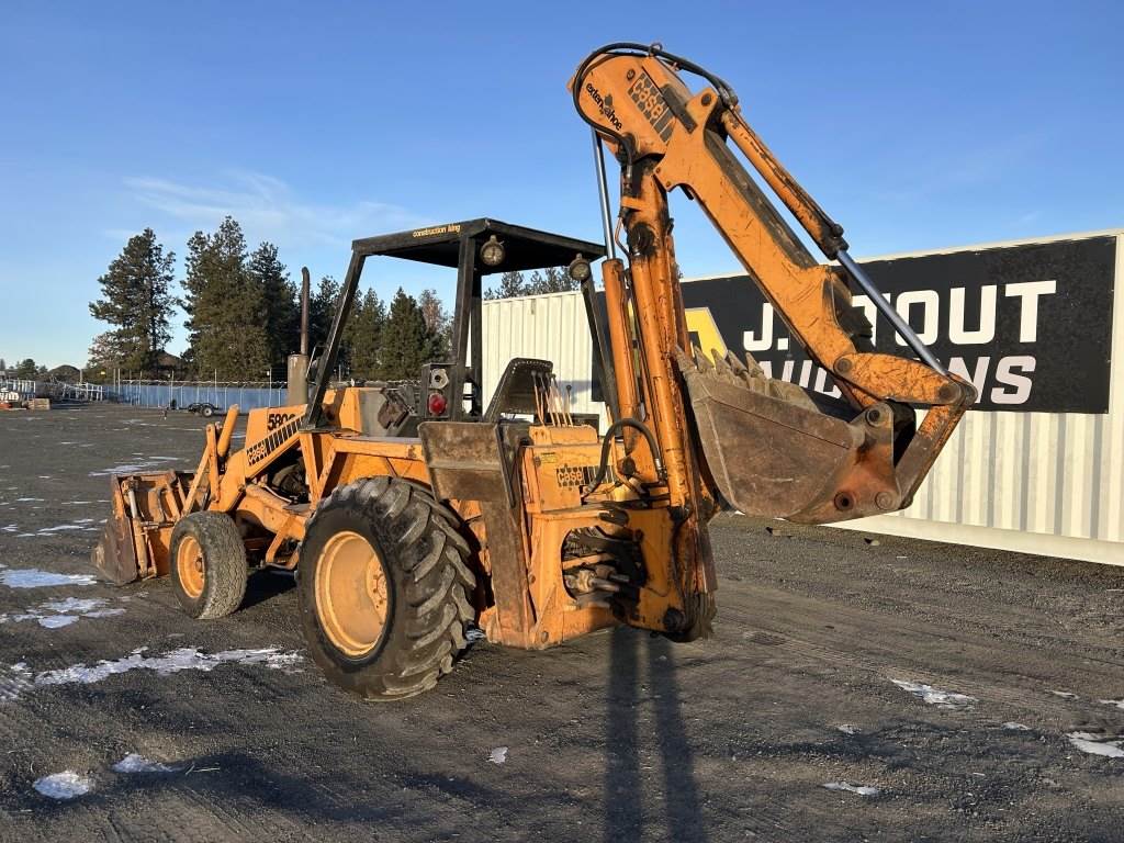 Location: Spokane WA ***End-User Consignment*** S/N: 8953119 Engine: Case 3.4L 4cyl Diesel 6' GP bucket, OROPS, canopy, 2 outriggers, Extendahoe w/29" dig bucket, 11L-16SL front tires, 17.5L-24 rear tires. Hours: 5,498