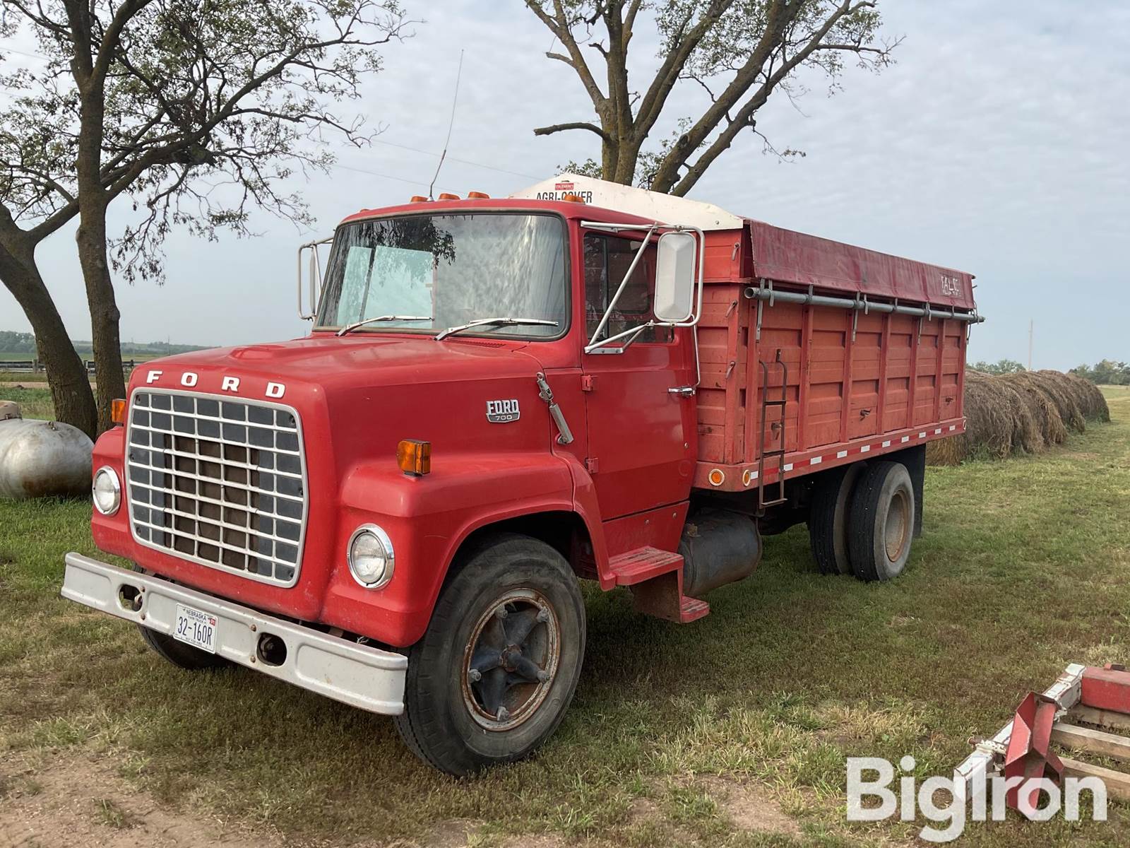 1976 Ford LN700 S/A Grain Truck. 49.215 Miles Showing. Title Will Be Marked Miles Exempt. V8 361 HD Gasoline Engine. 5-Speed Manual Transmission W/2-Speed Axle. Heater. Radio. 16' Knapheide All Steel Box & Hoist. Rear Grain Gates. Agri-Cover Manual Roll Tarp. 49.215 Actual Miles. Rear Tow Hitch. 9.00-20 Tires. VIN: N70EVA63078