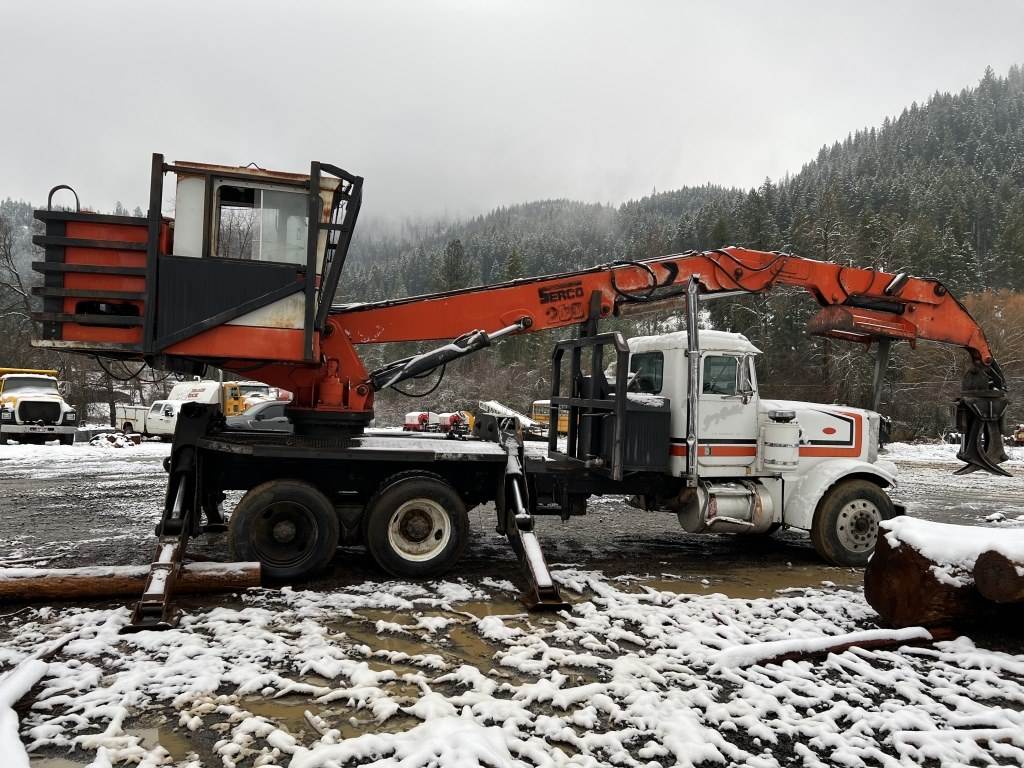 Location: St. Maries ID ***End-User Consignment*** VIN: 81684P Engine: Cummins Diesel Transmission: Manual Serco 200 log loader mounted on 1976 Peterbilt 359 cab & chassis, log grapple, heel rack, operator's cab, 6,513 indicated log loader hours, CB radio, diesel auxiliary engine, 4 outriggers, pintle hitch, trailer air supply, air brakes, 8,135 indicated truck engine hours, diff lock, 11R24.5 front tires, 285/75R24.5 rear tires.*This item is located in St. Maries, Idaho and can be viewed by appointment only. To schedule a preview or to ask questions about this item call 888-230-8840 * Miles: 538,552 indicated