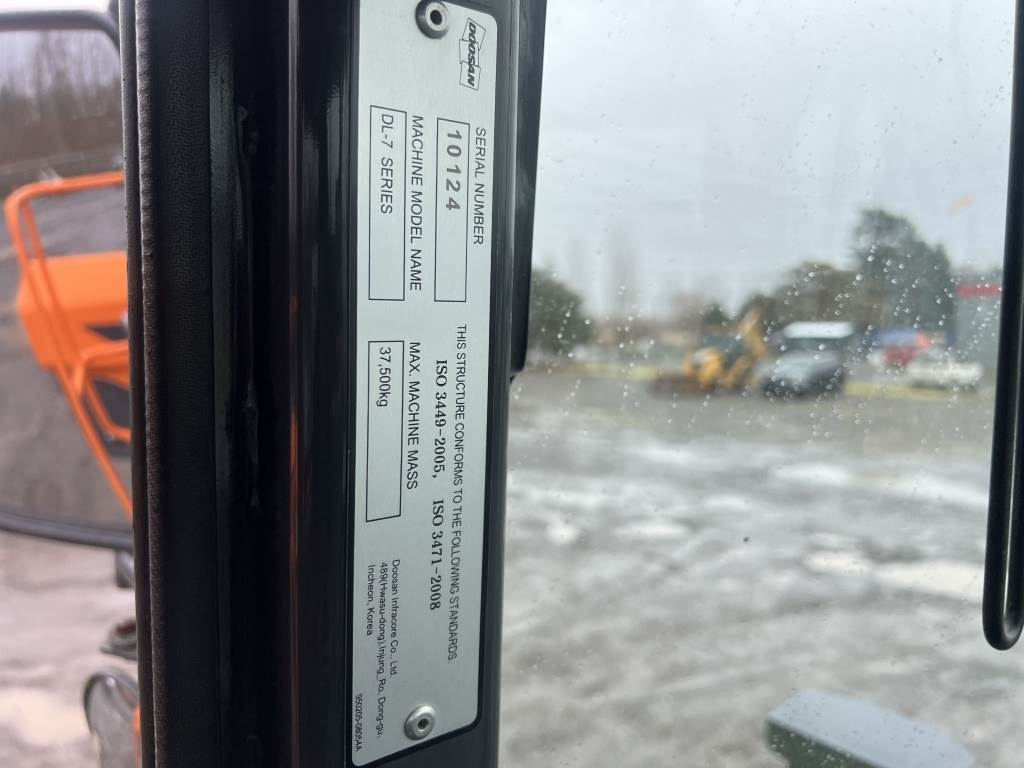 Location: Washougal WA ***End-User Consignment*** S/N: DWGCWLEDKM1010124 Engine: Develon DL08 7.6L 6cyl Diesel Transmission: Powershift 8' GP Bucket, EROPS, cab, work lights, rearview camera, push button start, LoadRite scale, heated mirrors, A/C, AM/FM/Bluetooth, 23.5R25 tires. Hours: 271