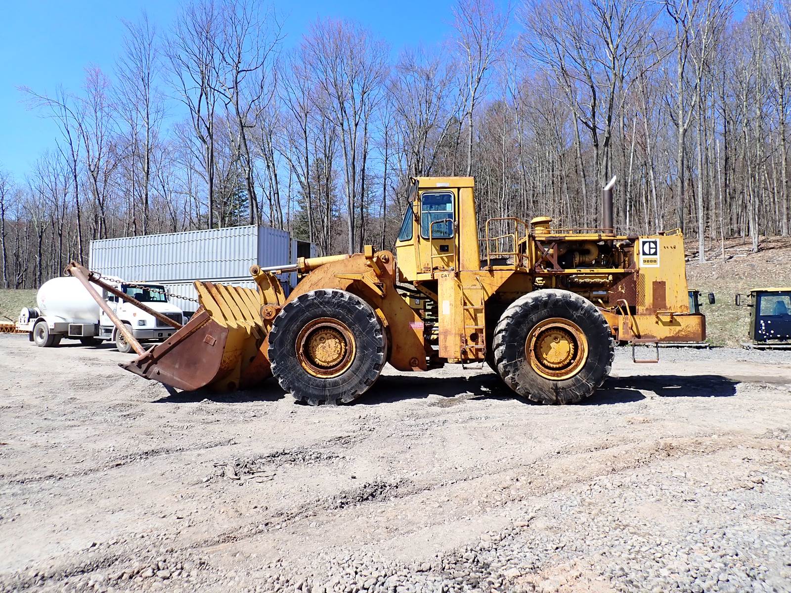 1977 Caterpillar 988B wheel loader, EROPS, heater, 2 stick control, CAT 3408 DITA turbo diesel engine, 5053 HOURS ON A REMAN POWER AND DRIVETRAIN, 8 yard GP bucket w/ teeth. STRONG RUNNING AND OPERATING LOADER. ONLY 5000 HOURS ON A LATE MODEL CAT FACTORY REPLACEMENT ENGINE AND TRANSMISSION, INSTALLED IN EARLY 2000'S AND MACHINE WAS USED FOR BACKUP SERVICE ONLY, EXCELLENT MECHANICAL CONDITION, COME CHECK HER OUT !