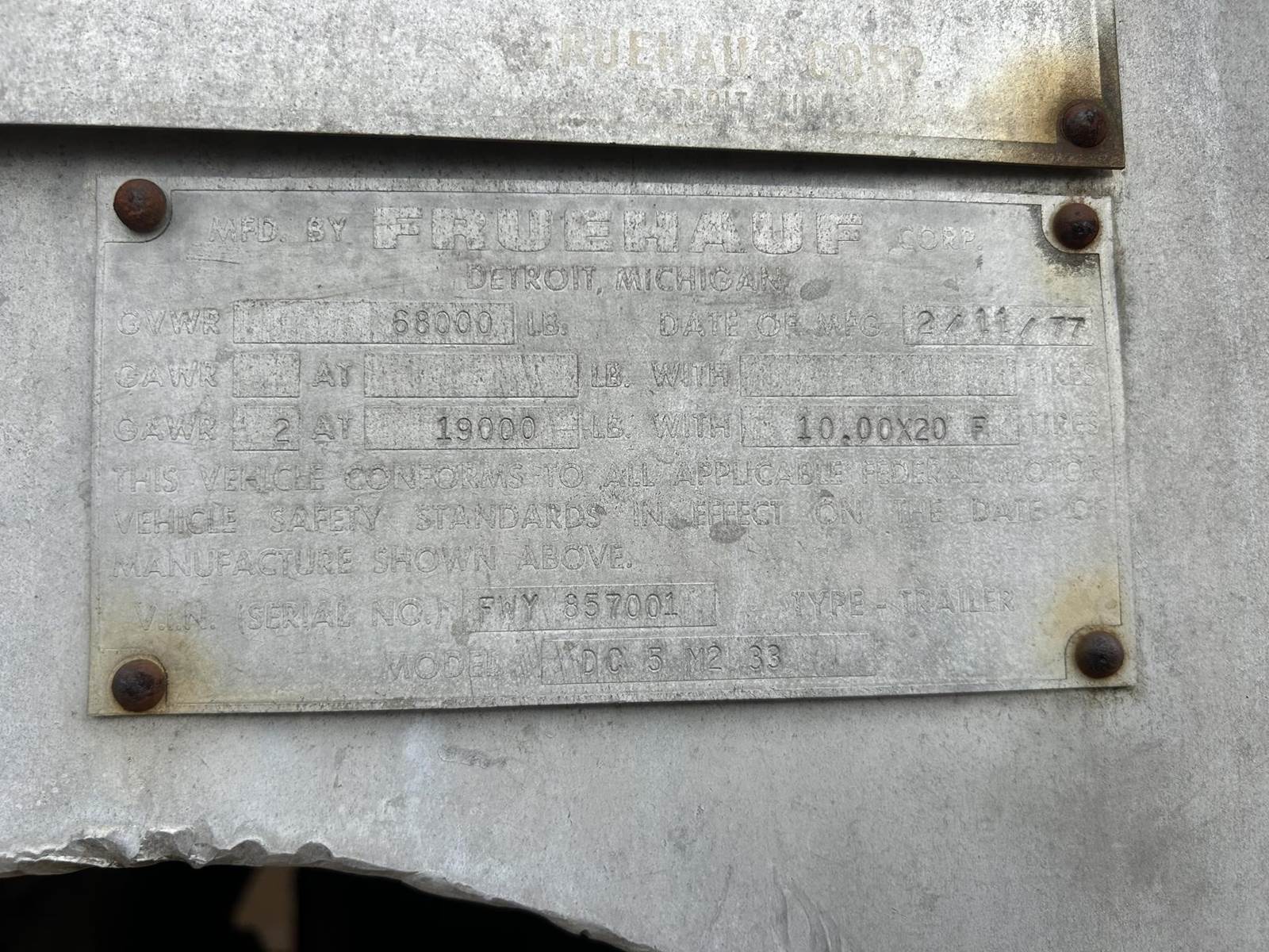 1977 Fruehauf 33 ft End Dump Trailer - Tandem Axle, Aluminum, Center Point
