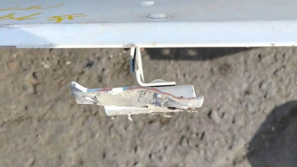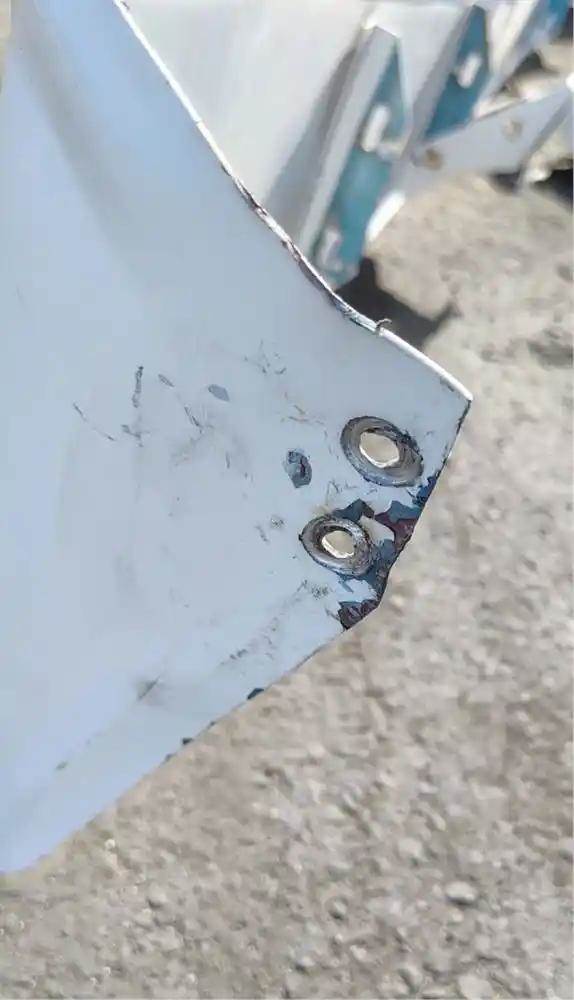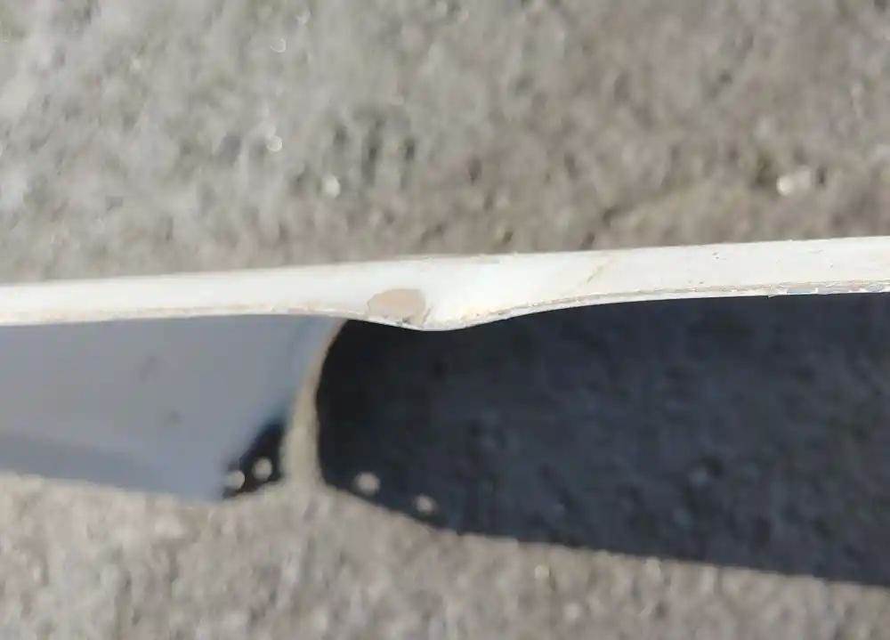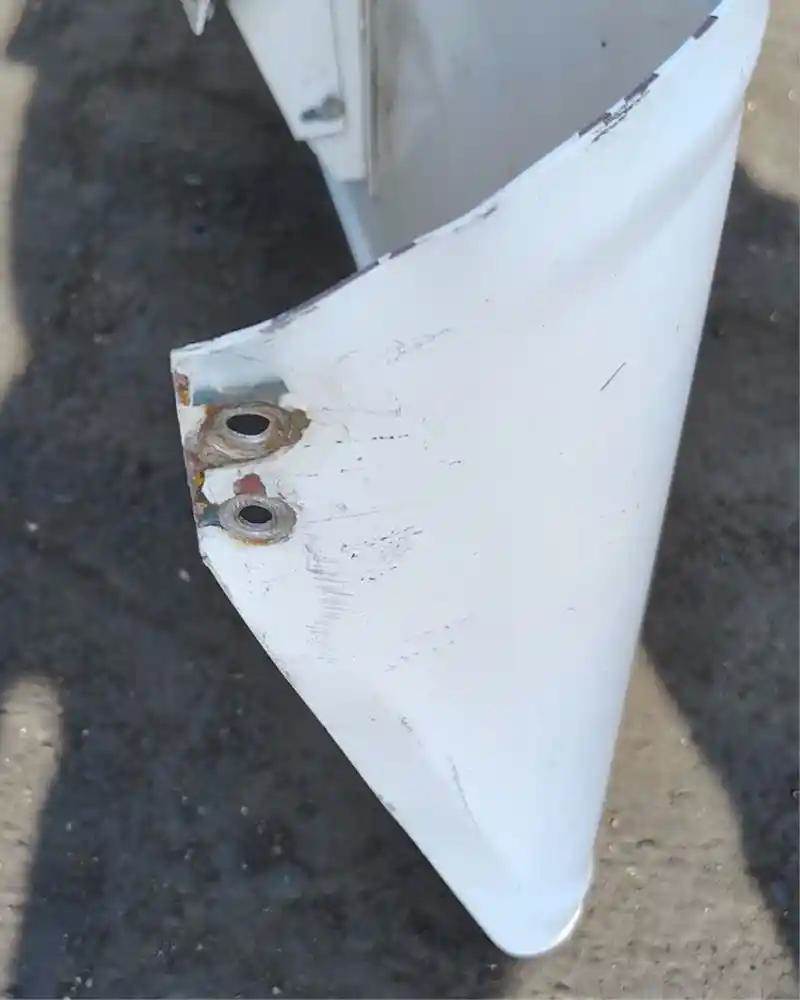 1978 Freightliner FL Cabover Exterior Sun Visor. No Cracks, Slight Dent On Edge, Exposed Metal From Rivet Removal, One Mount Bent. Repairable For Reuse.