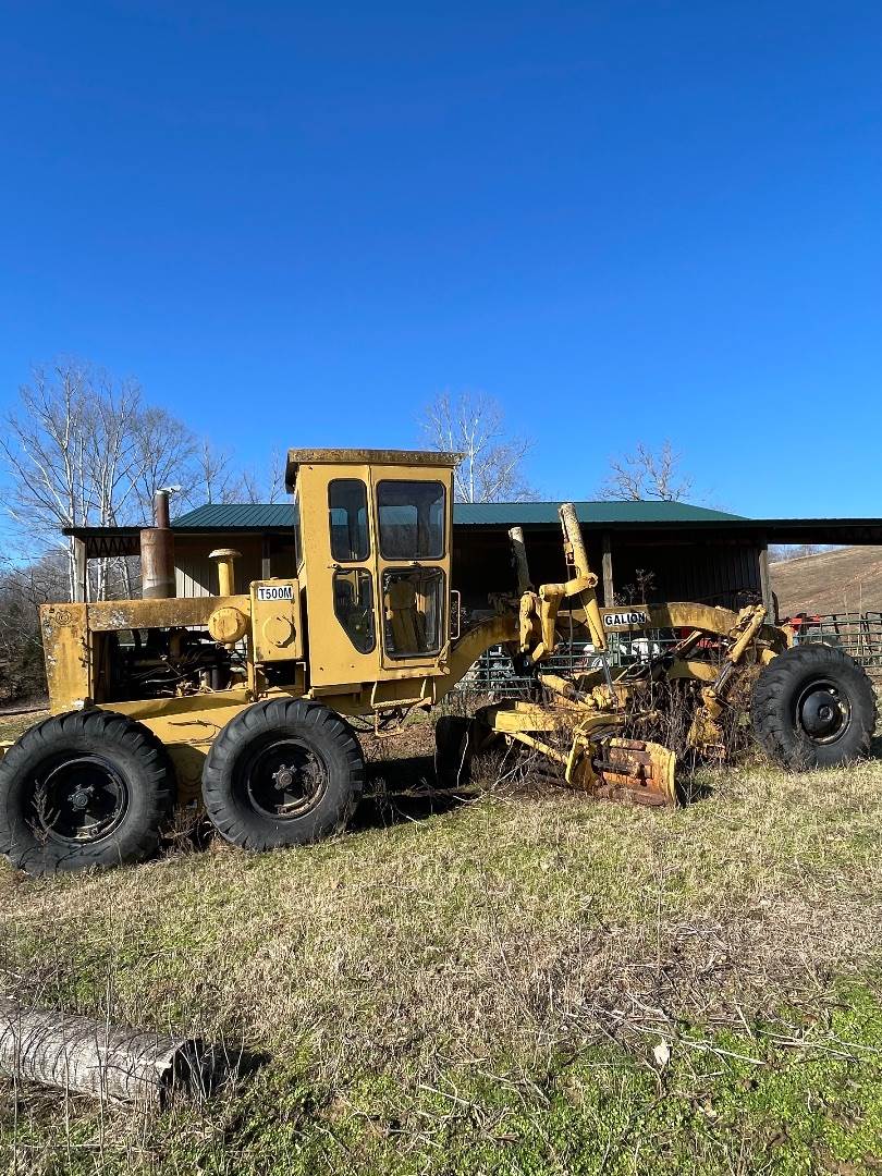 GALION T500M MOTOR GRADER, Unknown year and hours (believed to be a 1978) Enclosed Cab, Heater, Push Block, 12' Mold Board, Side Shift, 200 HP International diesel engine4 Forward, 4 reverse manual transmission, 29000 lb operating weight,