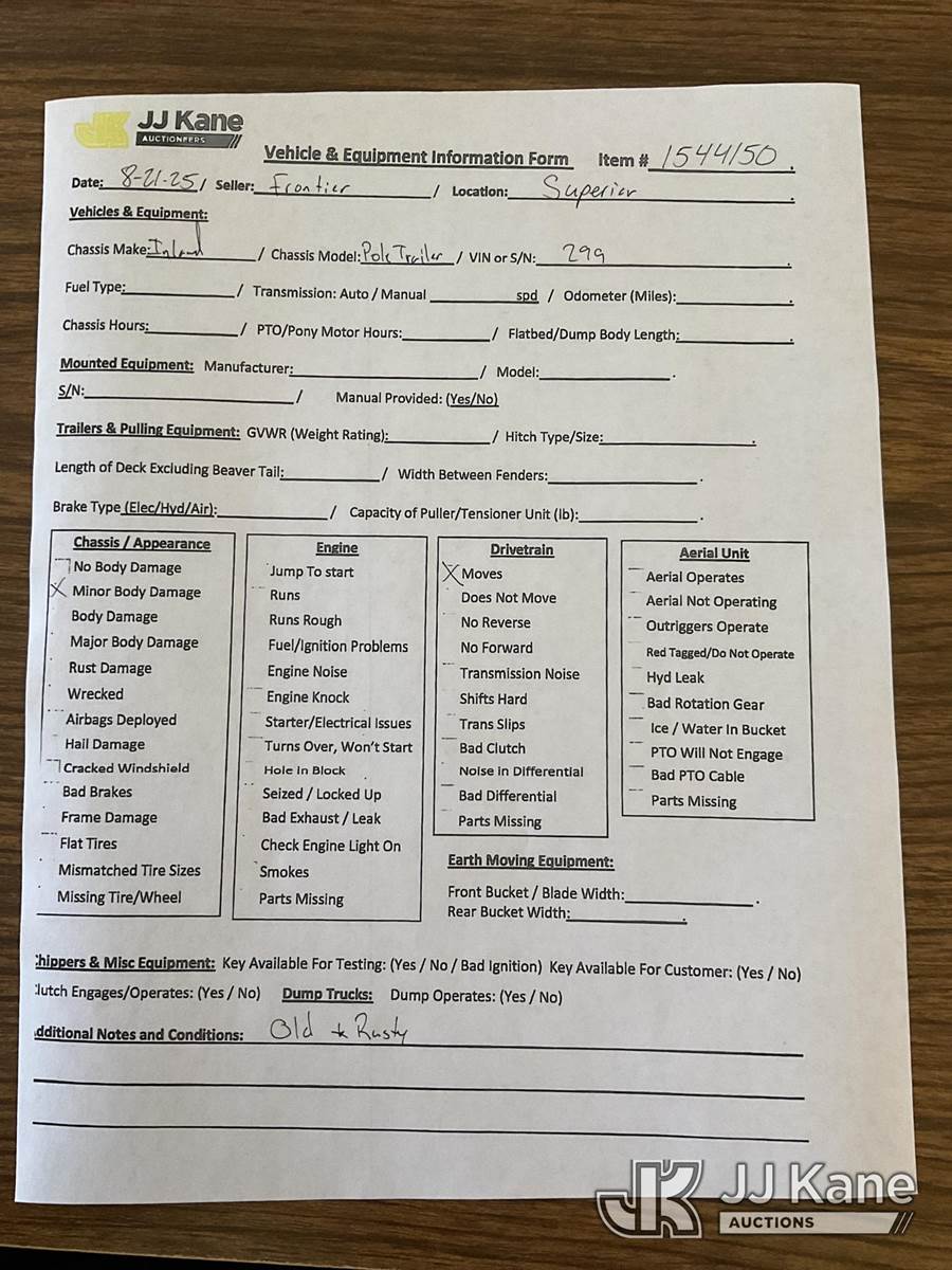 1978 Inland Pole Trailer, This is a Titled Item NOTE: This unit is being sold AS IS/WHERE IS via Timed Auction and is located in Superior, WI. Inspection & preview days for this unit are by appointment only; please contact us at contact@jjkane.com or 84-Go-JJKane for more details. (Buyer is responsible for removal. Assistance by consignor or JJ Kane Auctioneers is not assured.)