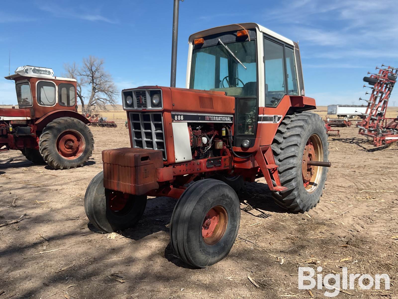 1979 International 886 2WD Tractor, 2,495 hrs showing, 85 hp, IHC 5.9L 6-Cyl, Diesel, International, Partial Powershift, 16 Forward Speeds, 8 Reverse Speeds, Independent PTO, 540/Small 1000 PTO, (2) Pair Auxiliary Hydraulics, 11.00-16 Front Tires, Firestone 18.4R38 Rear Tires, 3 Point Hitch, (2) Pair Rear Weights, Heater, AC, Radio, (12) Suitcase Weights, Category II Quick Hitch, SN: 2490206U15089