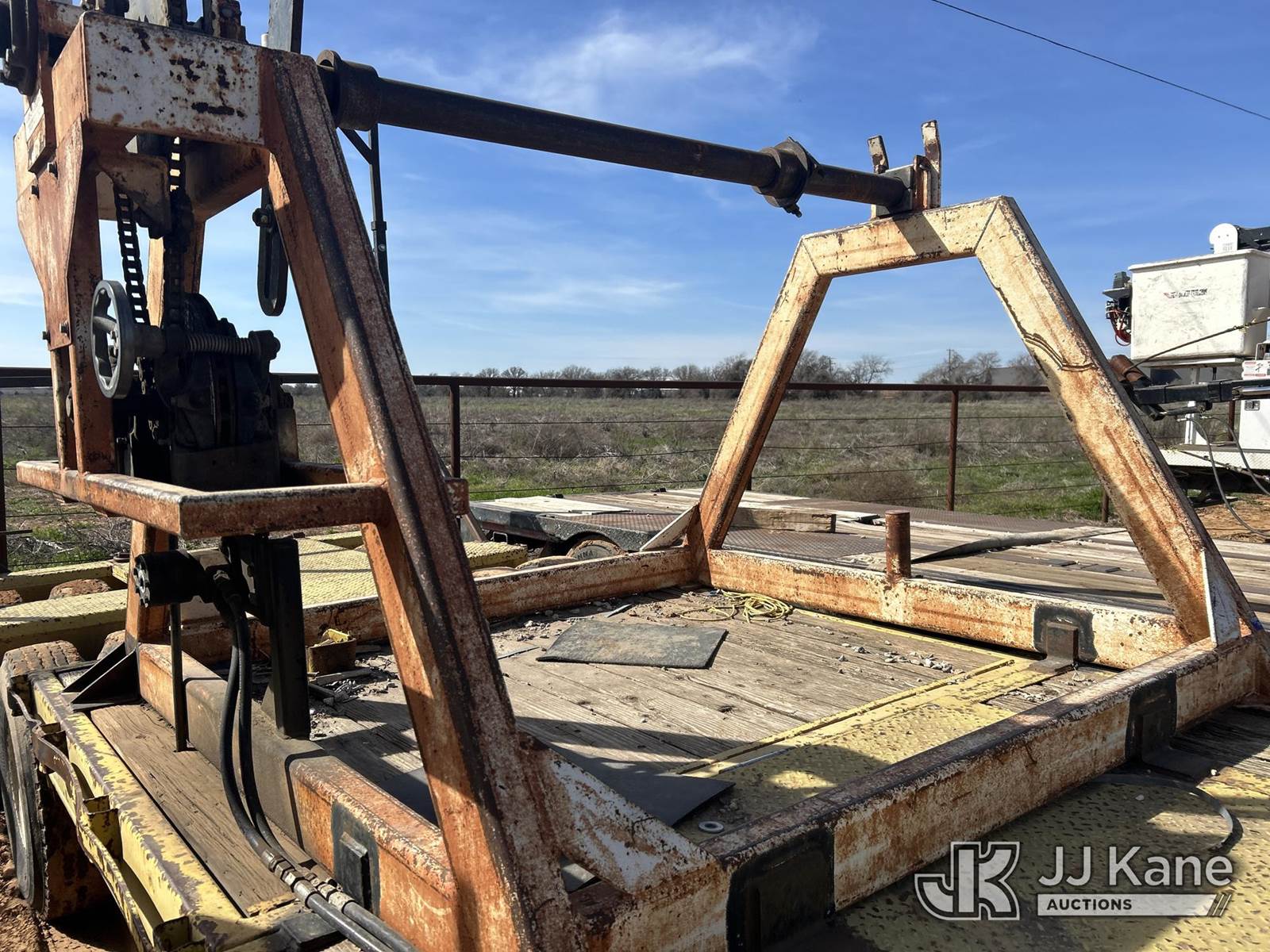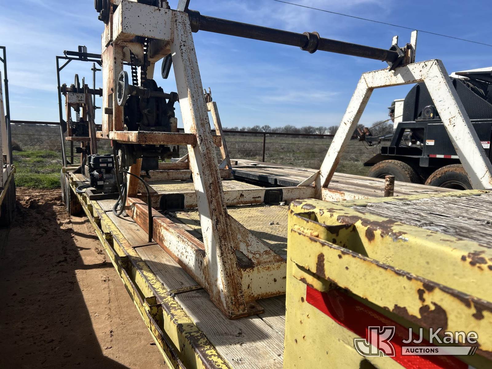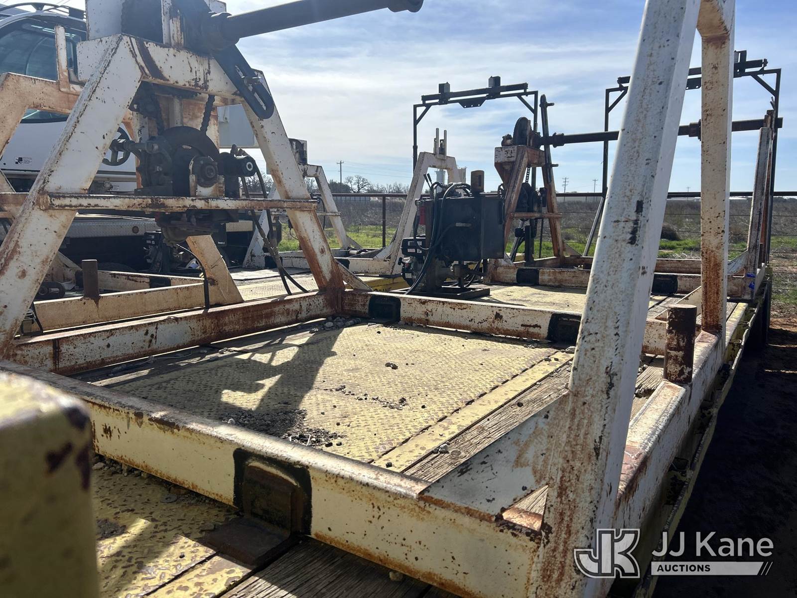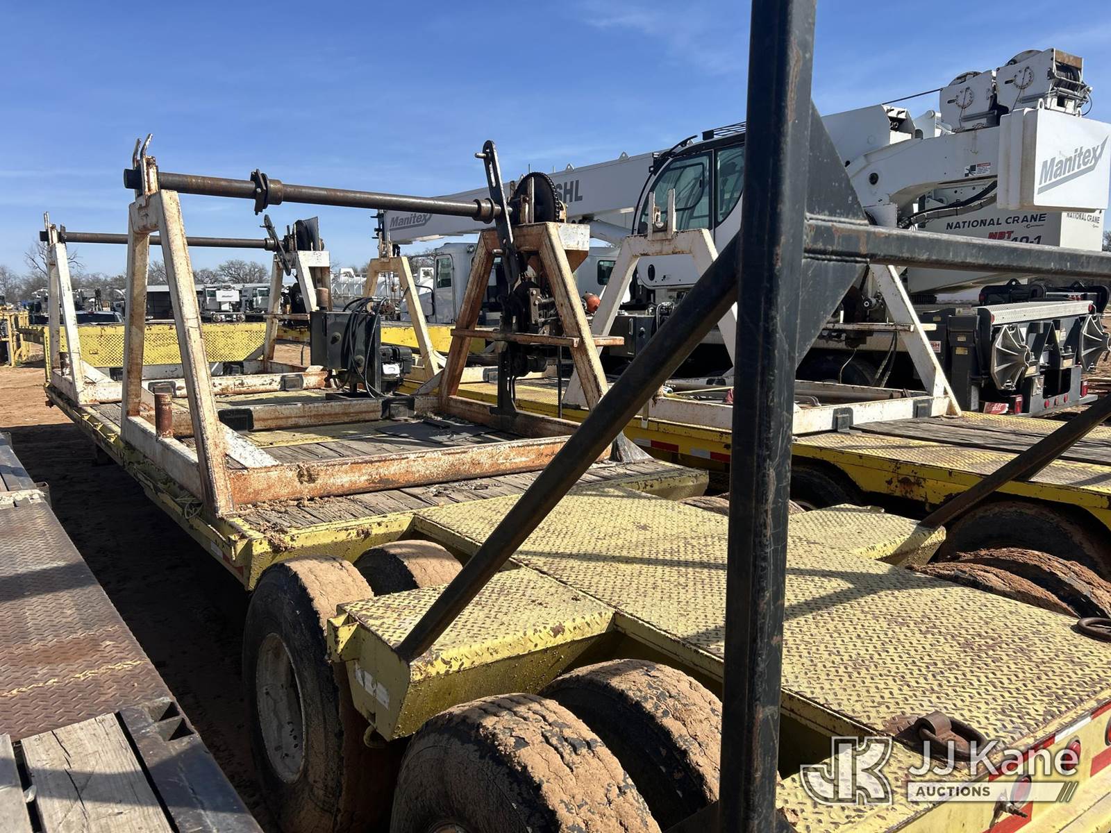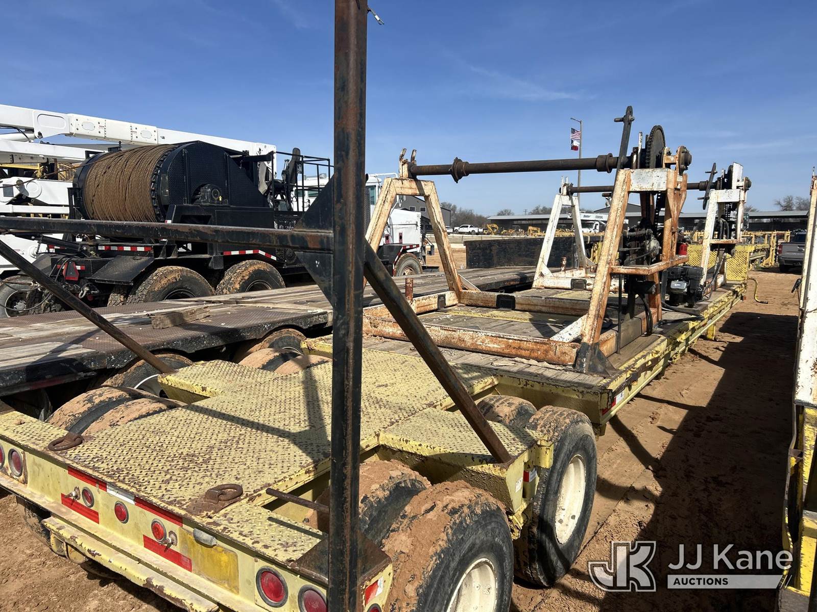 1979 MuvAll T/A Drop-Deck Equipment Trailer, with 2 reel stands w/gas powered re-winders and fairleads, This is a Titled Item NOTE: This unit is being sold AS IS/WHERE IS via Timed Auction and is located in Stephenville, TX. (Buyer is responsible for removal. Assistance by consignor or JJ Kane Auctions is not assured.)