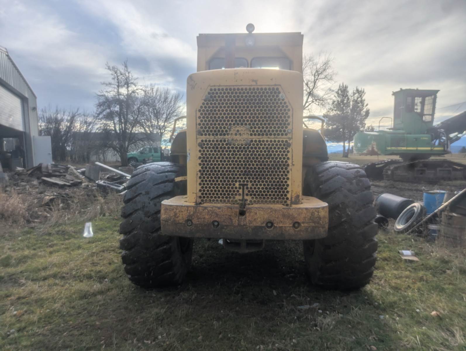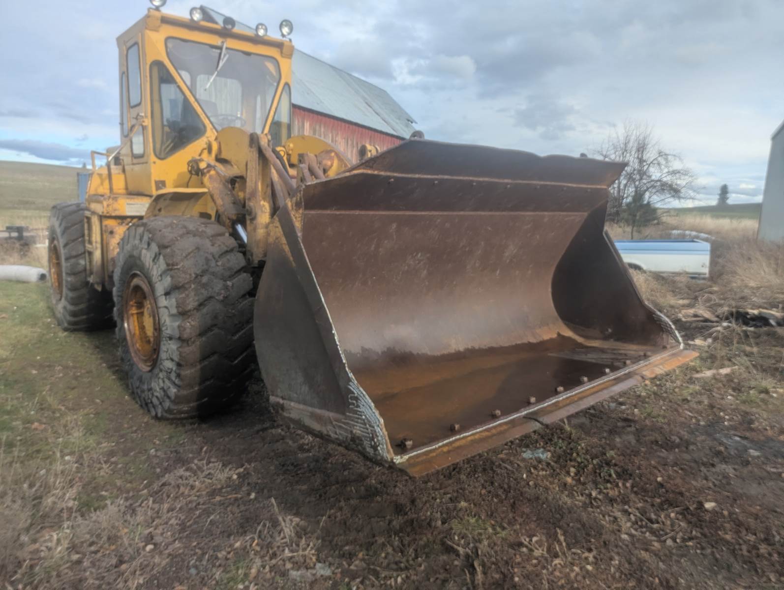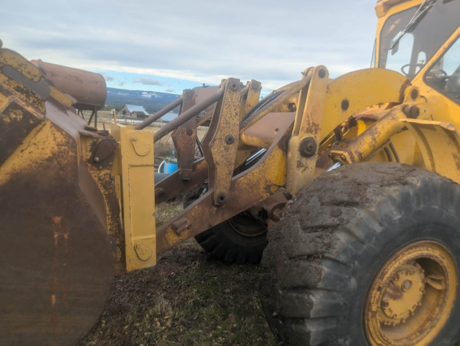 1980 Cat 966c wheel loader with bucket and log forks. Tires are in good shape. $27,500