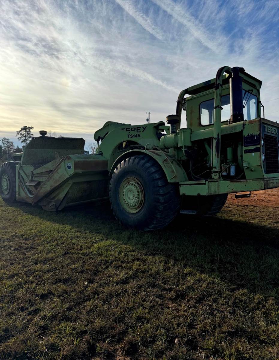 TEREX TS-14B SCRAPER APPROX YEAR 1980 REBUILT FRONT ENGINE WITH APPROXIMATELY 500 HOURS STRONG TRANSMISSIONS ALL TIRES ARE IN GOOD SHAPE SOLID MACHINE READY TO WORK SELLING AS IS