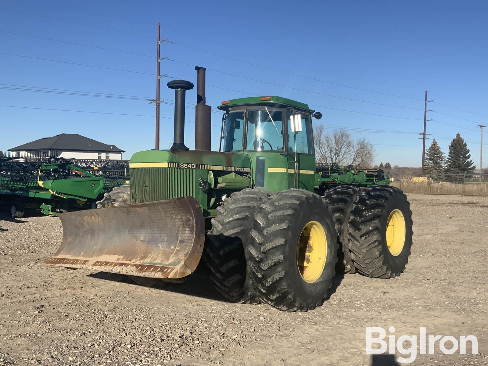 1981 John Deere 8640 4WD Tractor w/Blade, 5,414 hrs showing, 275 hp, Seller Asset Number Su007702, John Deere 10.1L Diesel Engine, 16-Speed Quad Range Transmission, Engine Heater, Air/Heat/Radio, 14’ Blade, 2 SCV, Swinging Drawbar, 24.5-32 Duals, NOTE: Needs batteries, SN: 8640H 005976RW