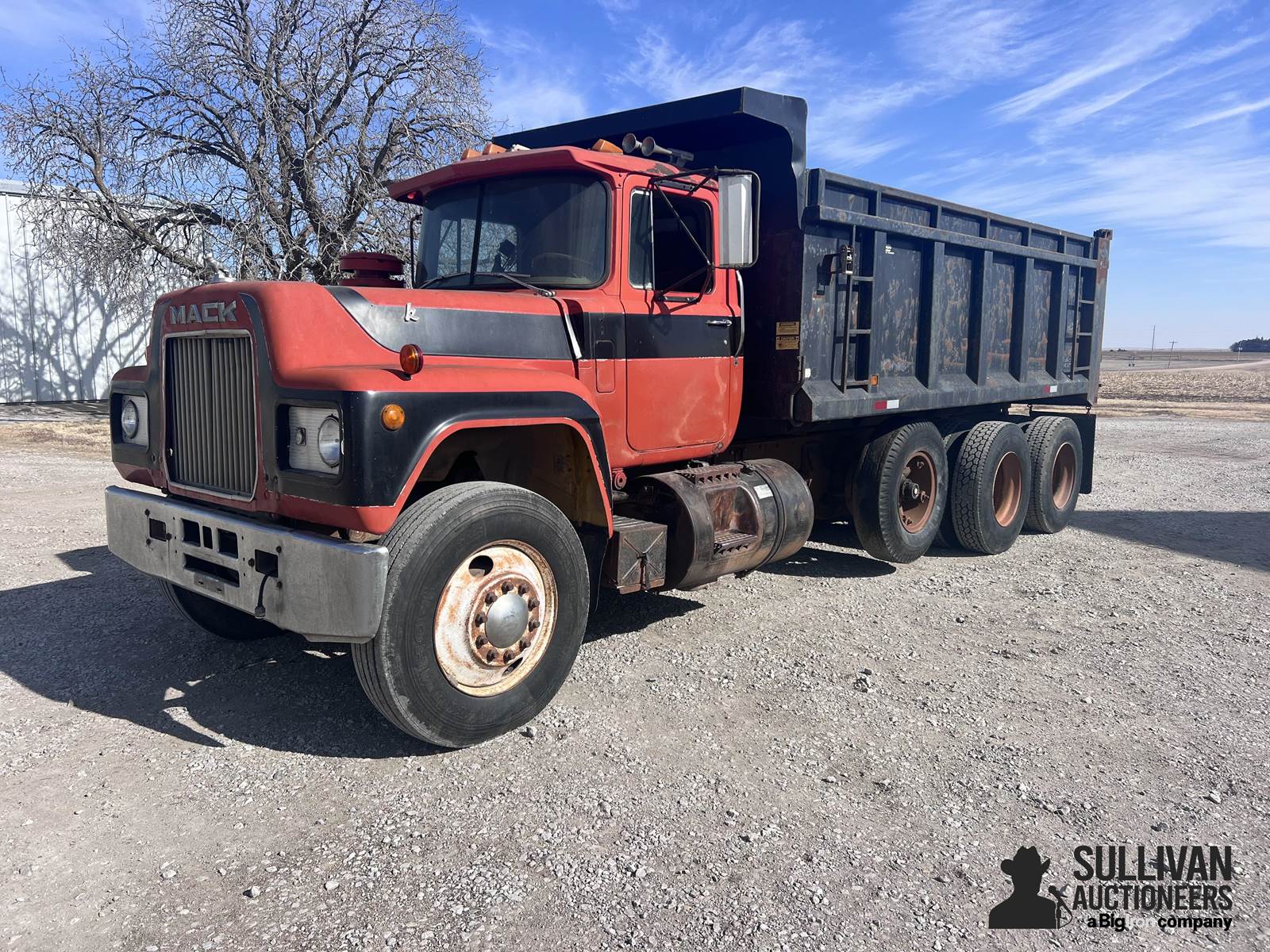 1981 Mack R600 Tri/A Dump Truck, 32,058 miles showing, Title Will Be Marked Miles Exempt, 6,251 Hrs Showing, Mack EM6-285, Diesel, Water Cooled Engine, Engine Brake, 2 Fuel Tanks, Steel Fuel Tank, 150 Fuel Capacity, Block Heater, 1 Exhausts, Eaton Fuller Roadranger, 13 Forward Speeds, 2 Reverse Speeds, Manual Transmission, 6x4 Drive, Spring Suspension, Fixed Axle, Air Brakes, 11R24.5 Front Tires, 11R22.5 Rear Tires, Duals, Steel Wheels, Pintle Hitch, Air Lift 3rd Axle, 10.00R20 3rd Axle Tires, Steel Floor, Fixed Floor, Radio, Rear Grain Gate, Grain Tarp Kit, VIN: 1M2N178Y0BA070659