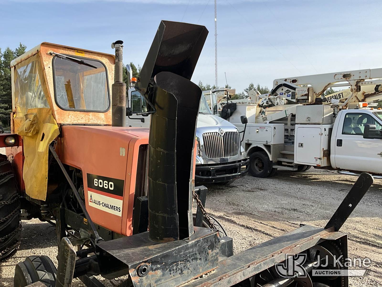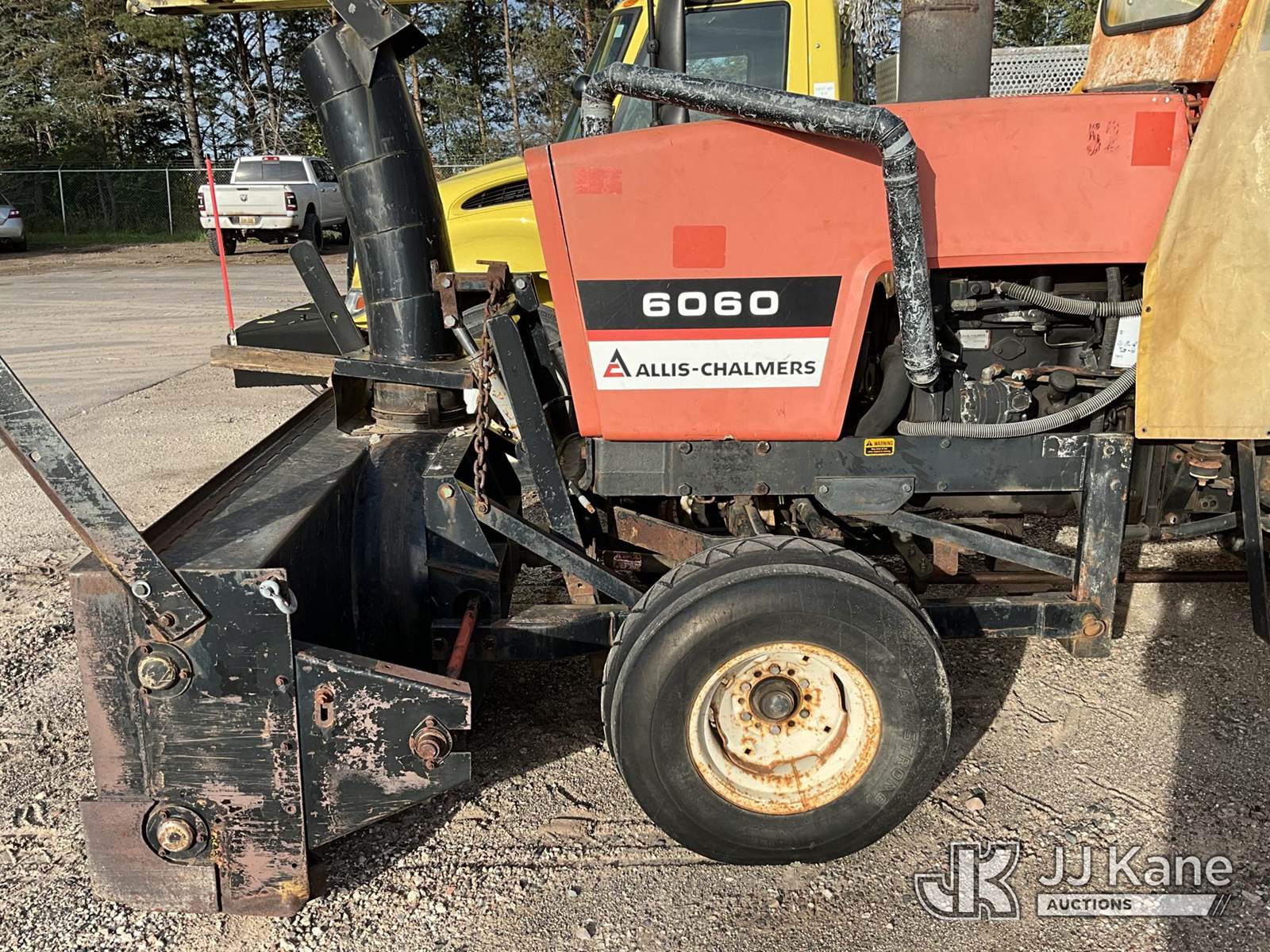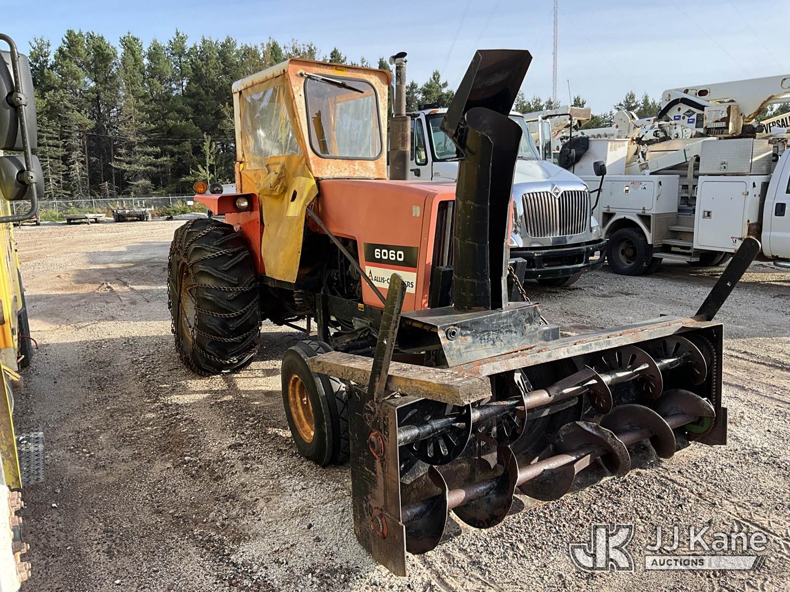 1982 Allis Chalmers 6060 Rubber Tired Utility Tractor, Allis Chalmers diesel, 8-spd, with Snow Blower Attachment, PTO, 3-Point Hitch & ROPS, (Starts, Runs, Moves) (Reads 2,235 hours) NOTE: This unit is being sold AS IS/WHERE IS via Timed Auction and is located in Dafter, MI. For more information & removal arrangements please contact Steve Morse @ 517-983-9026. (Buyer is responsible for removal. Assistance by consignor or JJ Kane Auctioneers is not assured.)