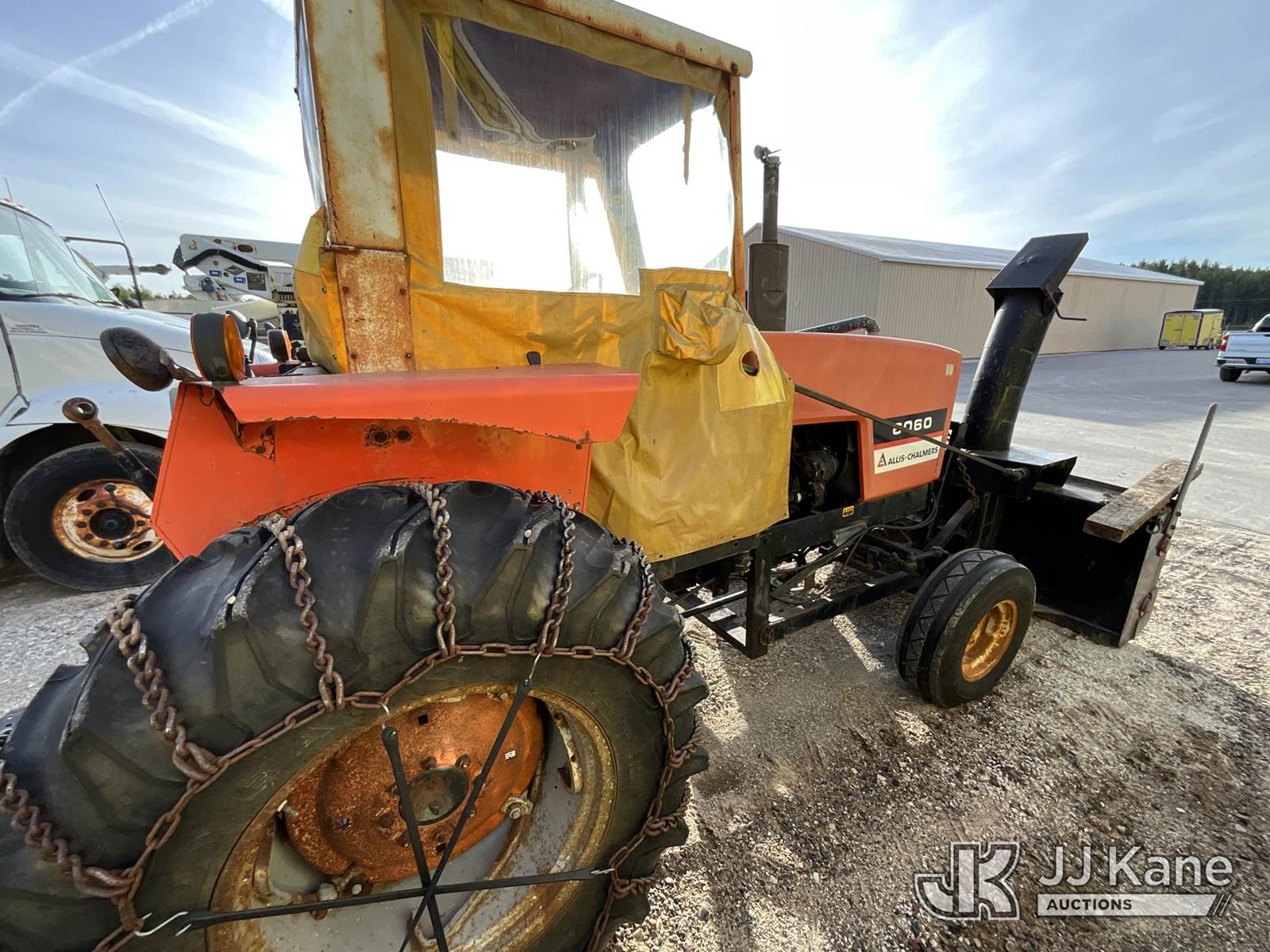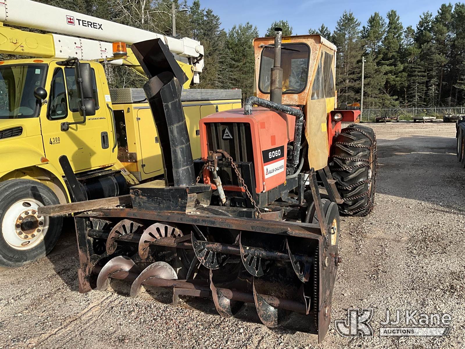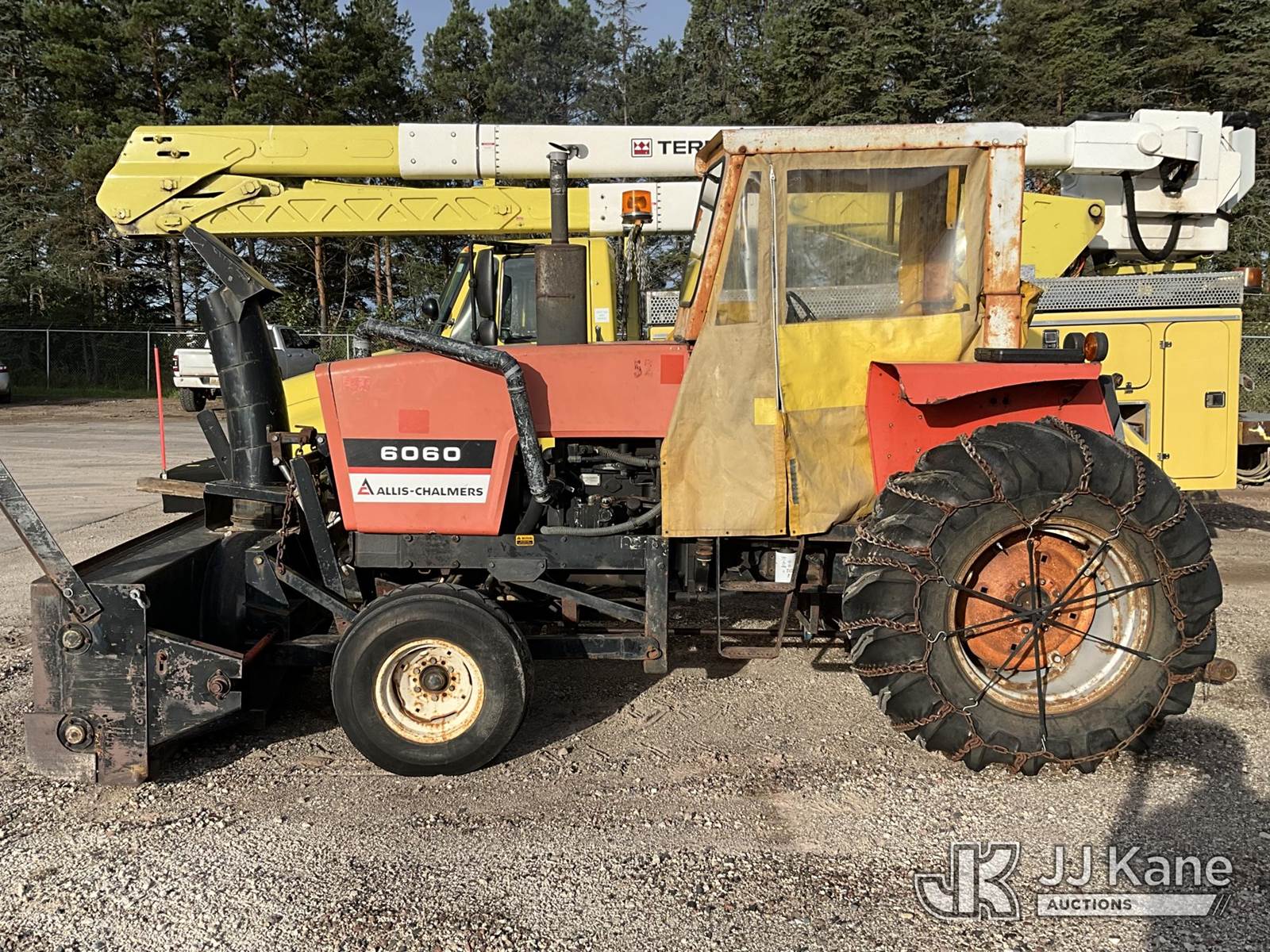 1982 Allis Chalmers 6060 Rubber Tired Utility Tractor, Allis Chalmers diesel, 8-spd, with Snow Blower Attachment, PTO, 3-Point Hitch & ROPS, (Starts, Runs, Moves) (Reads 2,235 hours) NOTE: This unit is being sold AS IS/WHERE IS via Timed Auction and is located in Dafter, MI. For more information & removal arrangements please contact Steve Morse @ 517-983-9026. (Buyer is responsible for removal. Assistance by consignor or JJ Kane Auctioneers is not assured.)